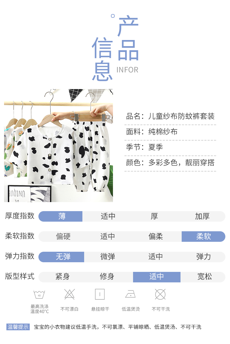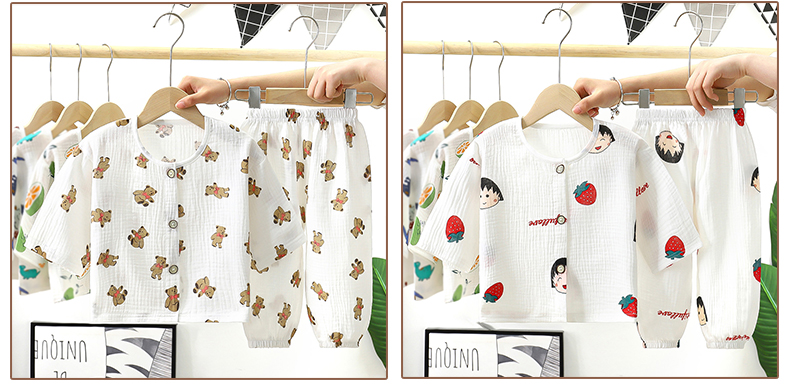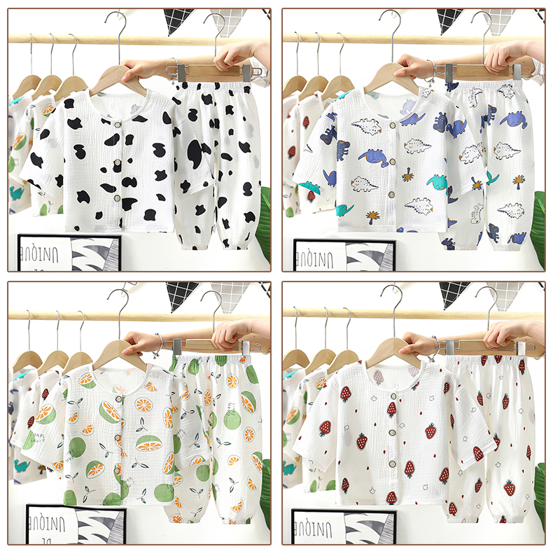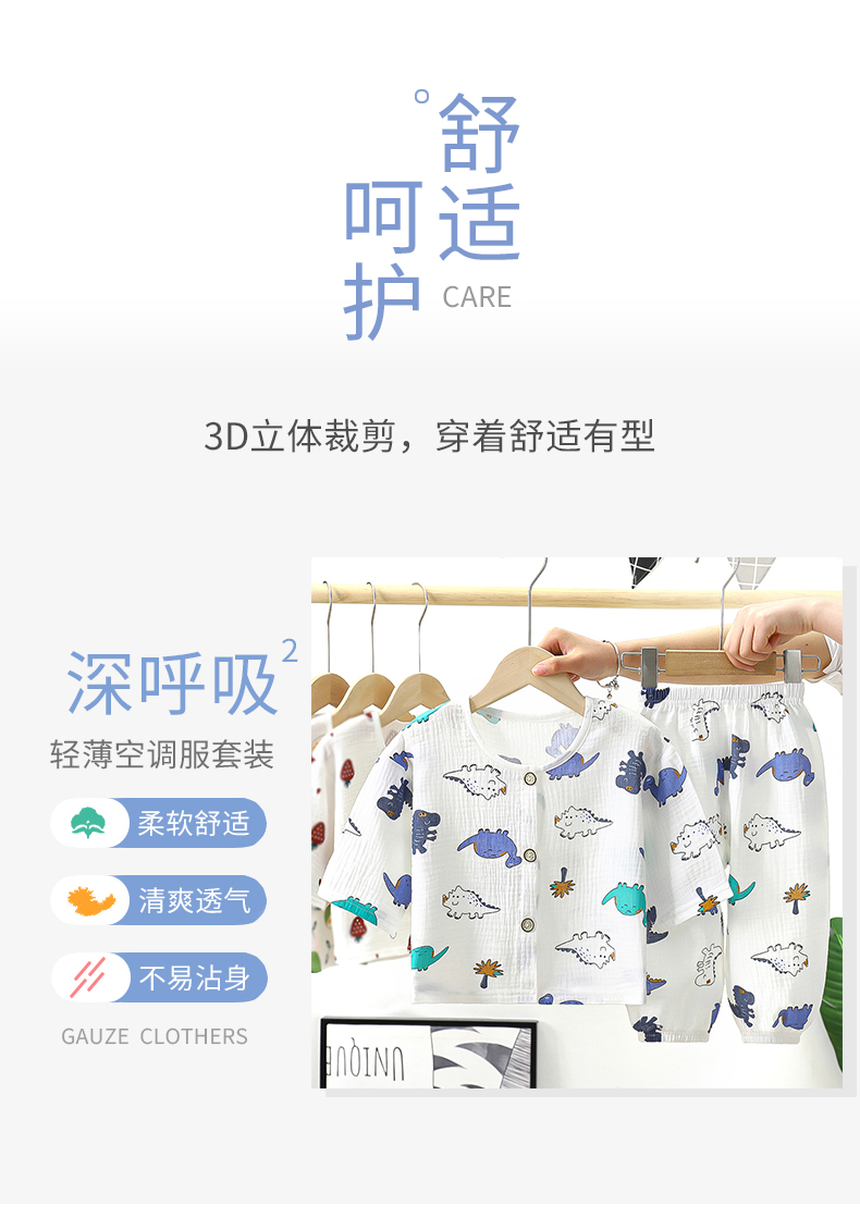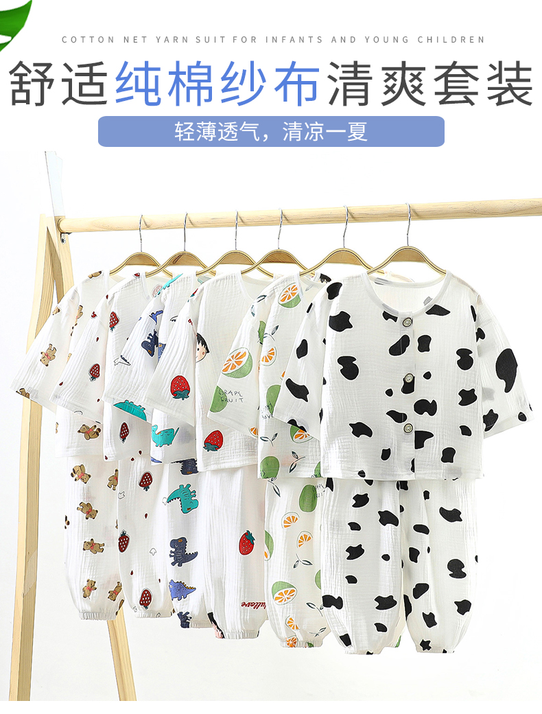 儿童纯棉纱布双层睡衣春夏薄款套装长袖空调服男女童小宝宝家居服