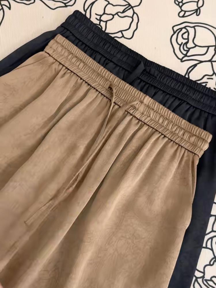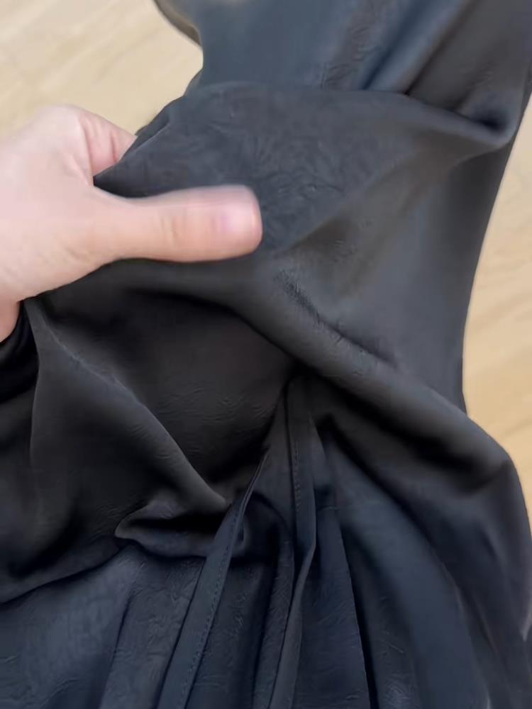 大码春季新款休闲缎面半身裙开叉A字裙黑色胖mm垂感松紧中长裙子