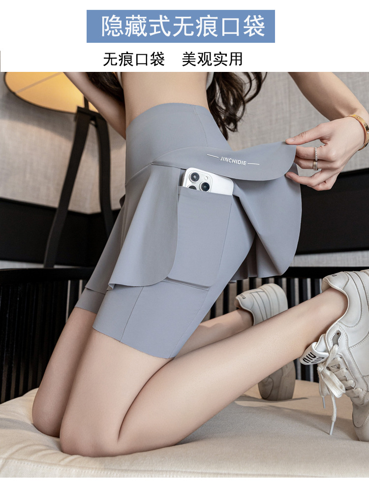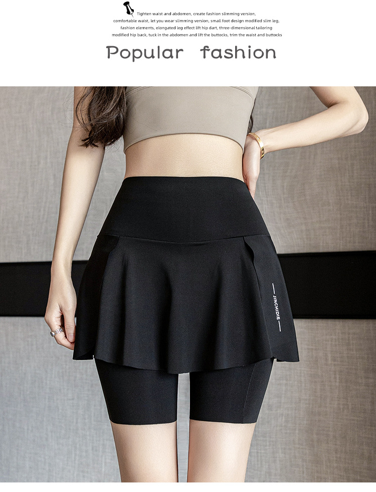 加肥加大码速干防走光裙裤子胖mm晨跑运动健身瑜伽服跑步短裤裙女