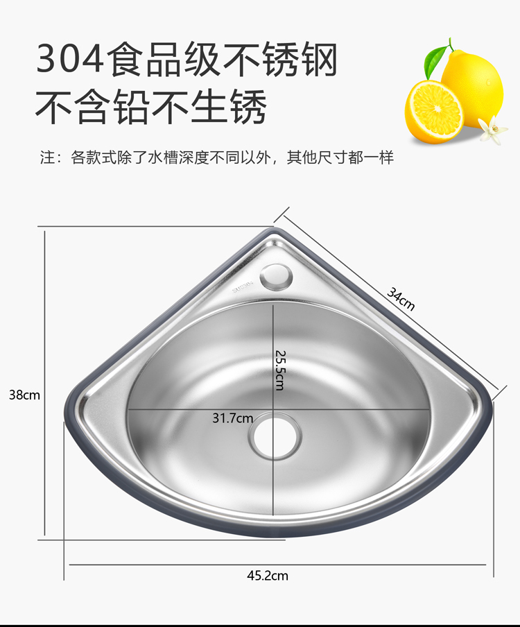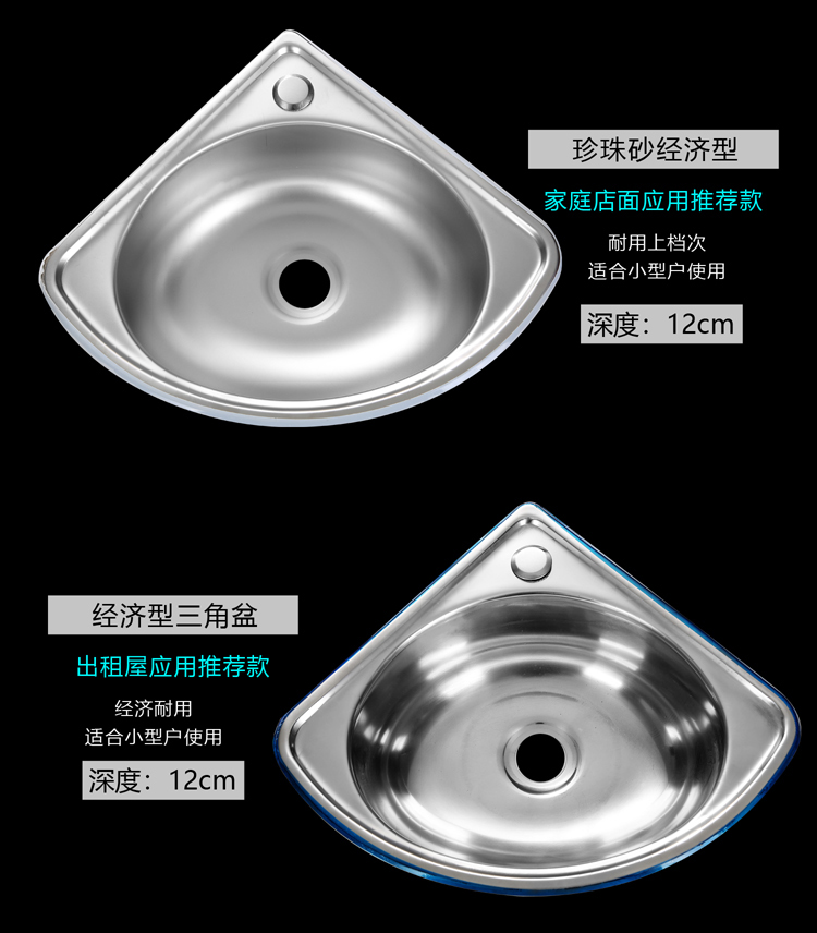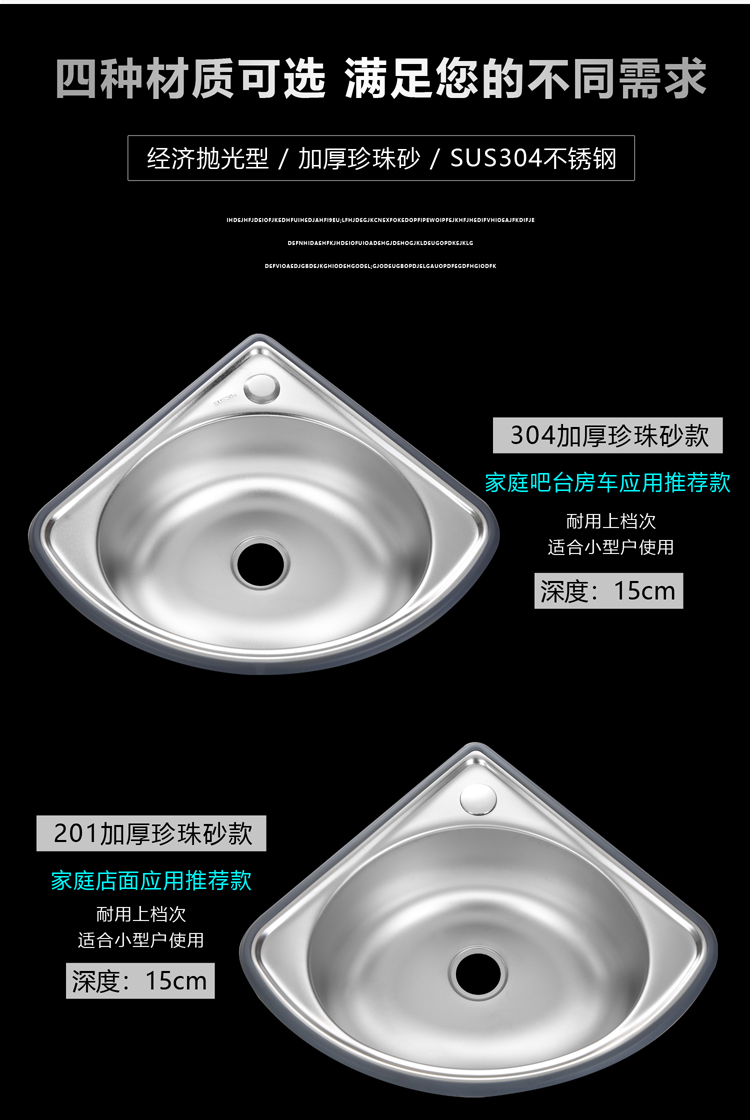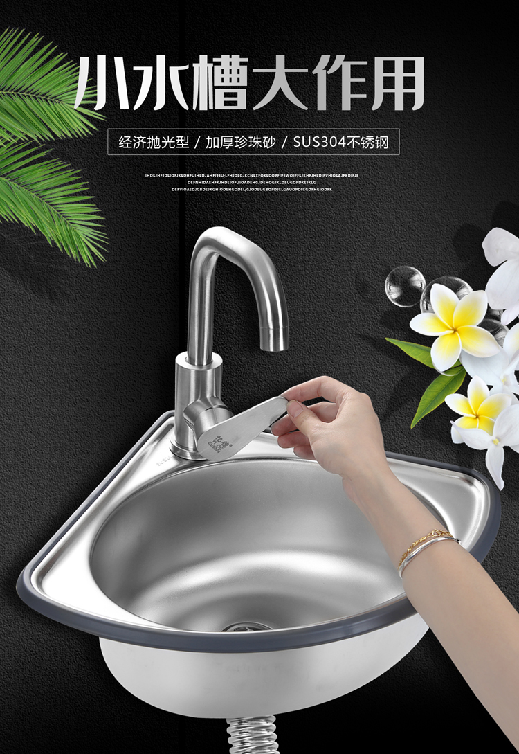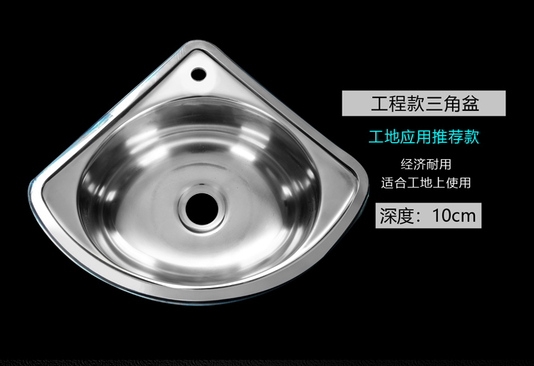 304不锈钢三角洗手盆 挂墙小水槽单槽加厚厨房洗菜盆洗碗池包邮