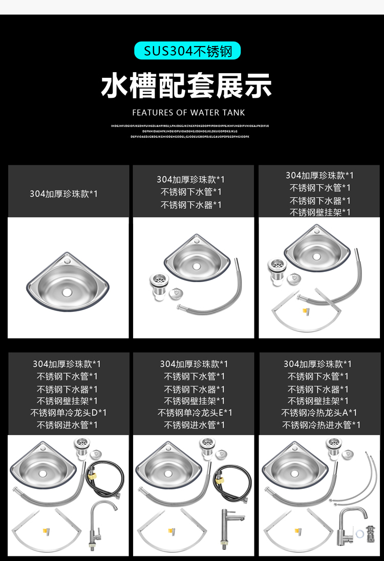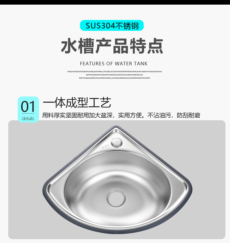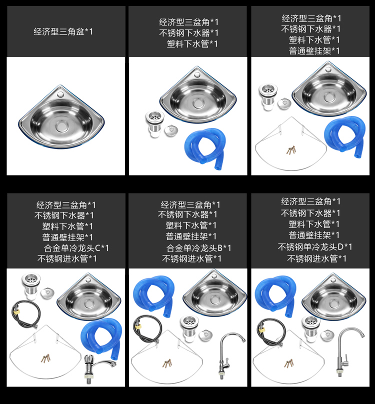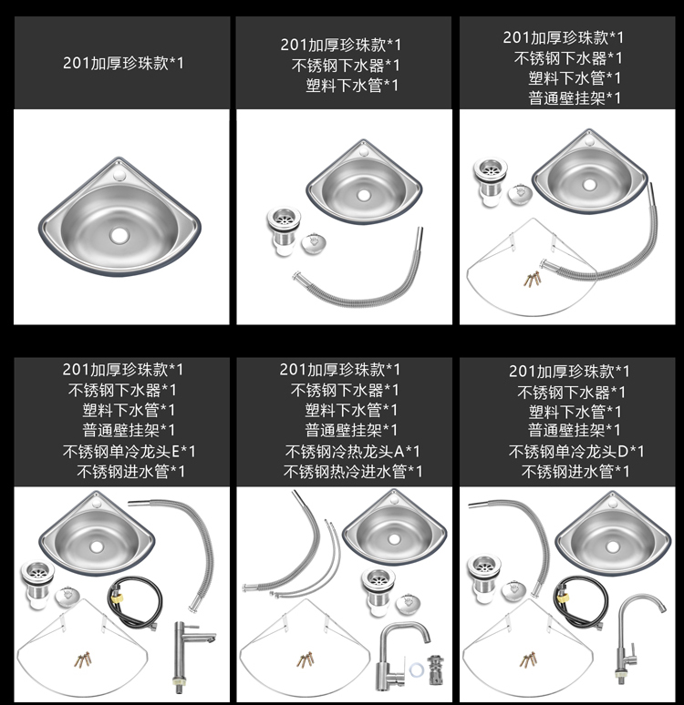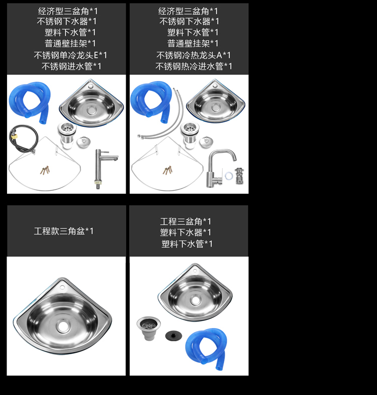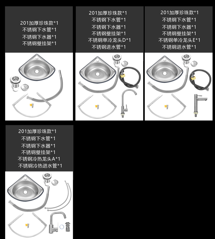 304不锈钢三角洗手盆 挂墙小水槽单槽加厚厨房洗菜盆洗碗池包邮