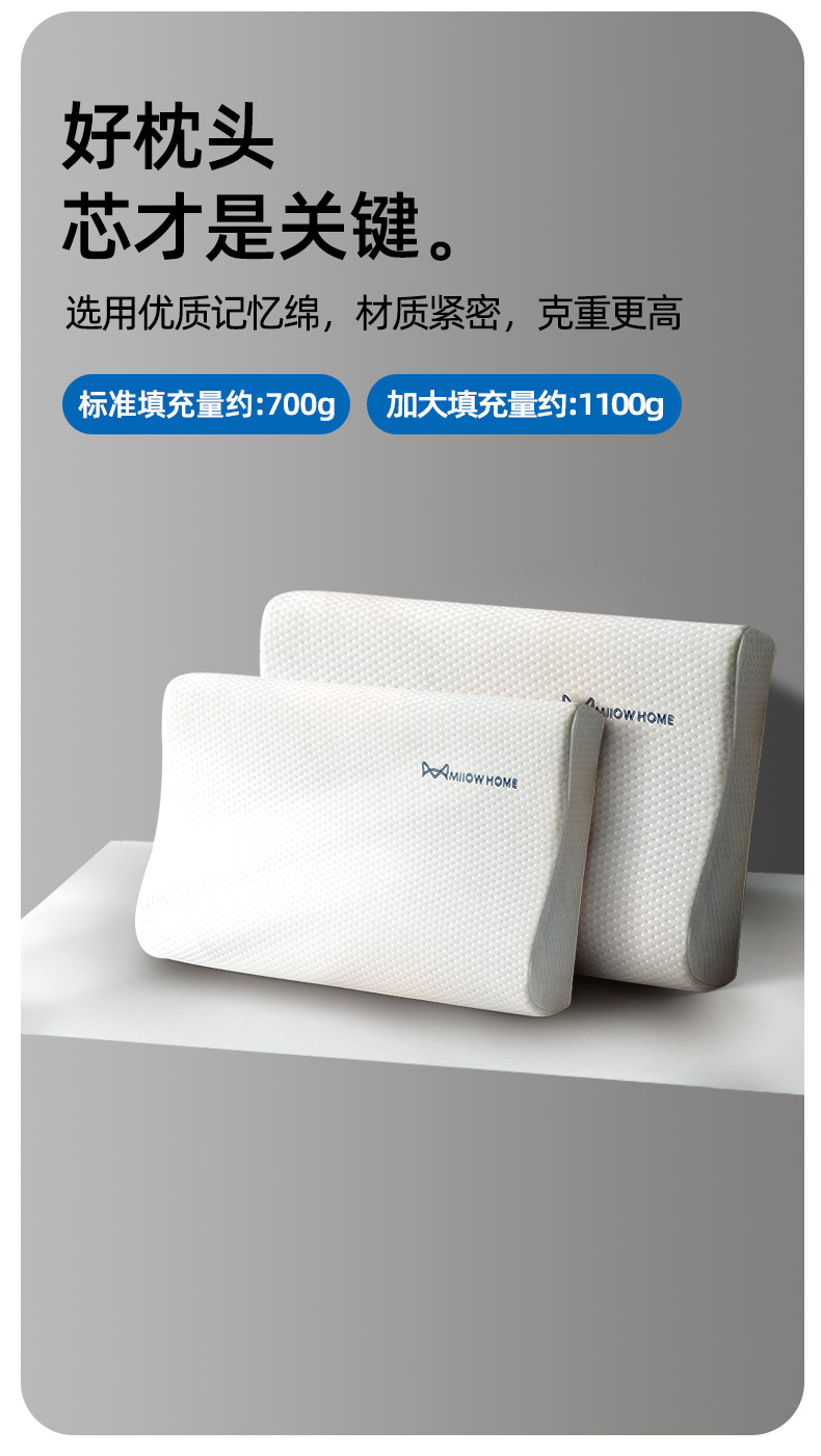 猫人A类记忆棉枕抑菌慢回弹枕芯一对护颈椎枕助睡眠枕头学生宿舍