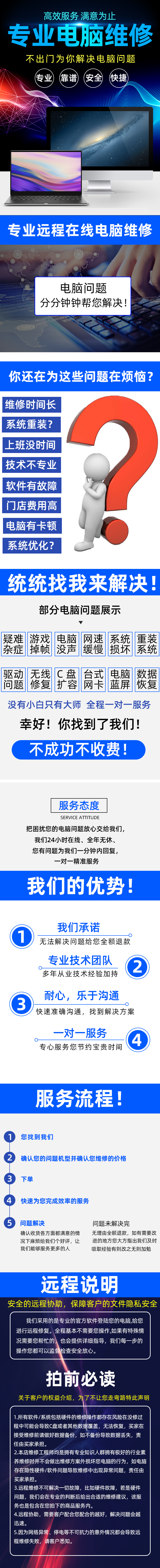 电脑维修远程故障咨询修复笔记本解决蓝屏主板显卡驱动安装等问题