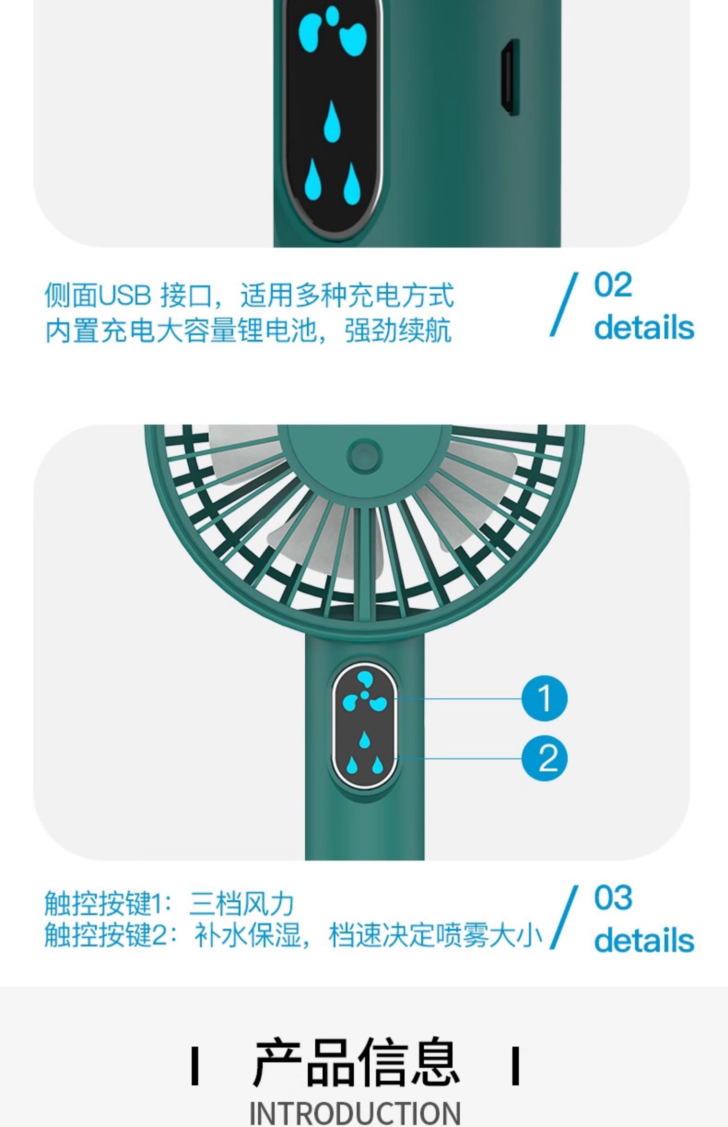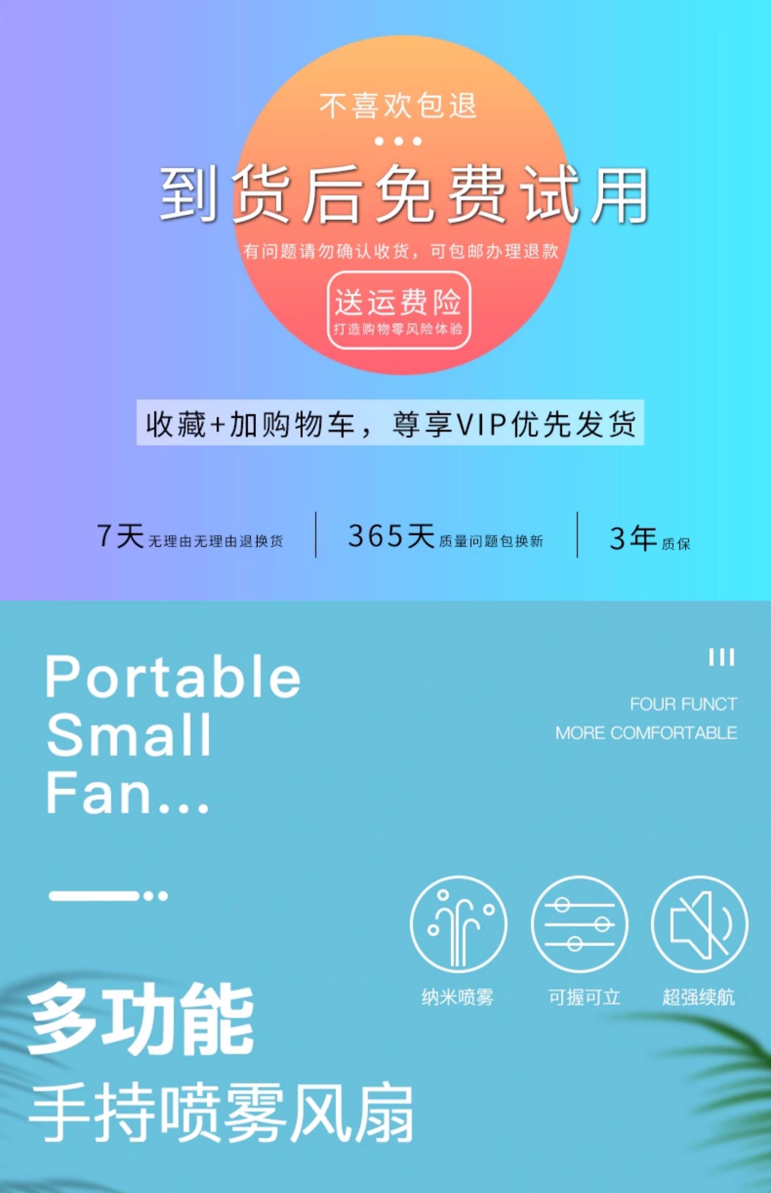 喷雾制冷迷你小型USB充电学生宿舍随身便携式办公室桌面上静音台式手持小风扇儿童夏季超长续航降温神器空调