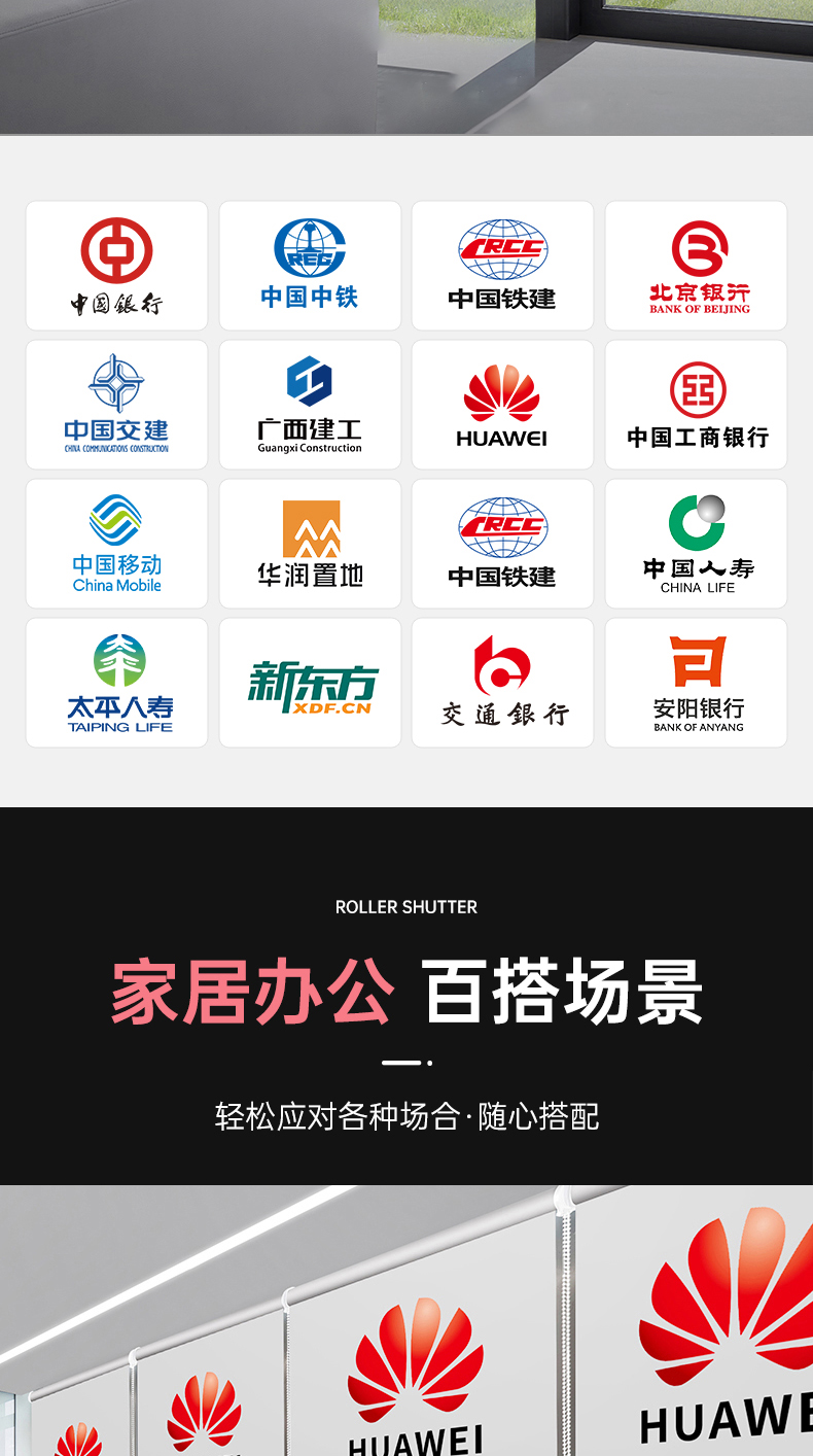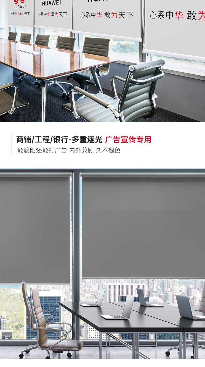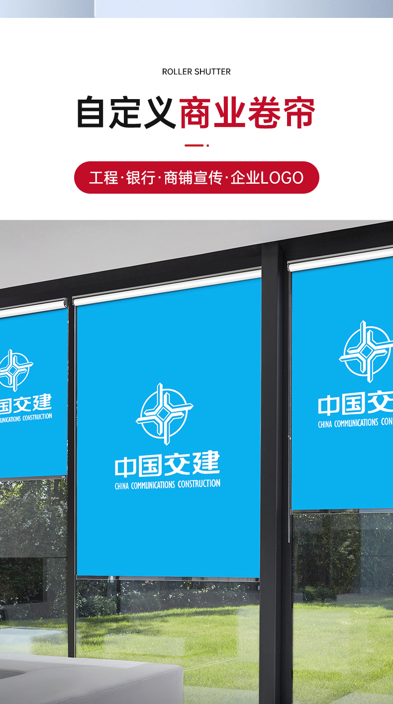 窗帘定制logo广告卷帘升降卷拉式工程办公室遮光免打孔电动遮阳帘