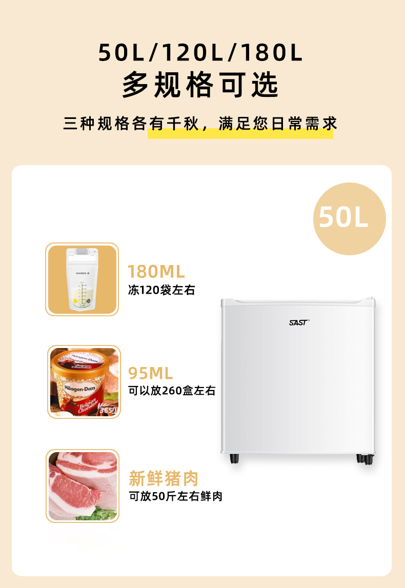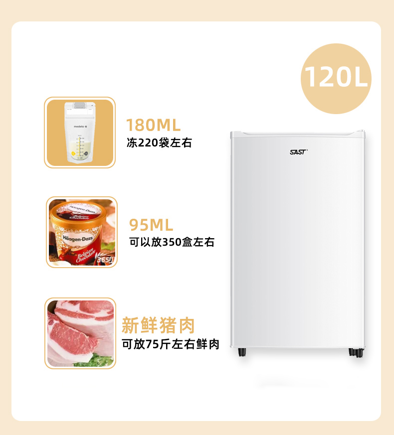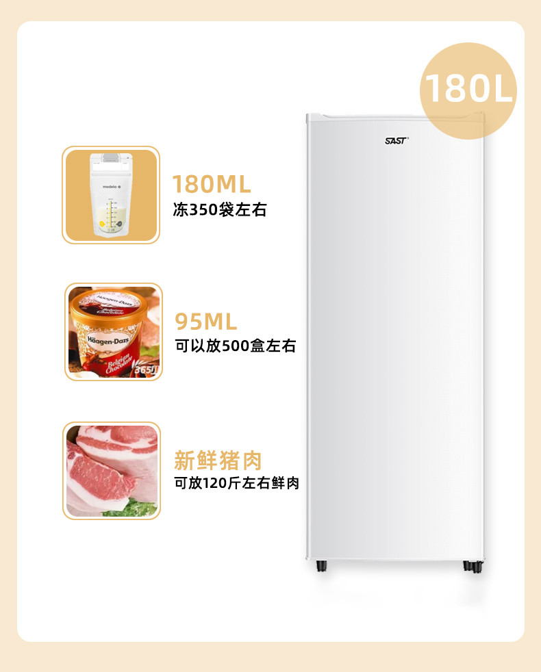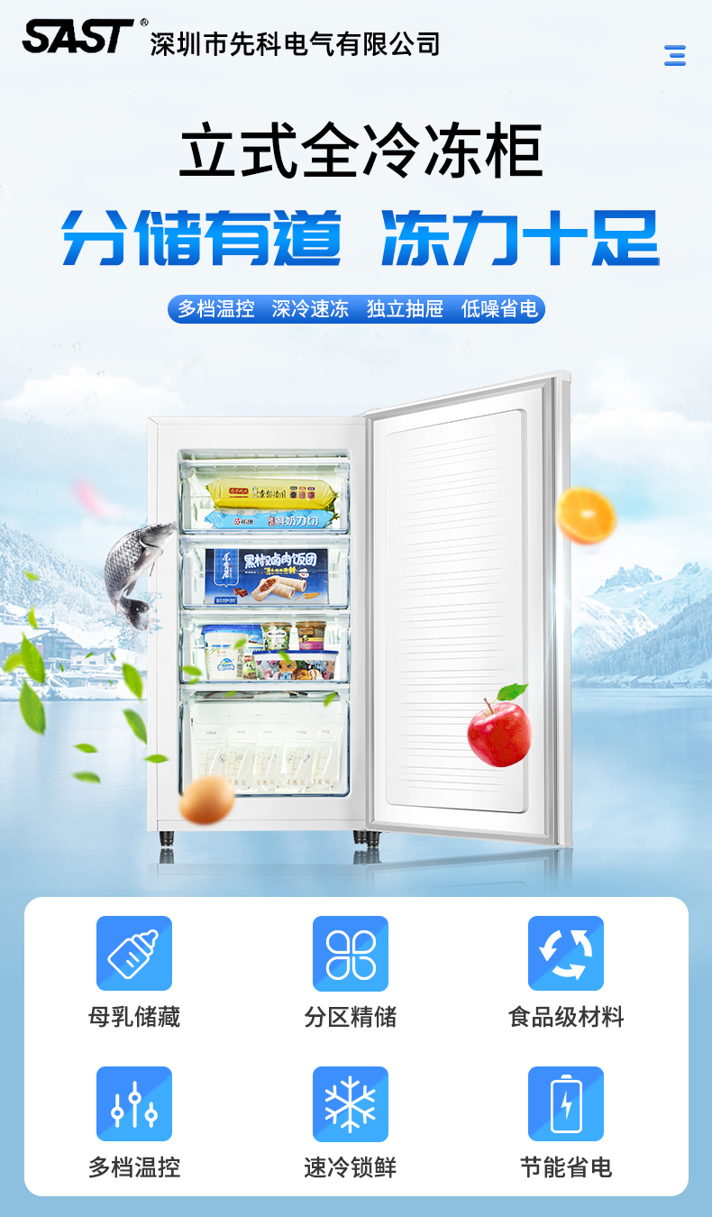 SAST/先科立式冷柜全冷冻柜侧开门抽屉式储奶母乳速冻小冰柜家用