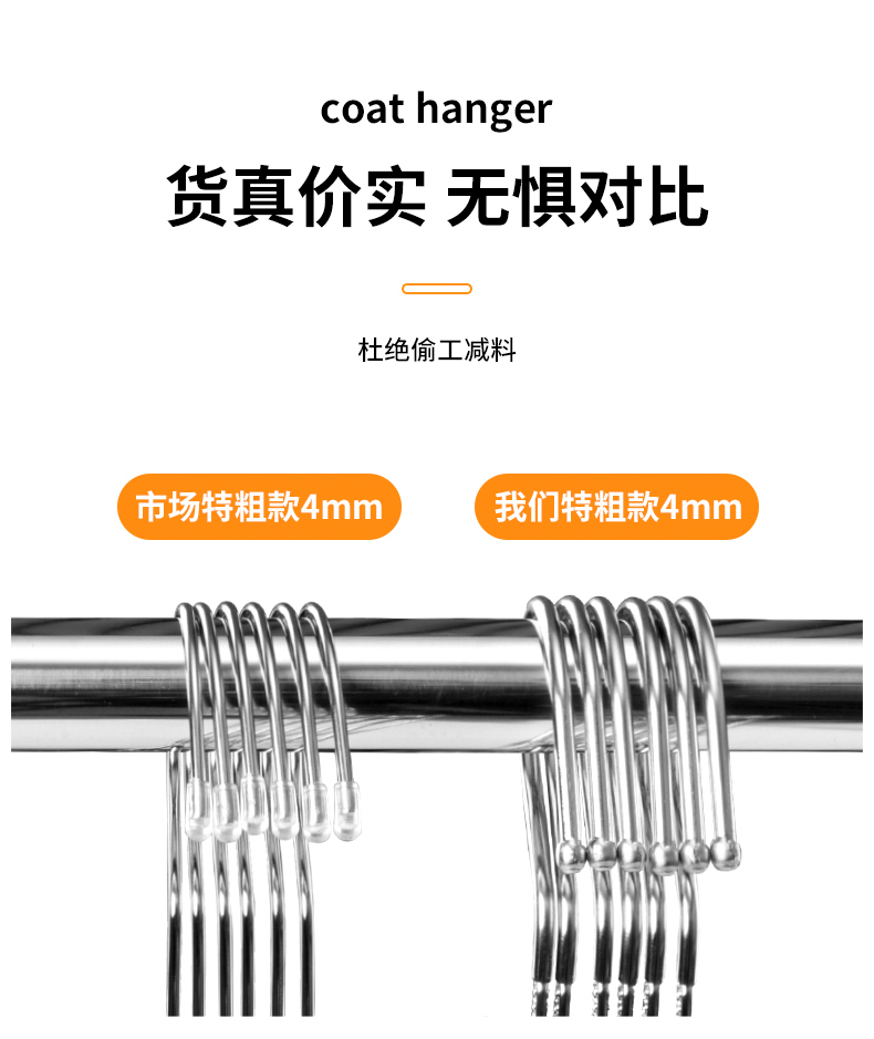 304不锈钢衣架家用挂衣服加粗加厚凉晾衣架子宿舍铁特粗晒衣撑子