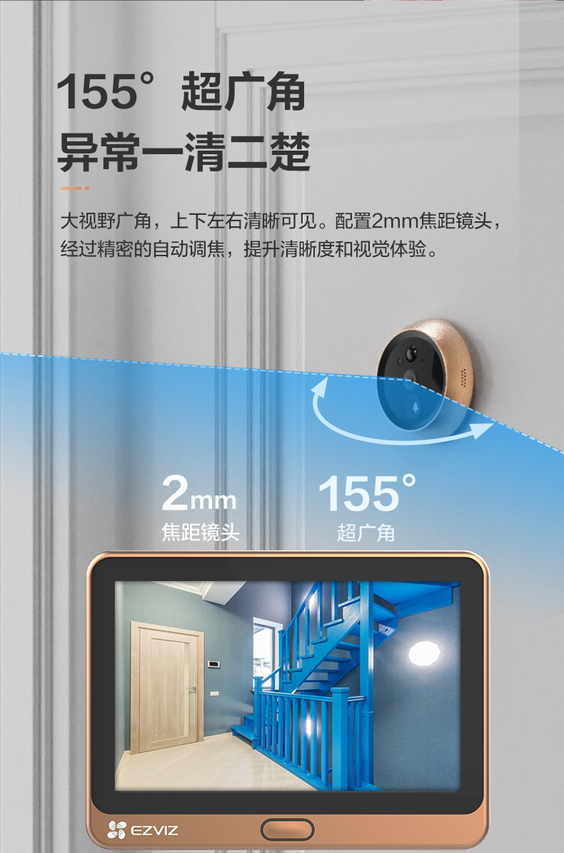 海康威视旗下萤石DP2C智能猫眼手机远程监控家用可视门铃摄像头