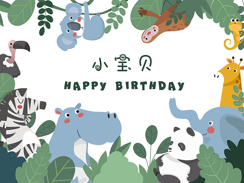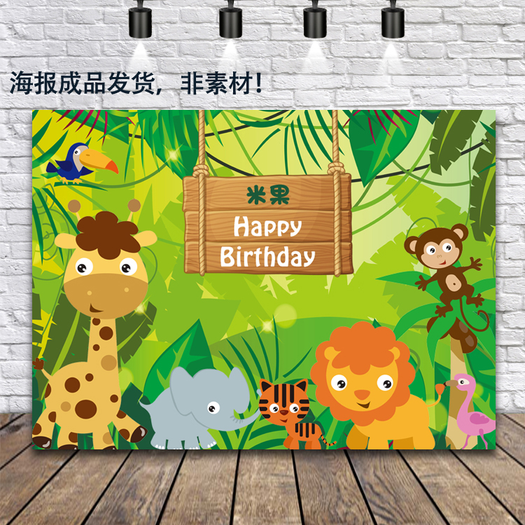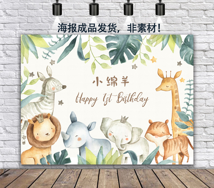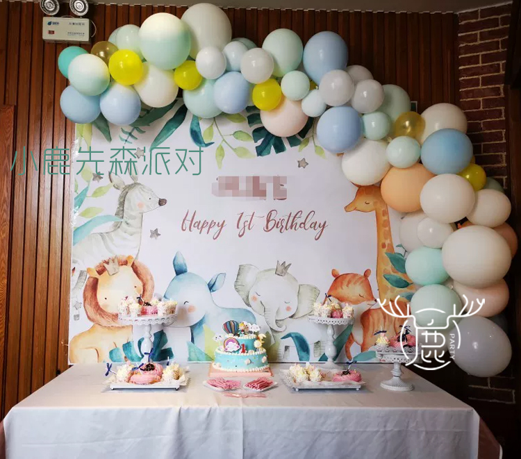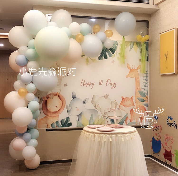 宝宝满月百天宴背景墙布置森林动物儿童周岁生日派对海报装饰气球