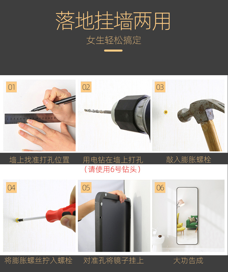 舞蹈室跳舞镜子健身落地全身镜家用女生卧室宿舍出租屋试衣穿衣镜