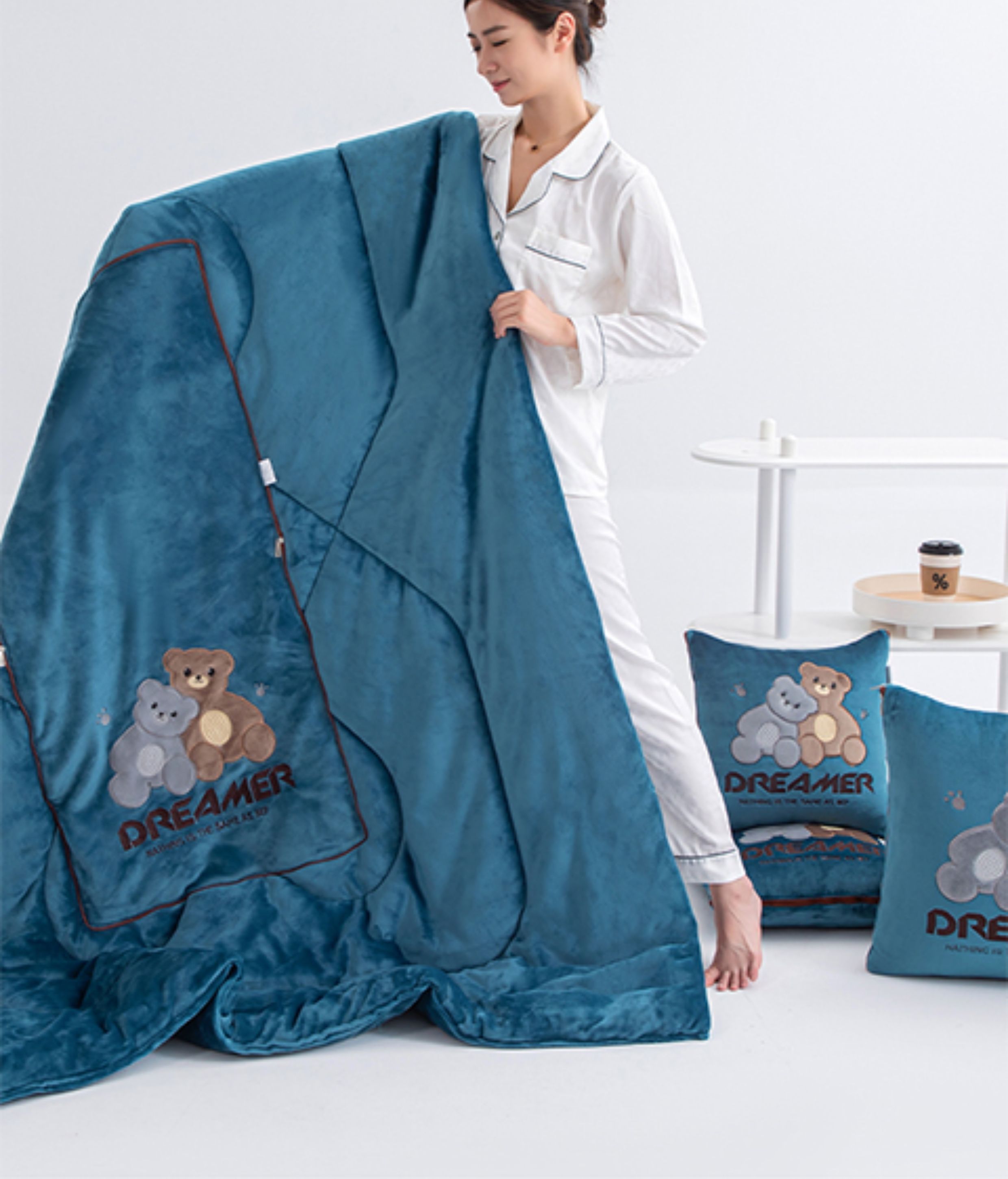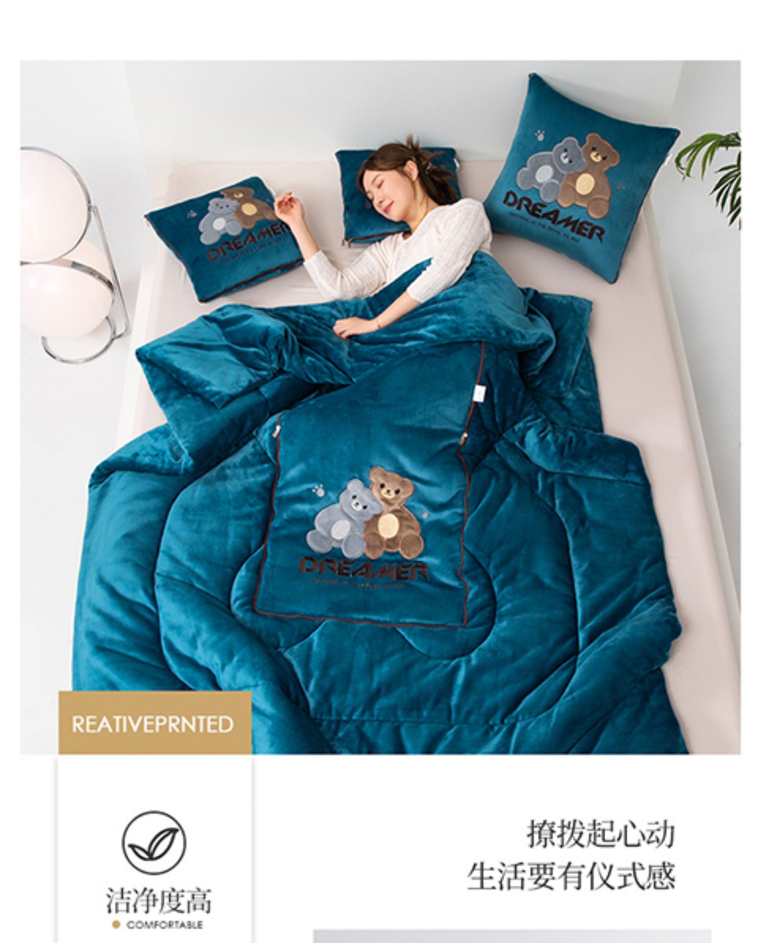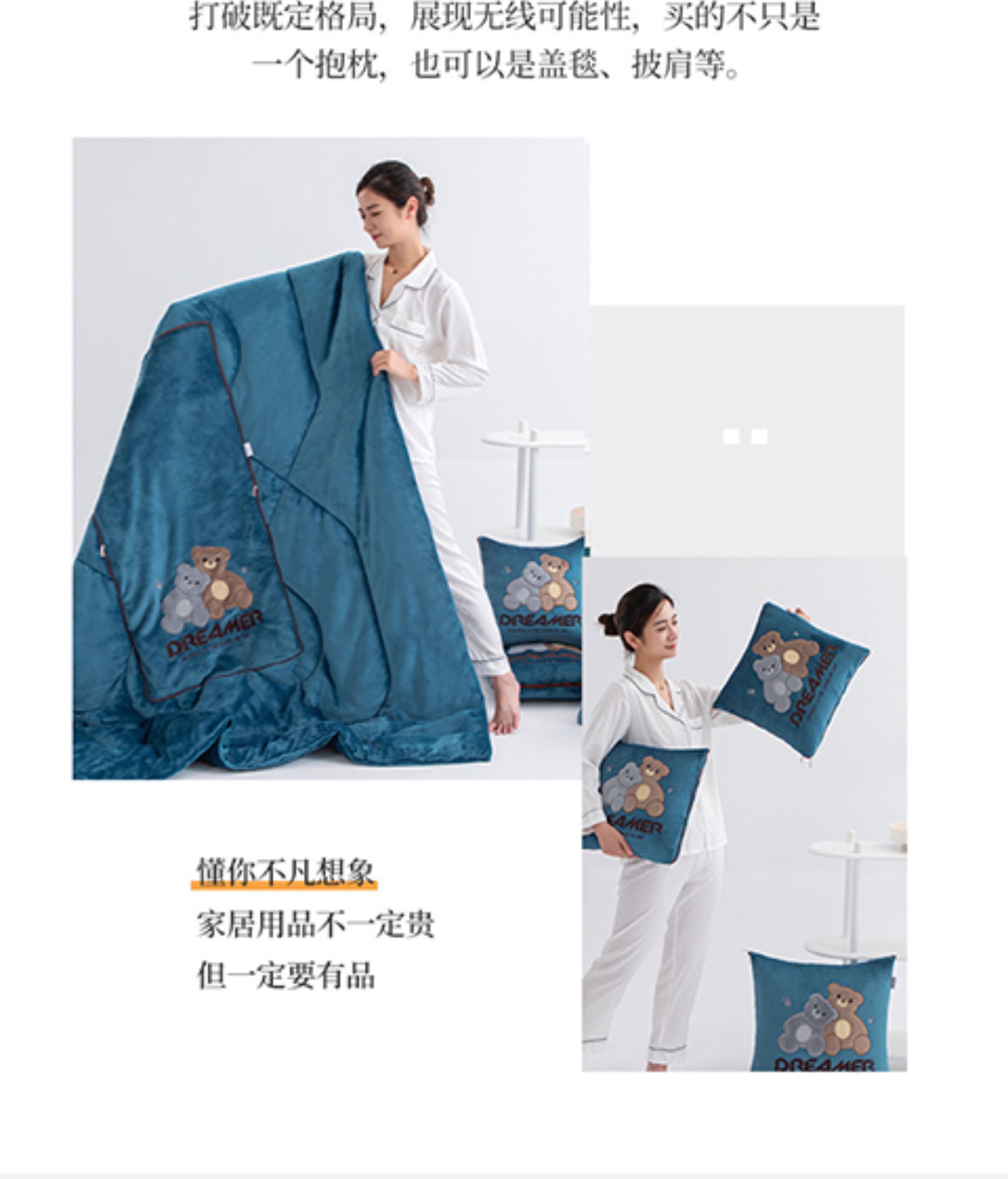 超厚牛奶绒抱枕被子两用二合一车载靠垫枕头办公室沙发折叠午睡被