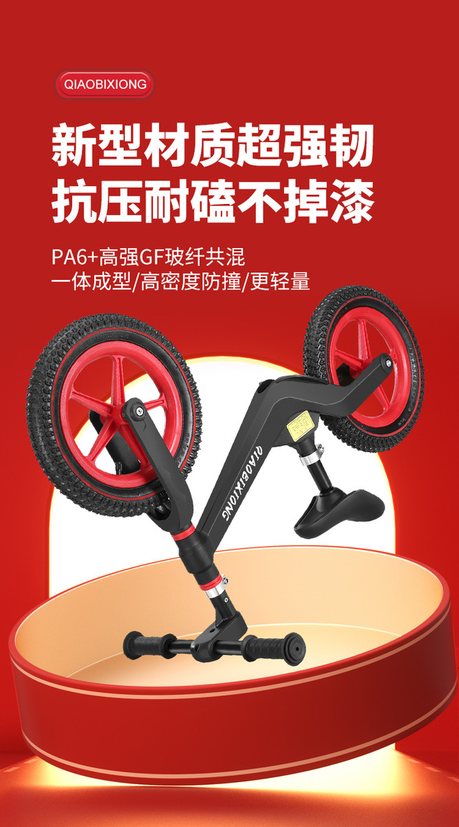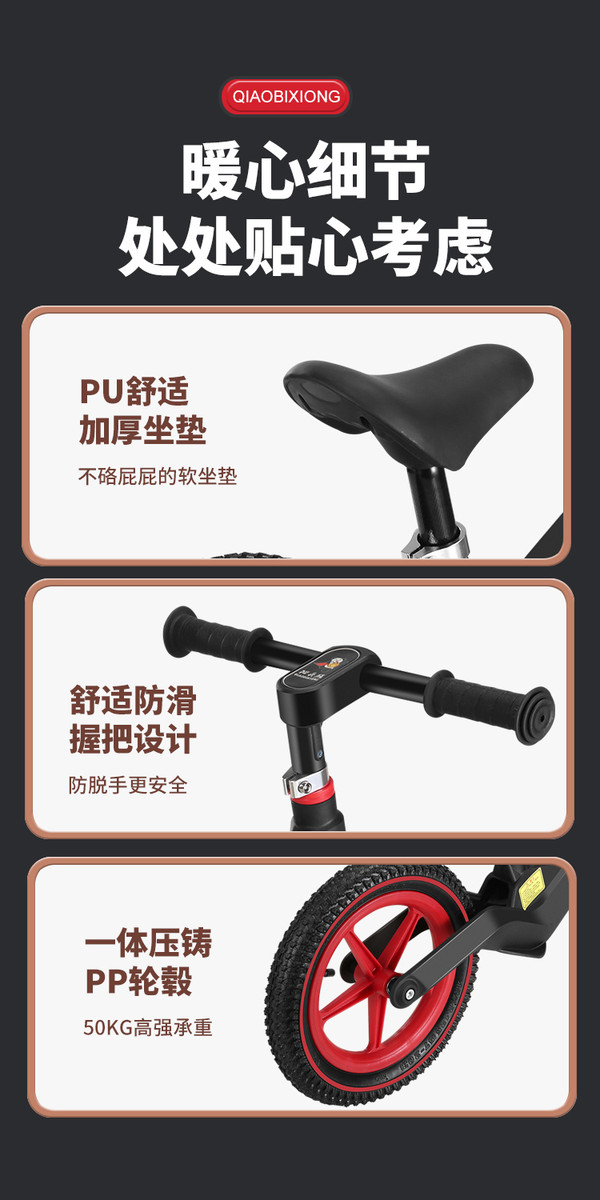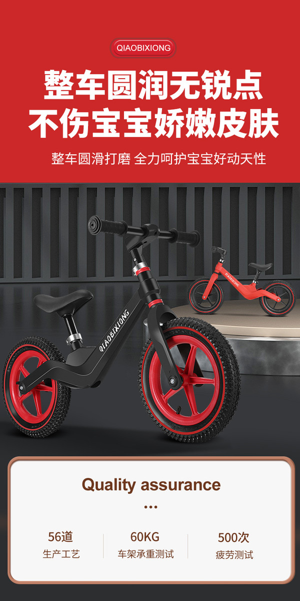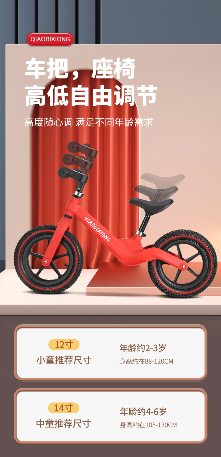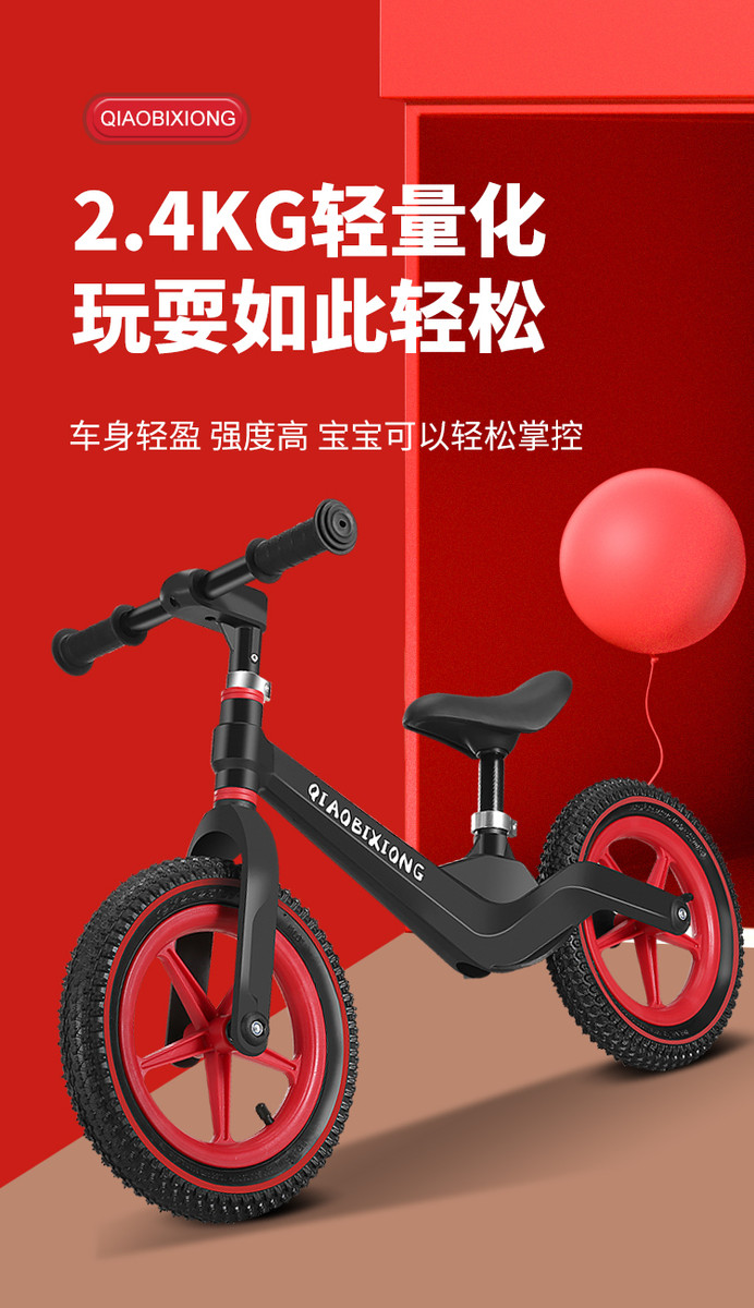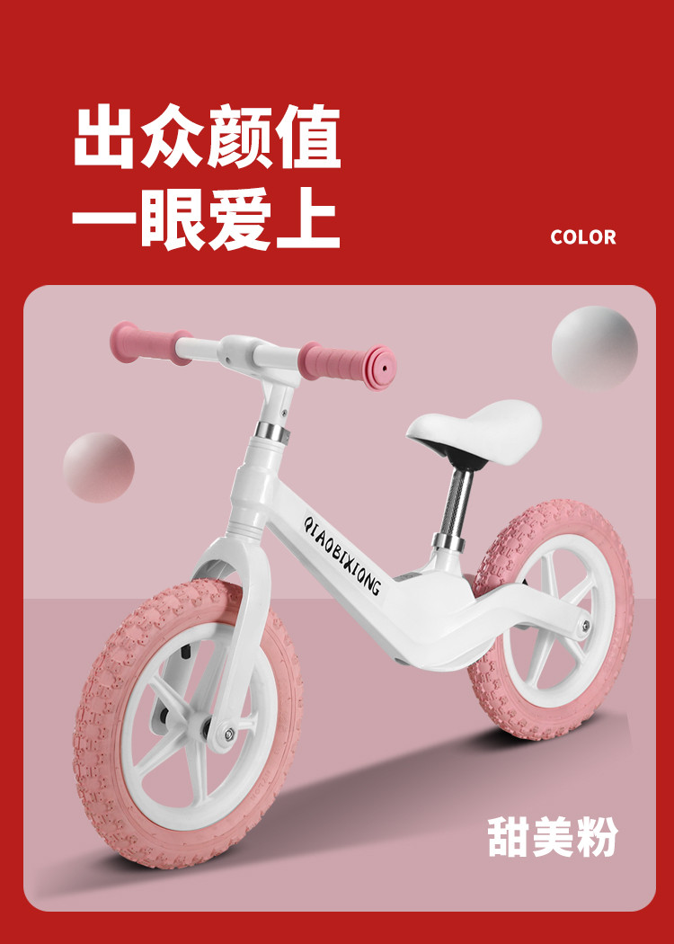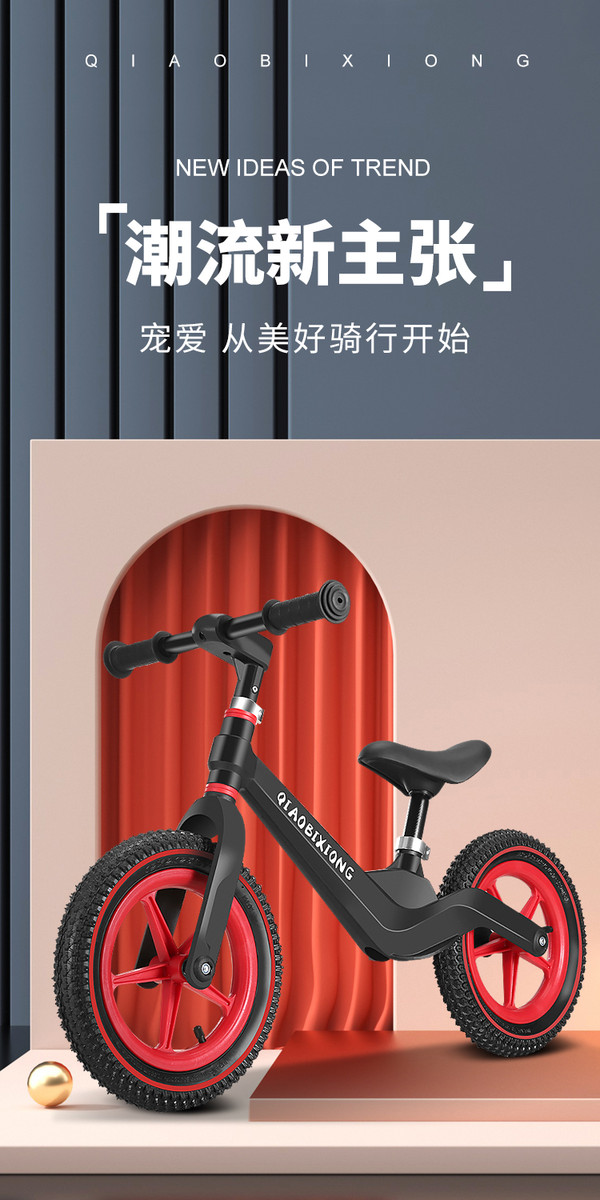 翘鼻熊儿童平衡车3-6岁无脚踏滑步车两轮自行车溜溜车童车婴幼儿