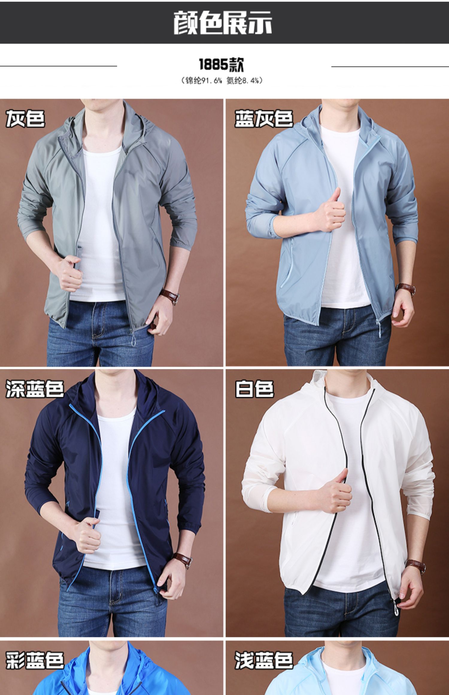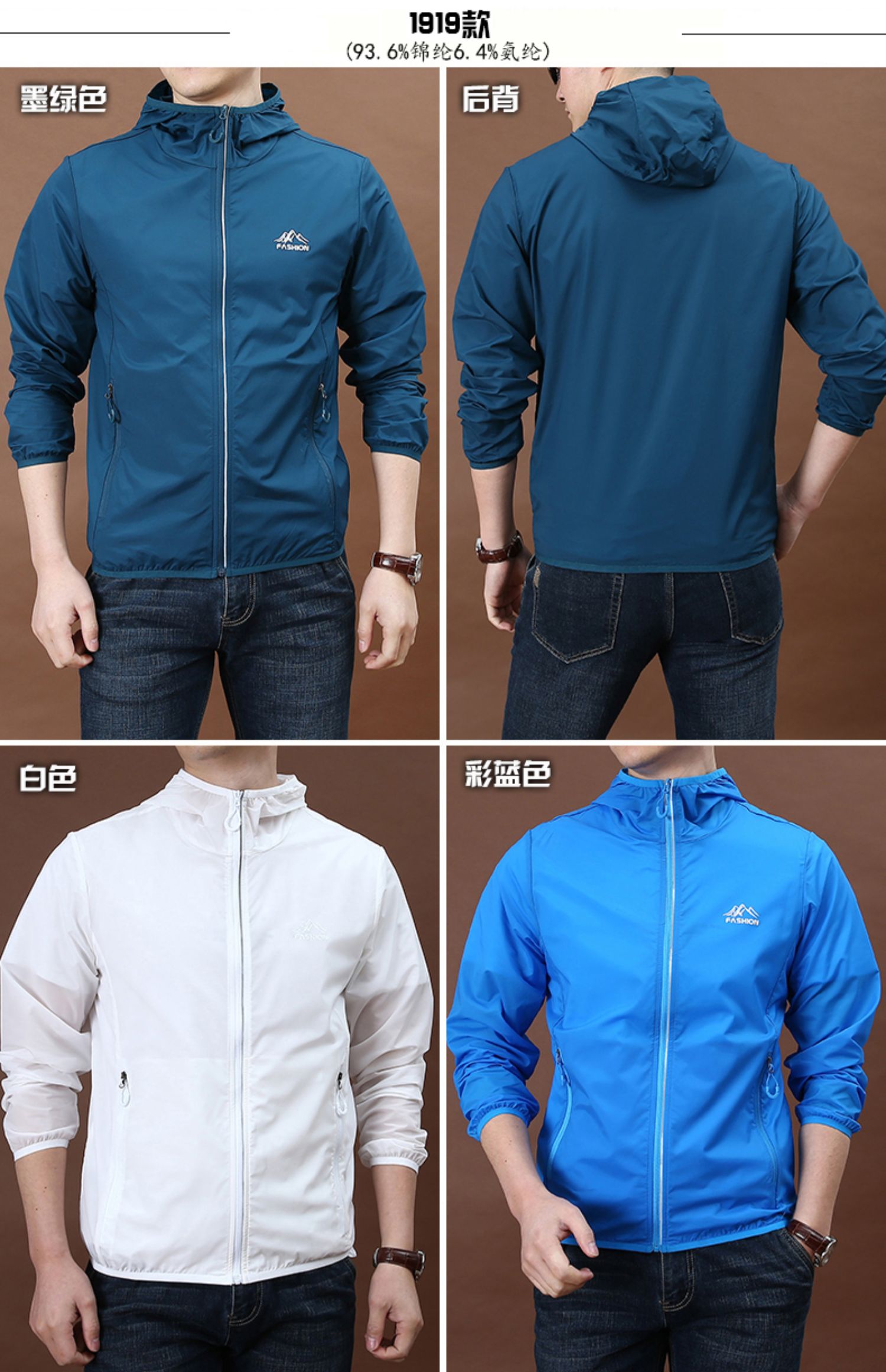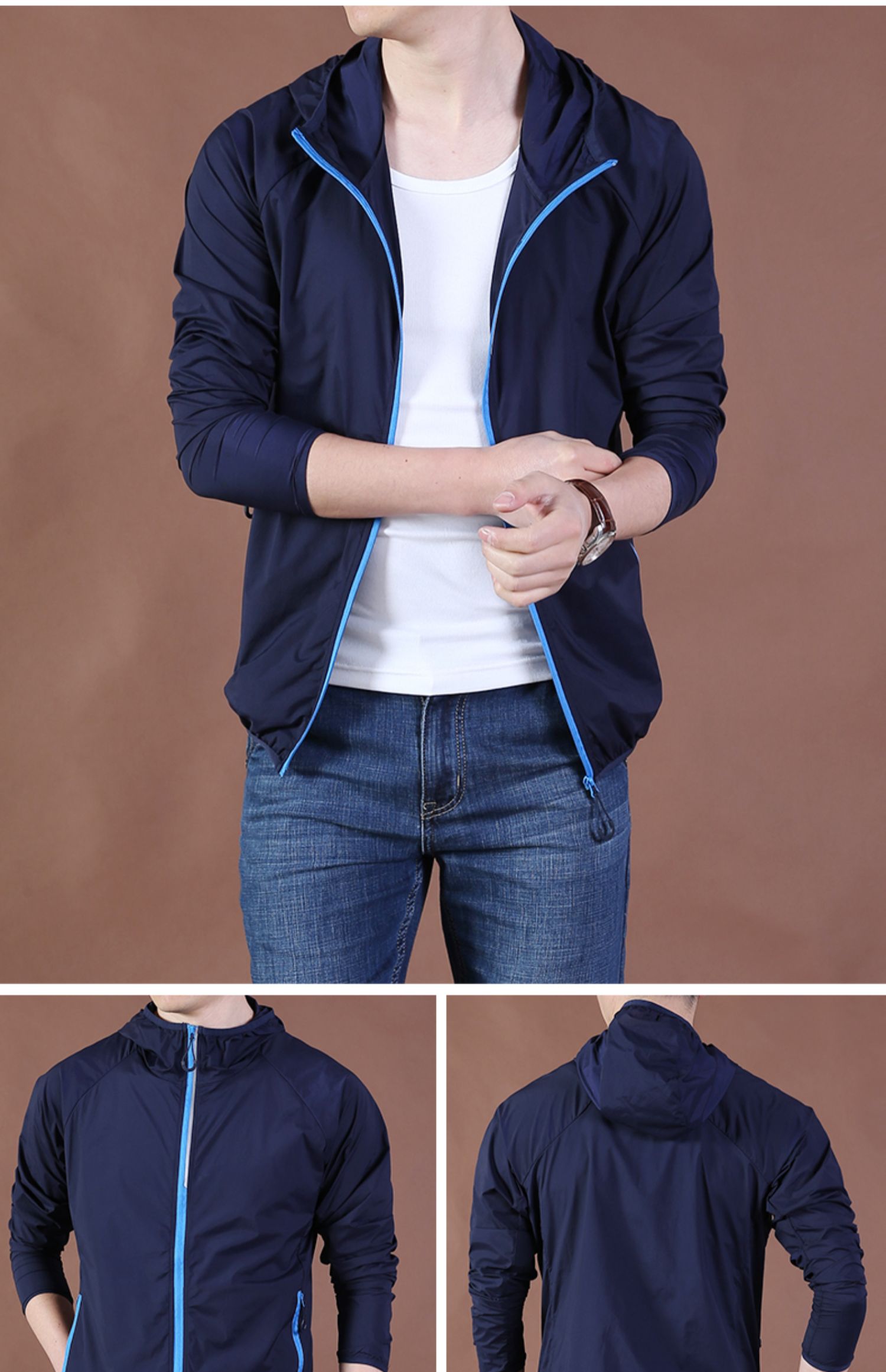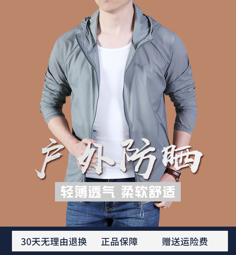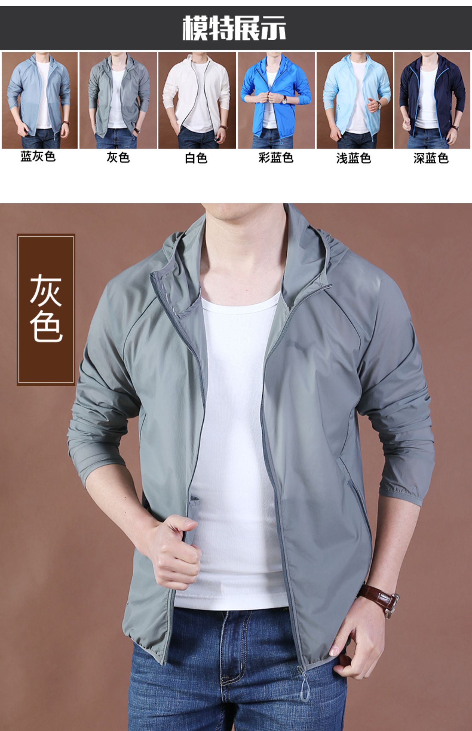 夏季薄款速干皮肤衣男士青年大码防晒服连帽运动休闲风衣外套上衣