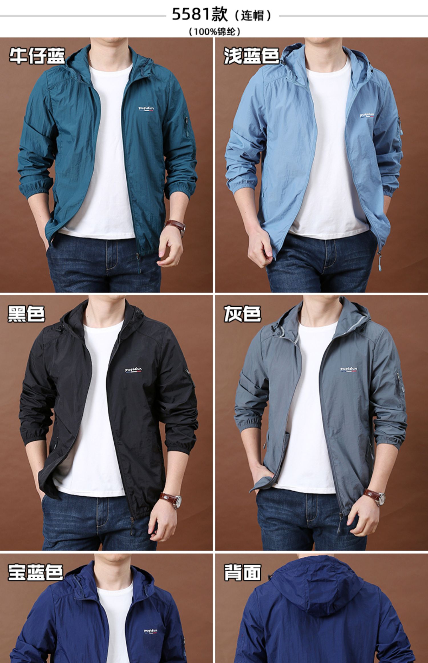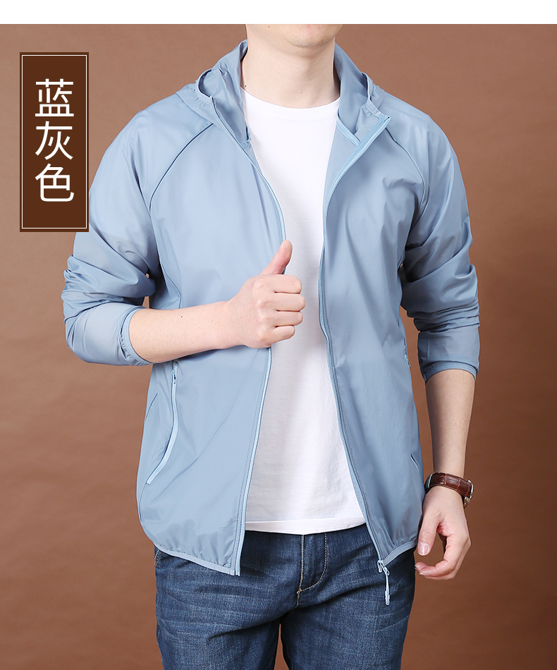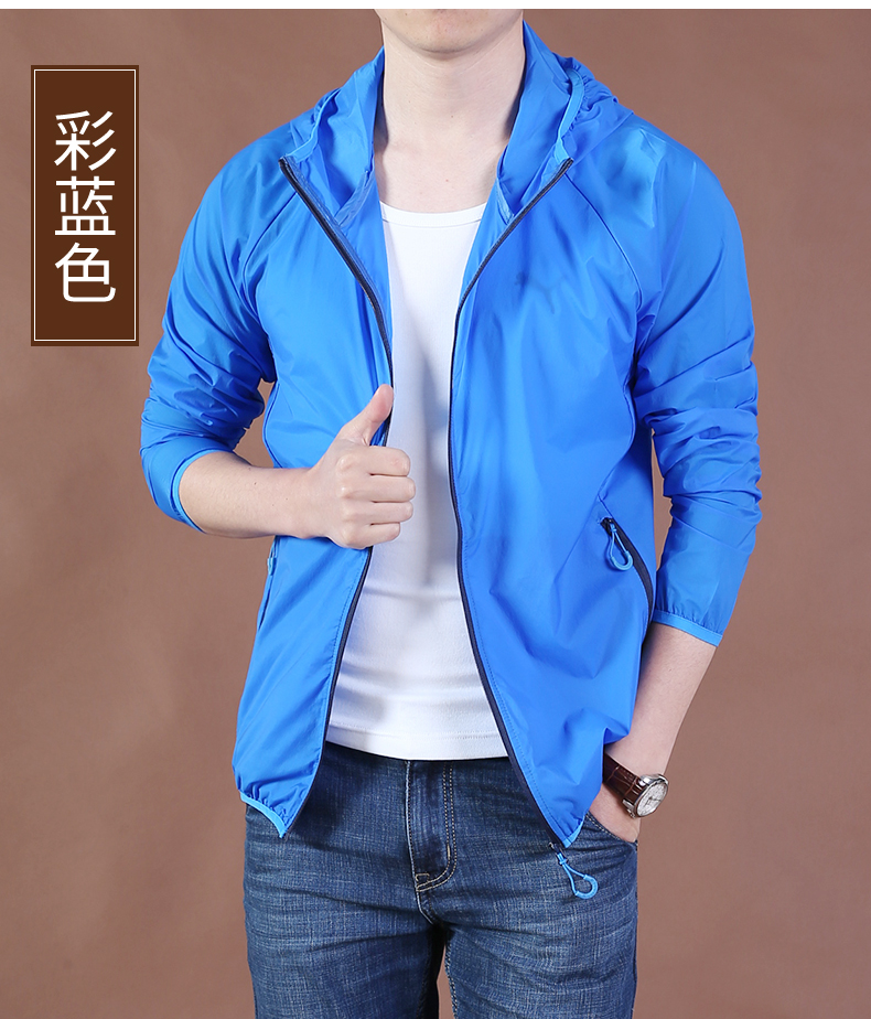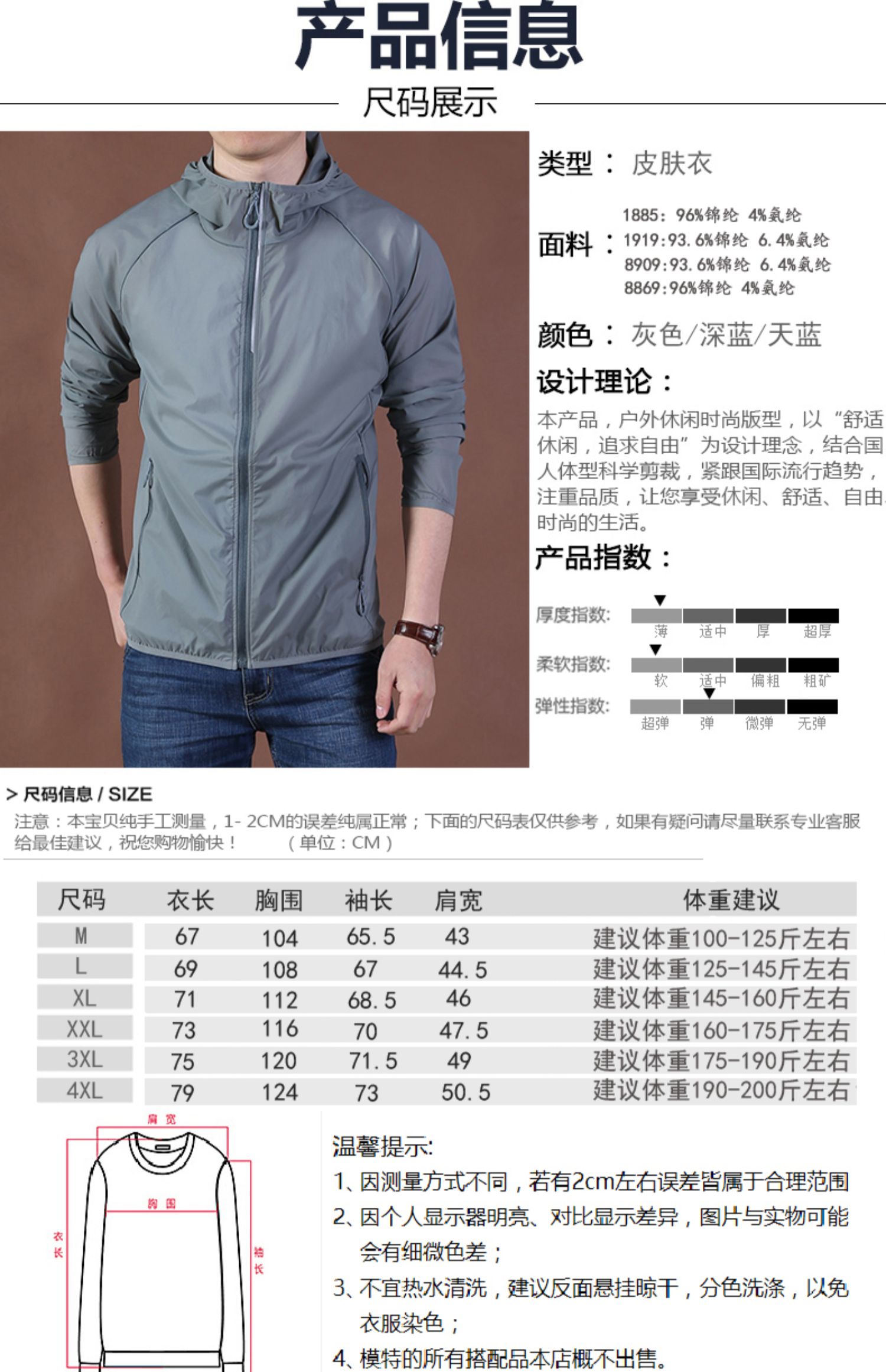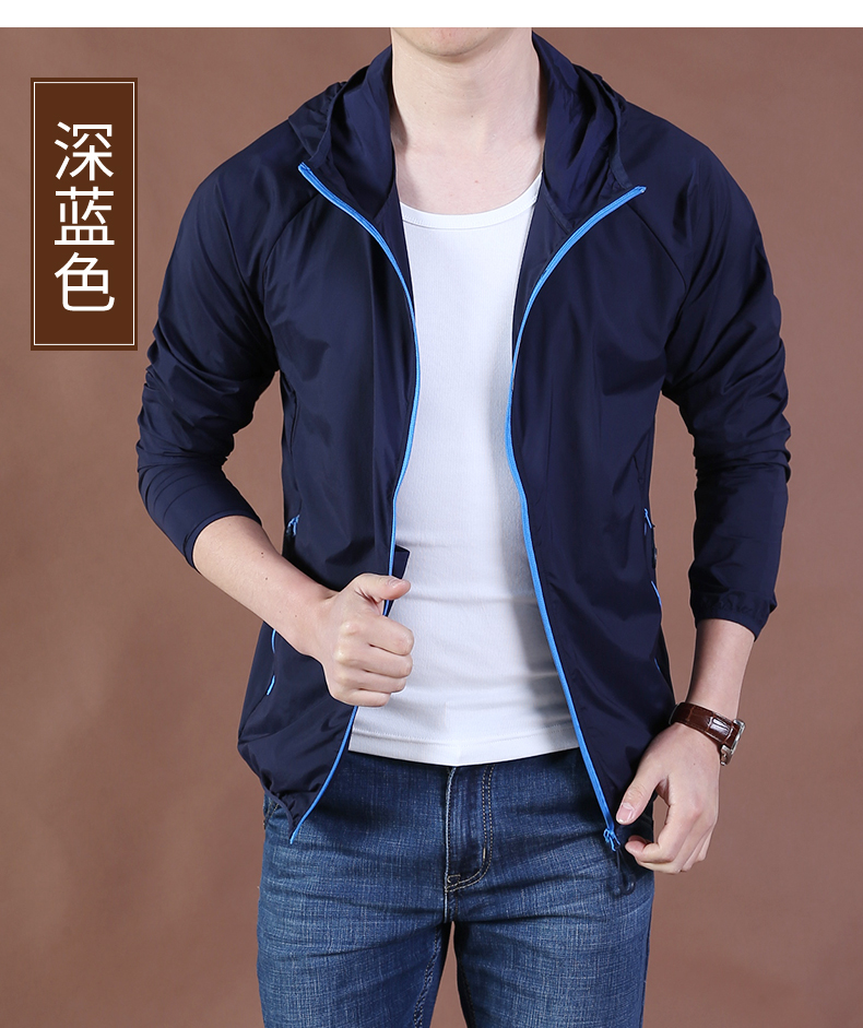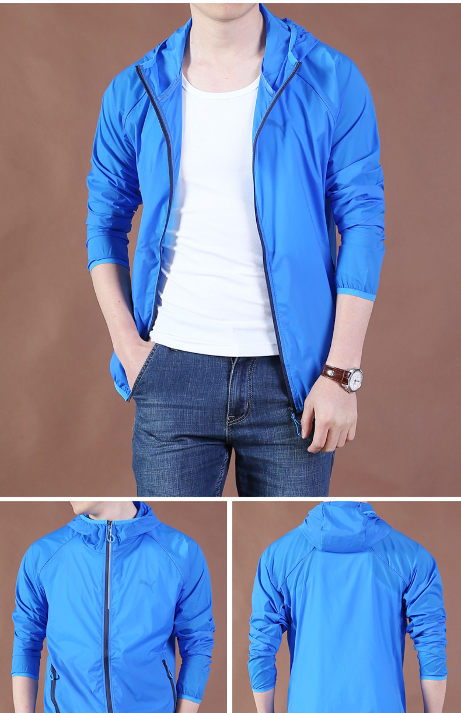夏季薄款速干皮肤衣男士青年大码防晒服连帽运动休闲风衣外套上衣