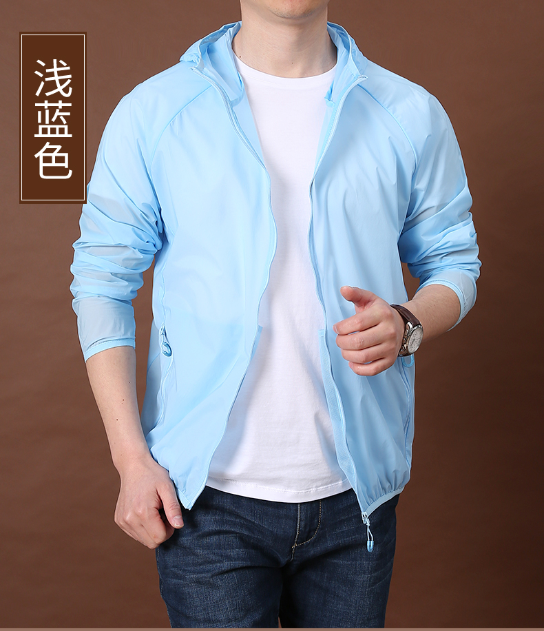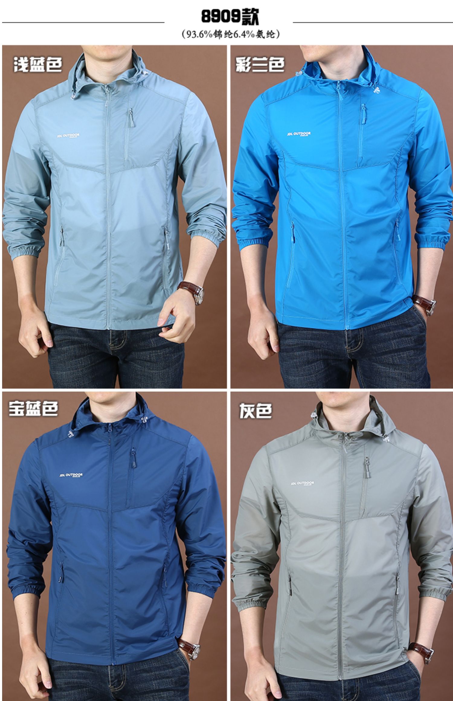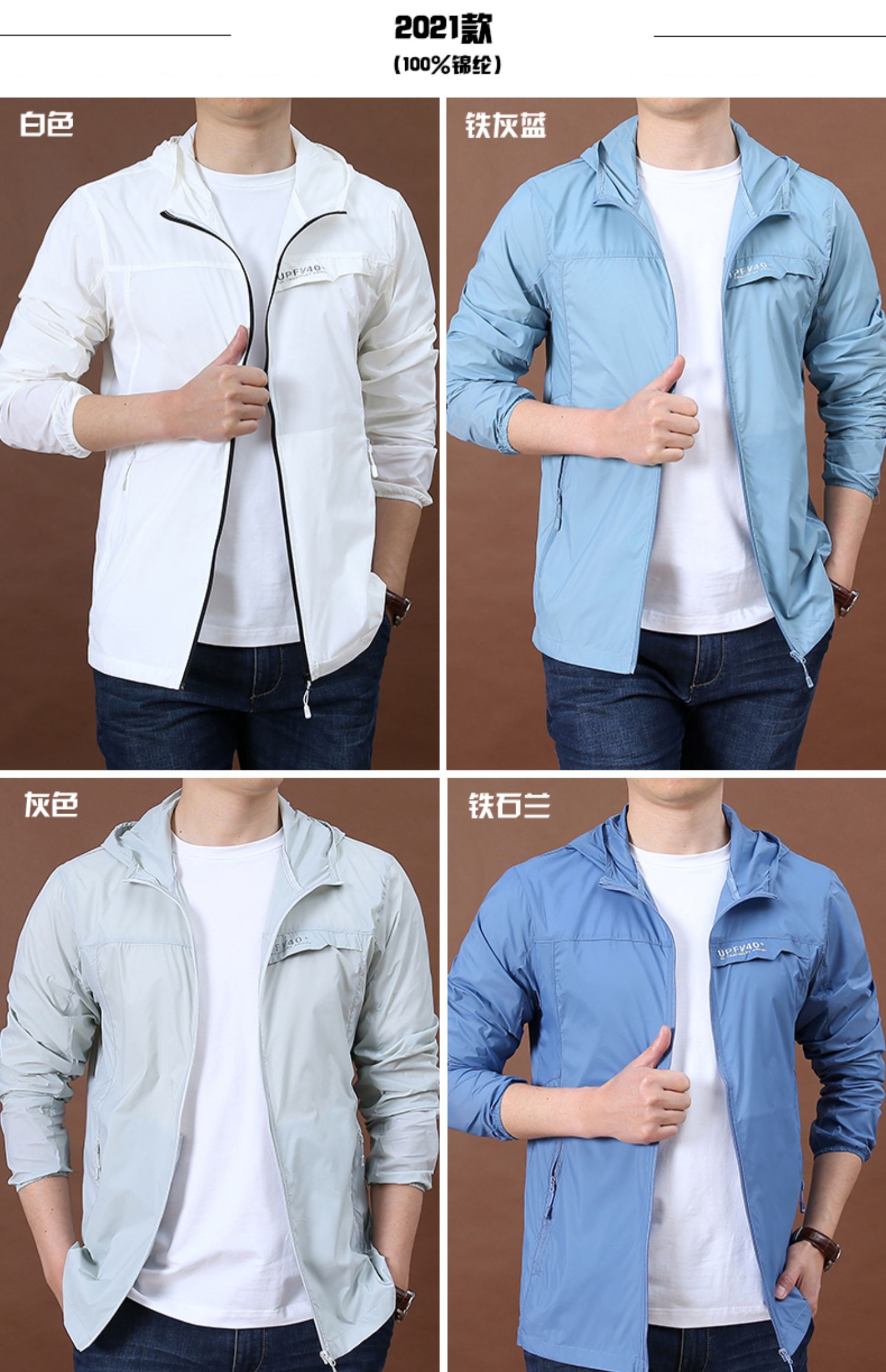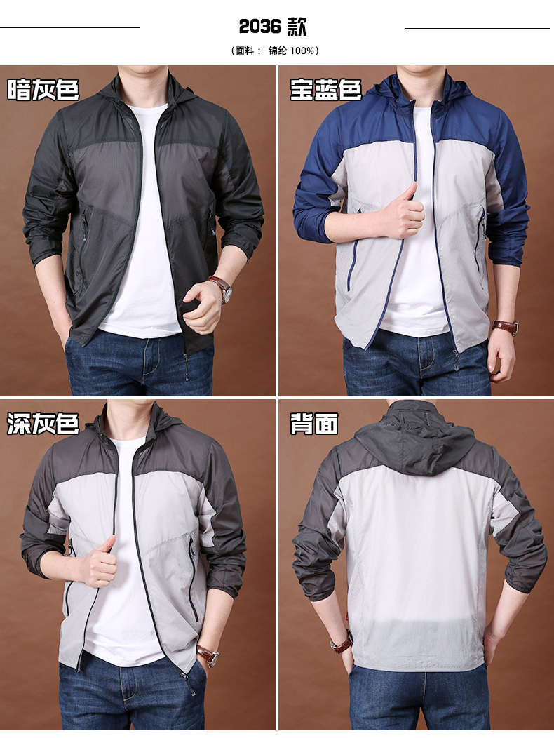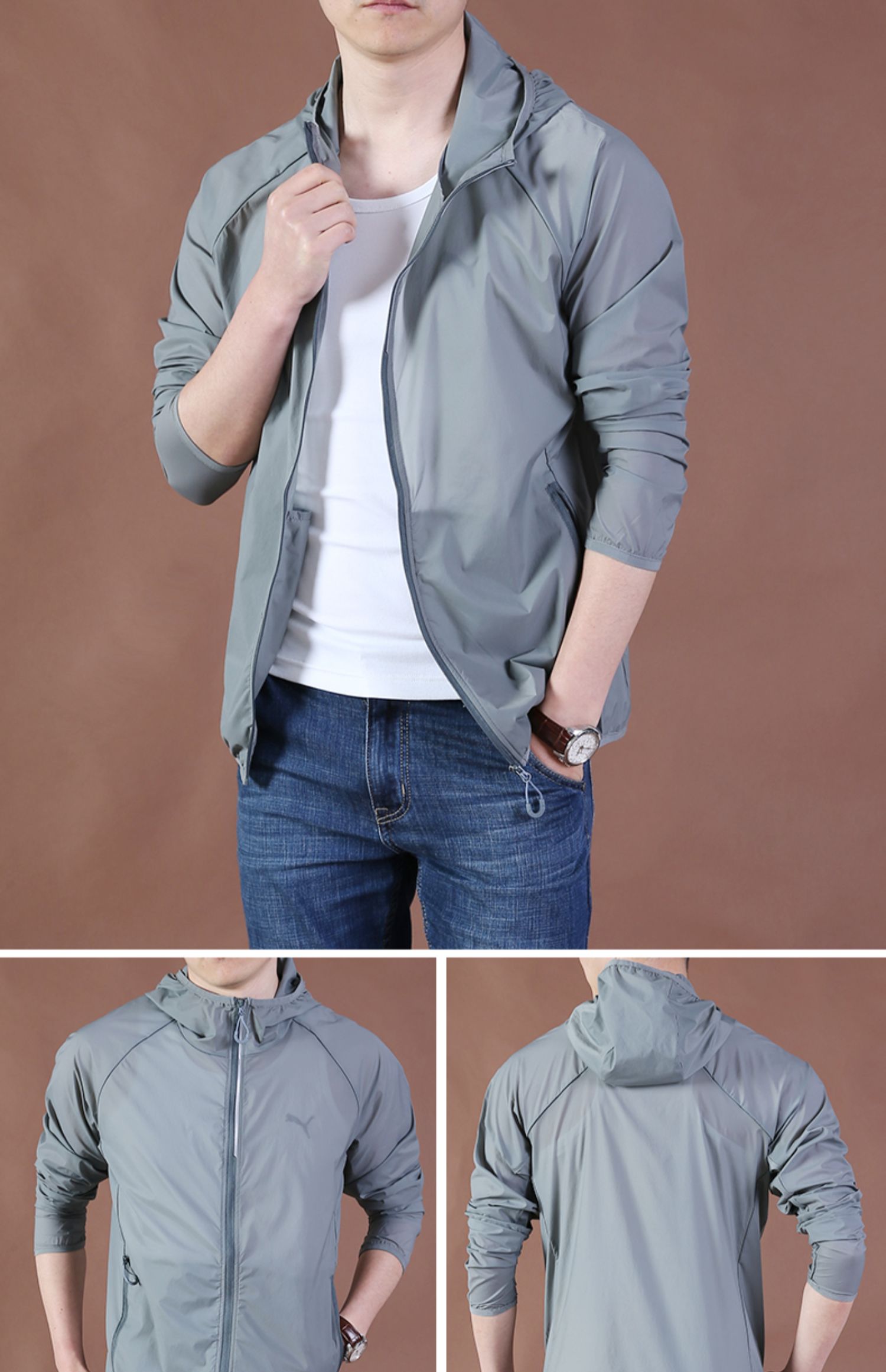 夏季薄款速干皮肤衣男士青年大码防晒服连帽运动休闲风衣外套上衣