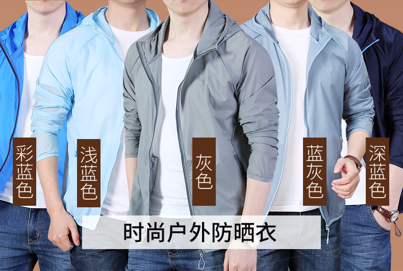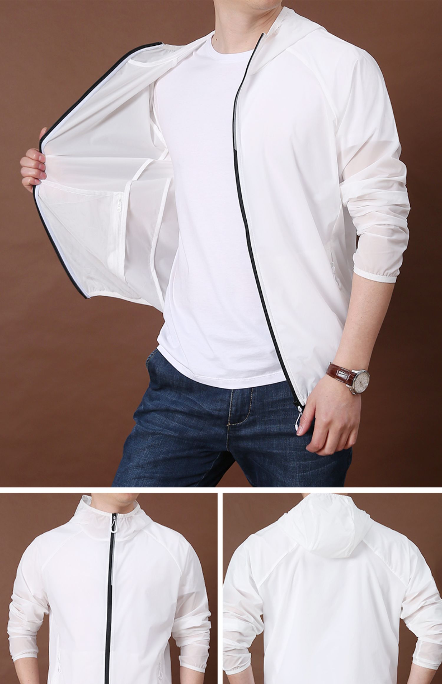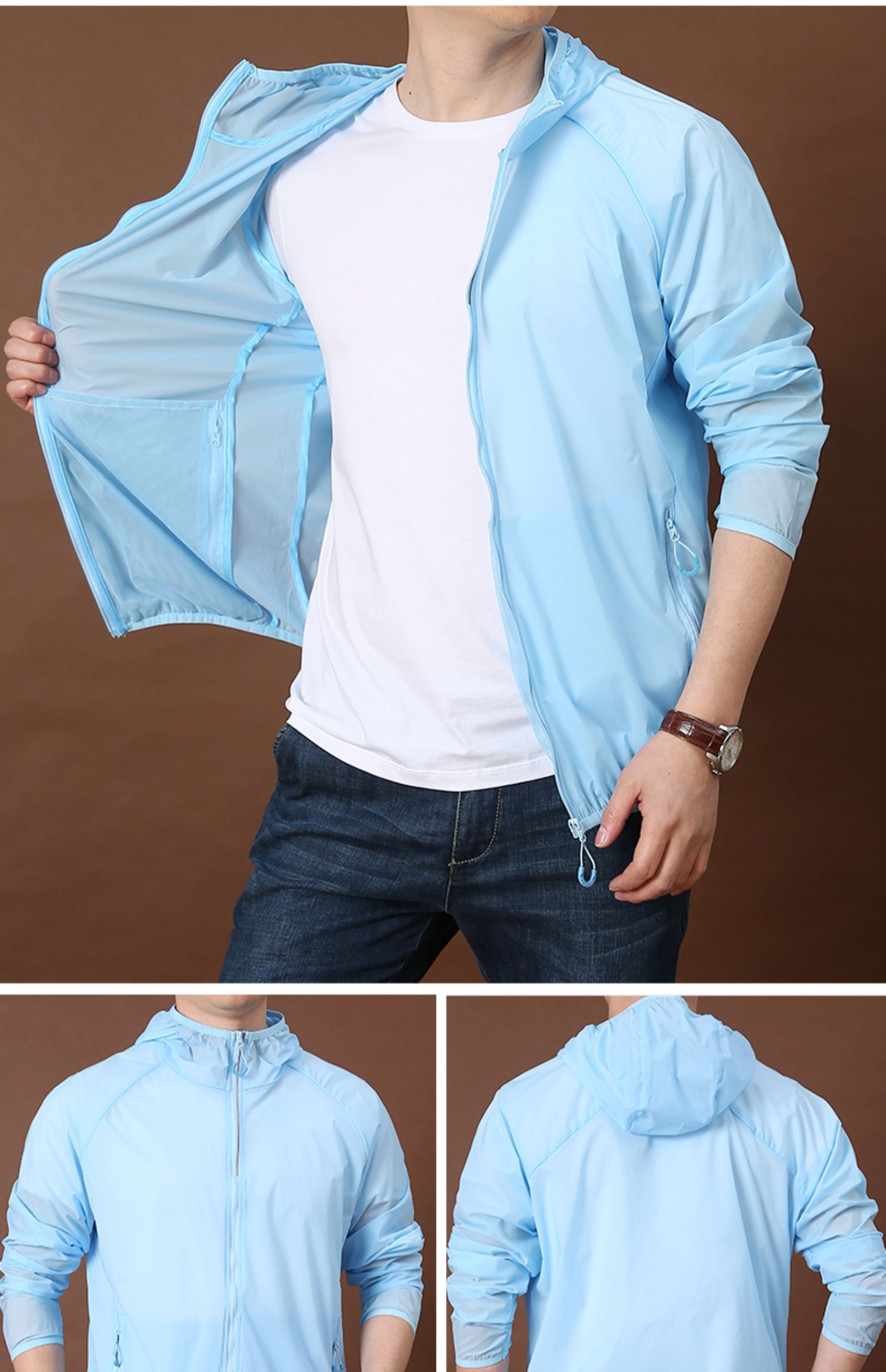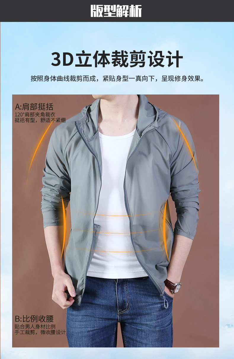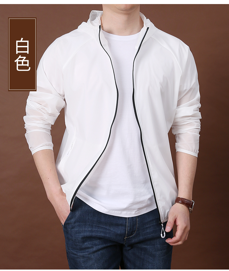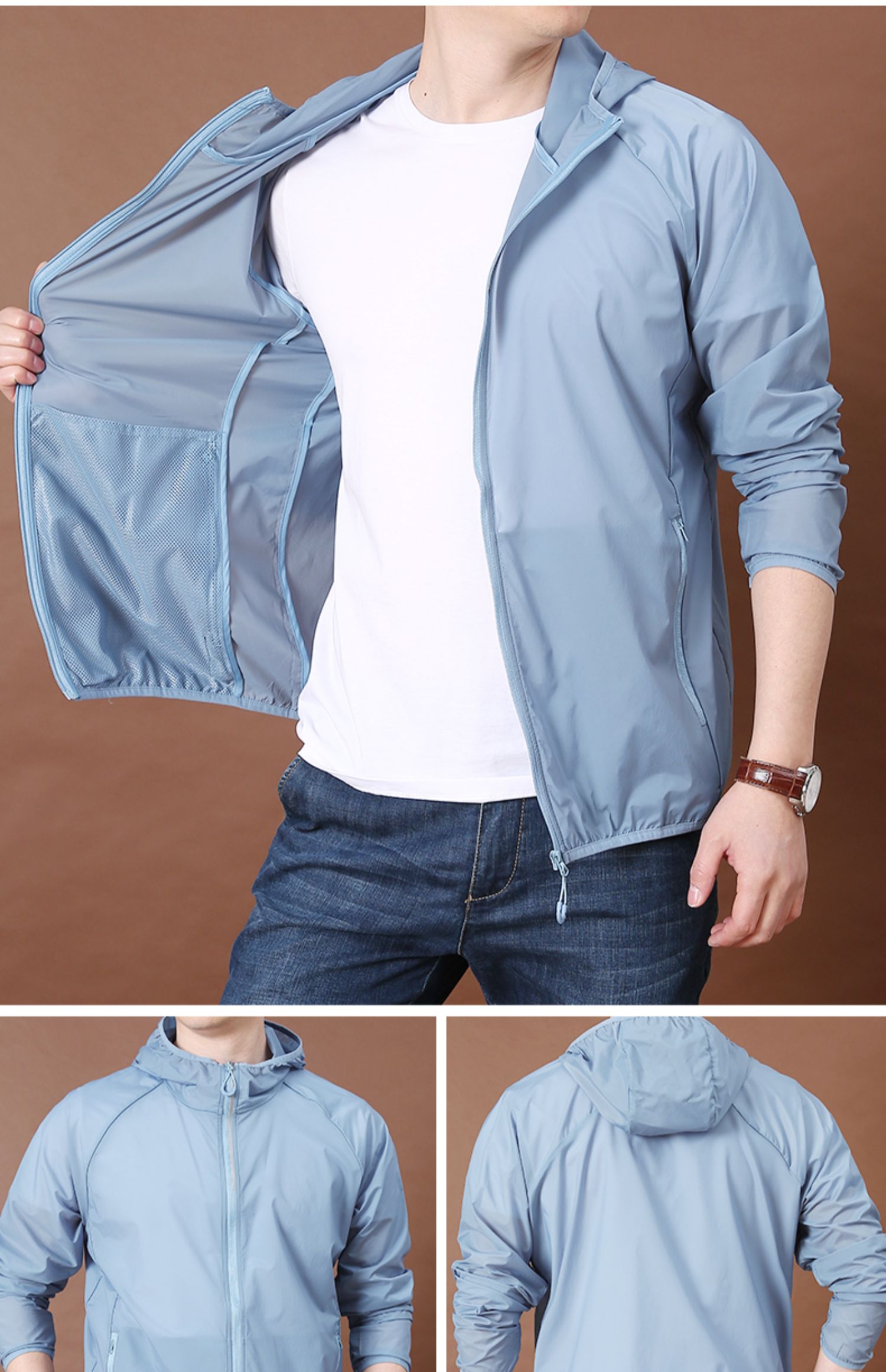 夏季薄款速干皮肤衣男士青年大码防晒服连帽运动休闲风衣外套上衣