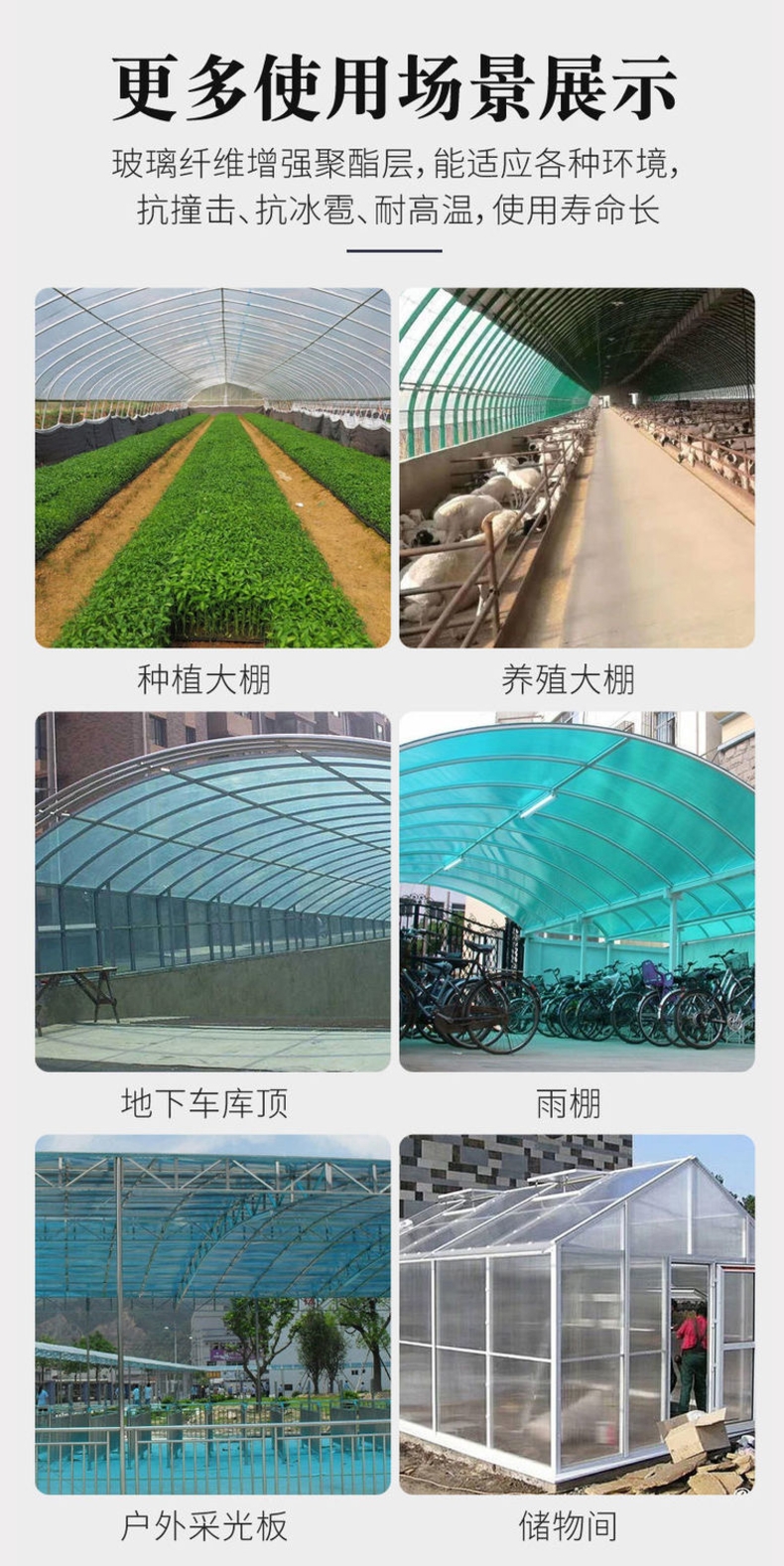 阳光板采光板透明耐力板树脂纤维塑料板房大棚雨棚玻璃彩钢瓦平板