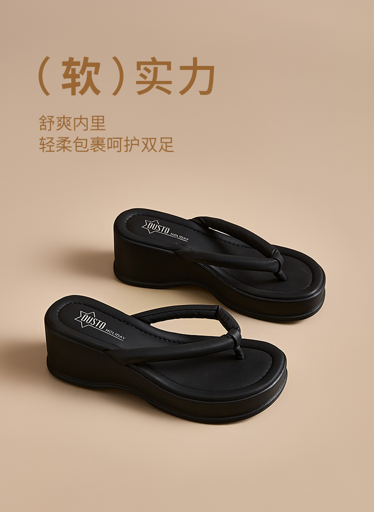 大东厚底人字拖女外穿2025新款夏季坡跟软底增高拖鞋女款法式凉拖
