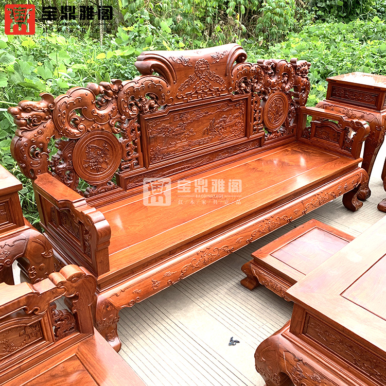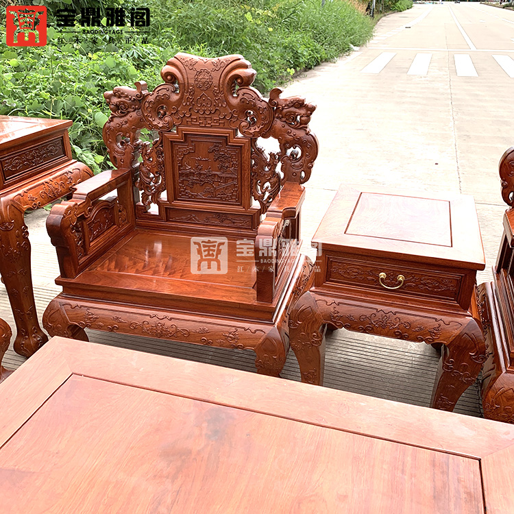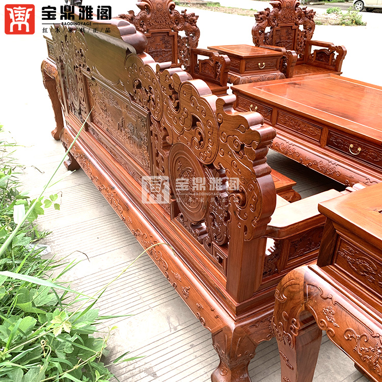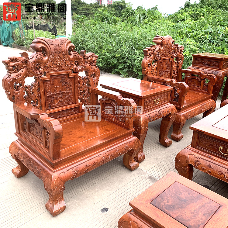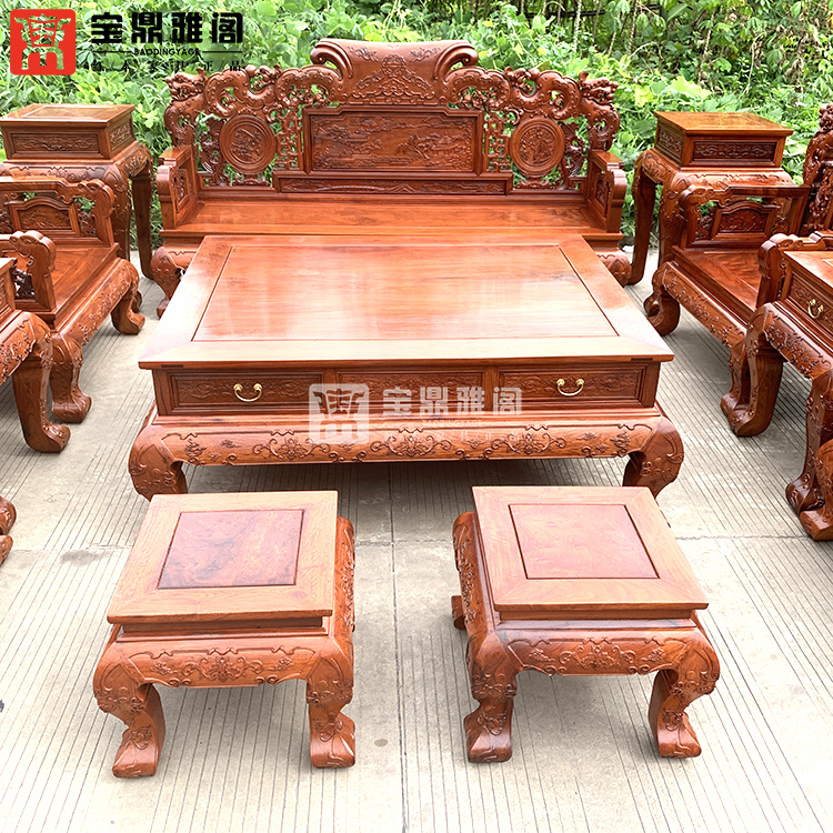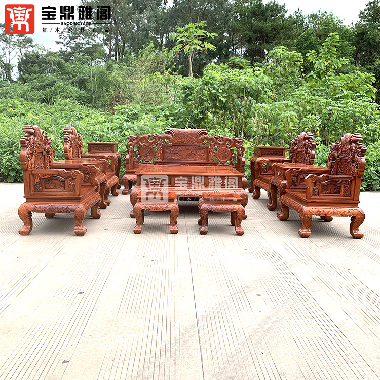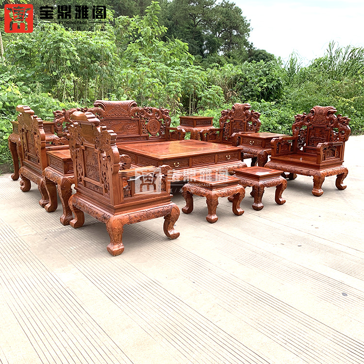 红木家具缅甸花梨龙凤沙发十件套大果紫檀明清古典客厅组合深雕
