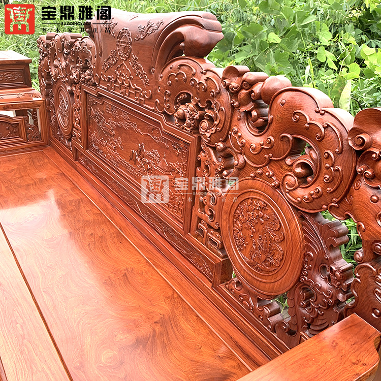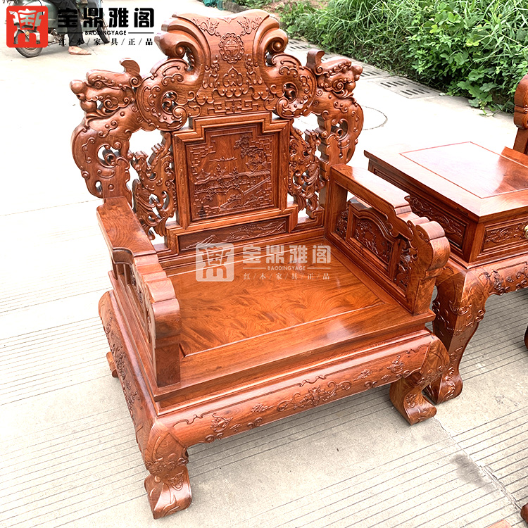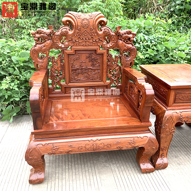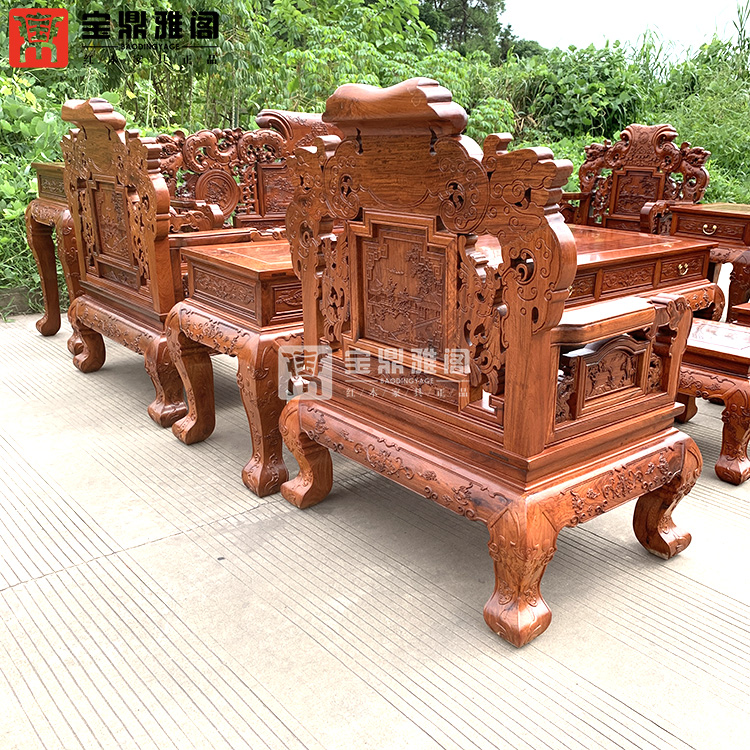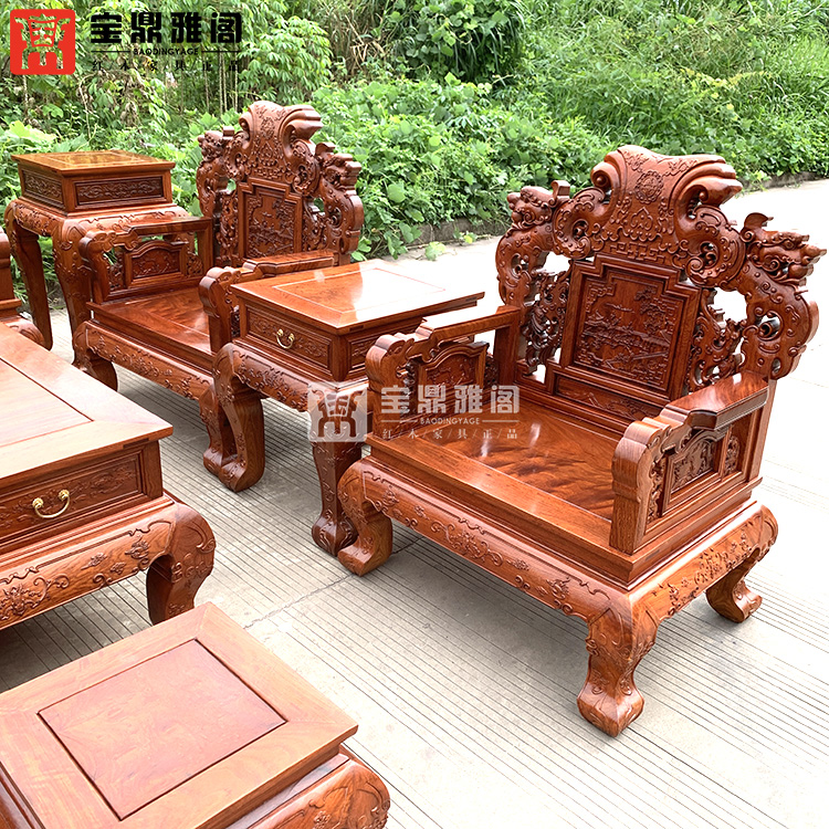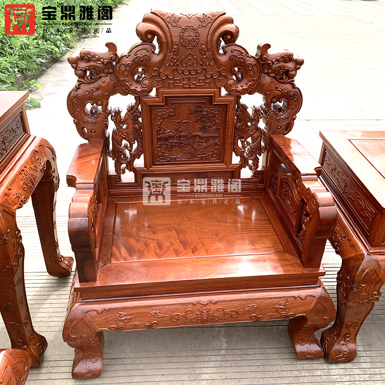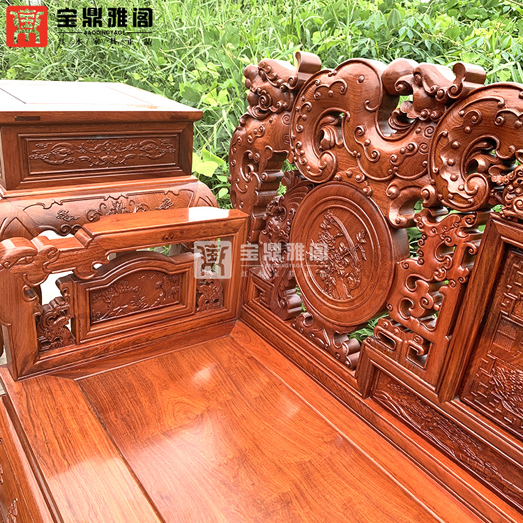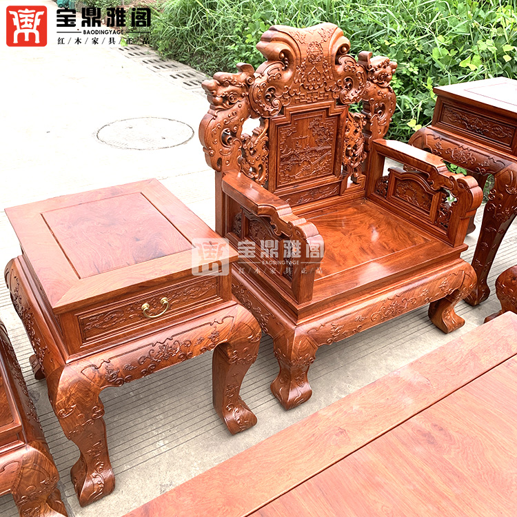 红木家具缅甸花梨龙凤沙发十件套大果紫檀明清古典客厅组合深雕