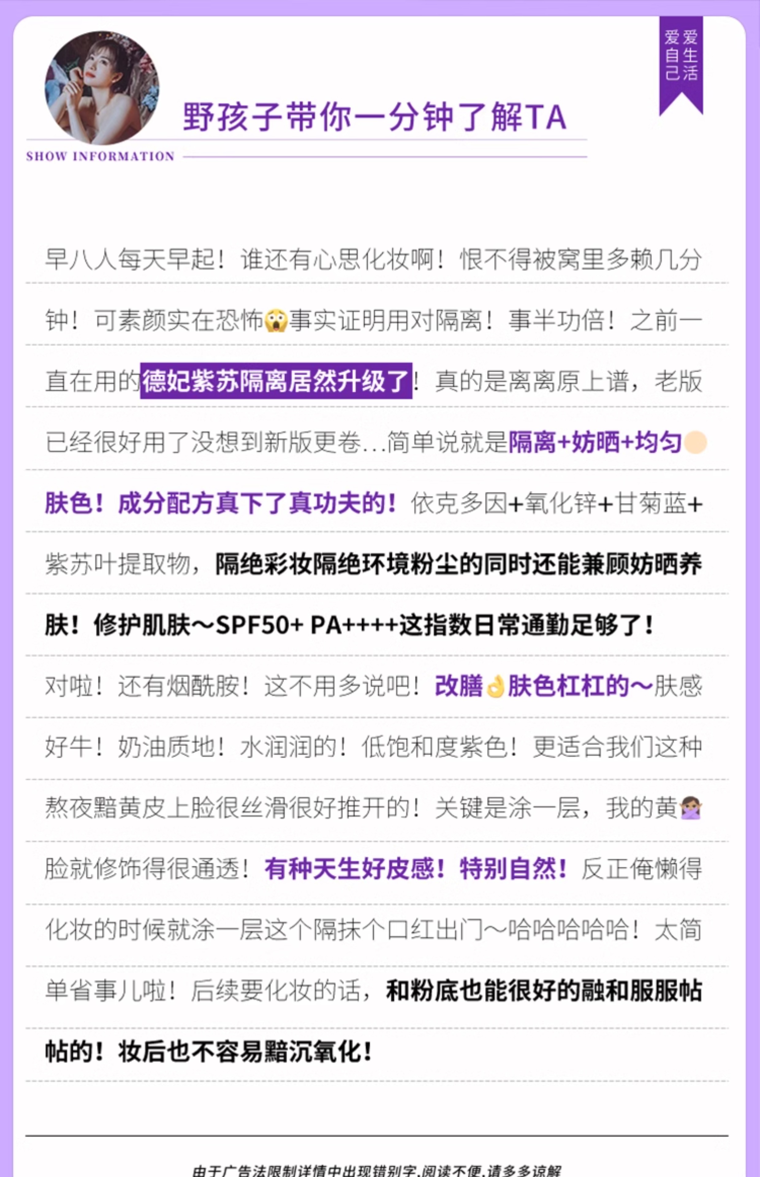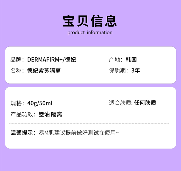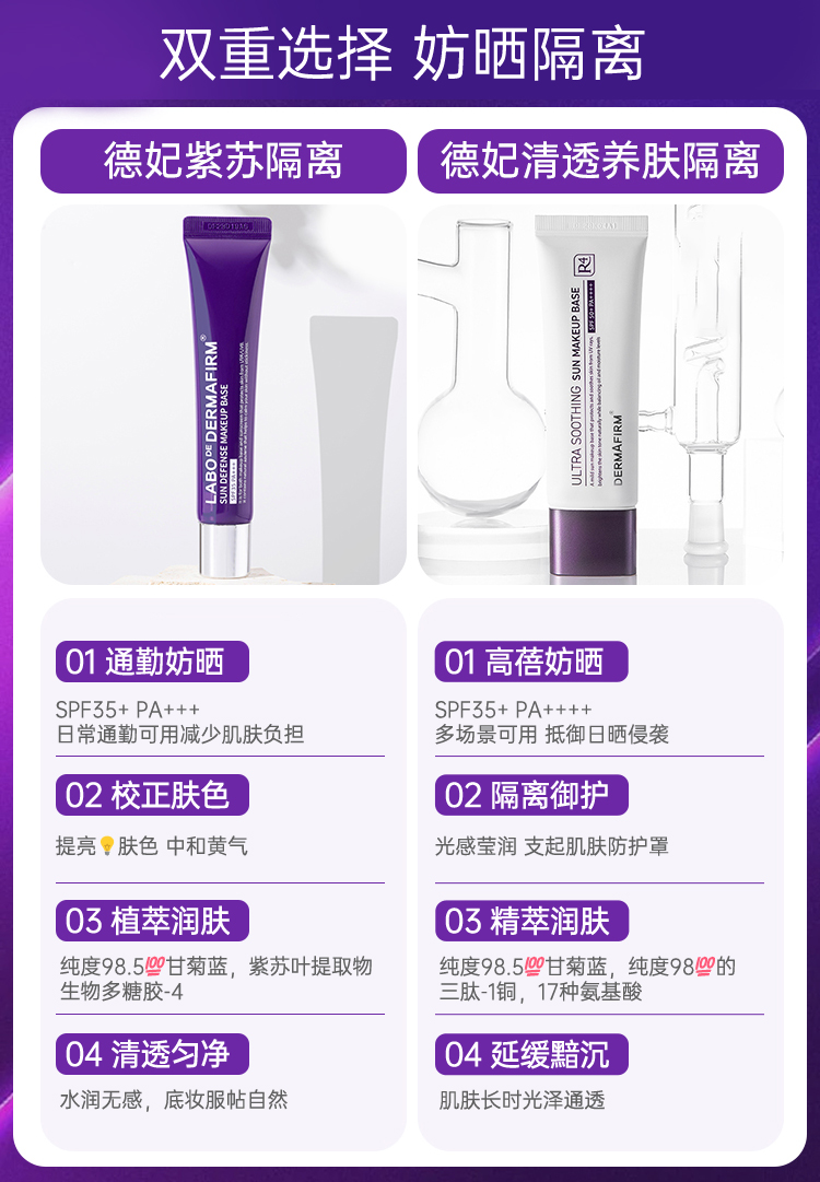 德妃紫苏隔离防晒霜二合一紫色提亮肤色妆前乳遮瑕隐形毛孔素颜霜