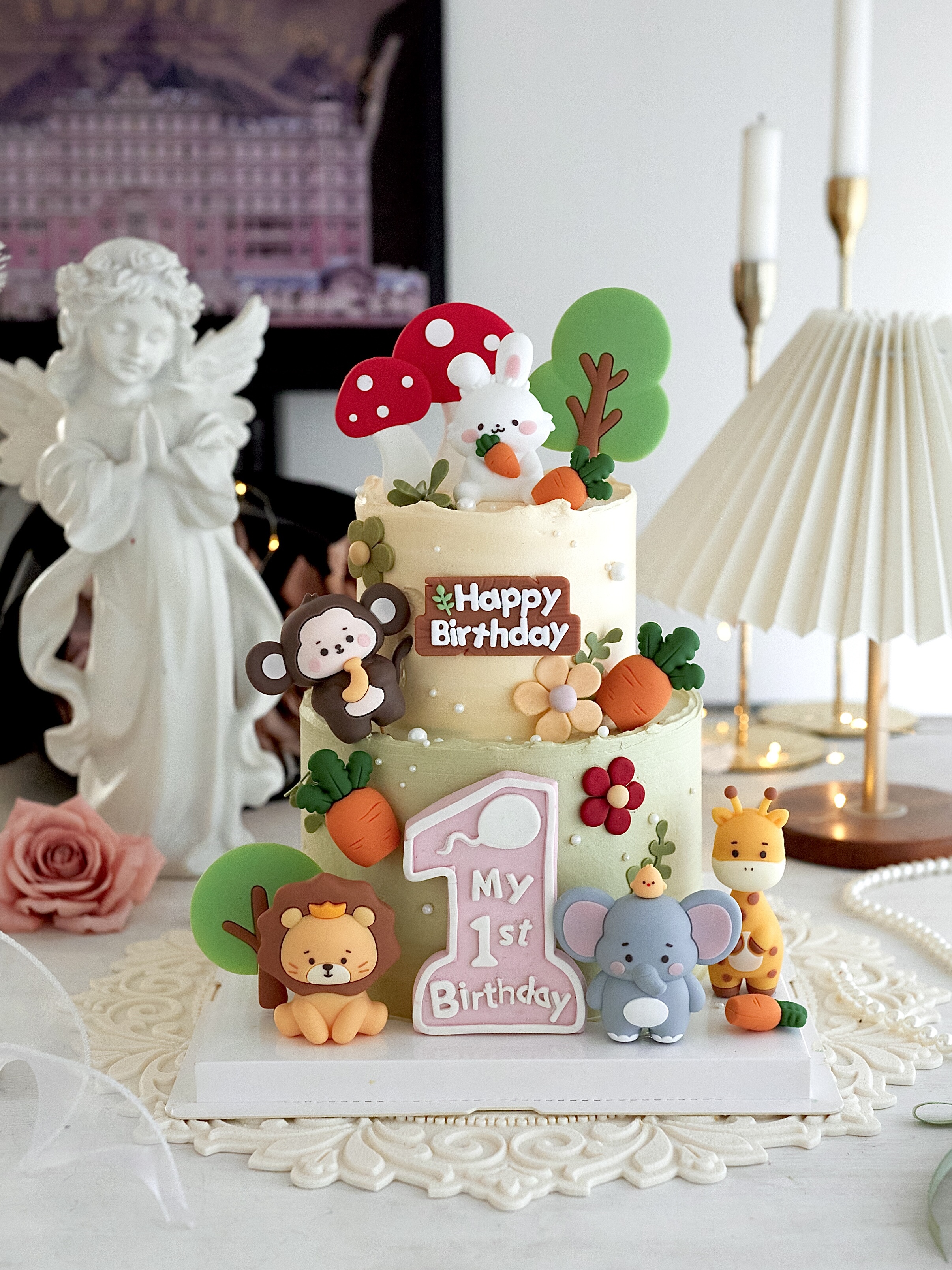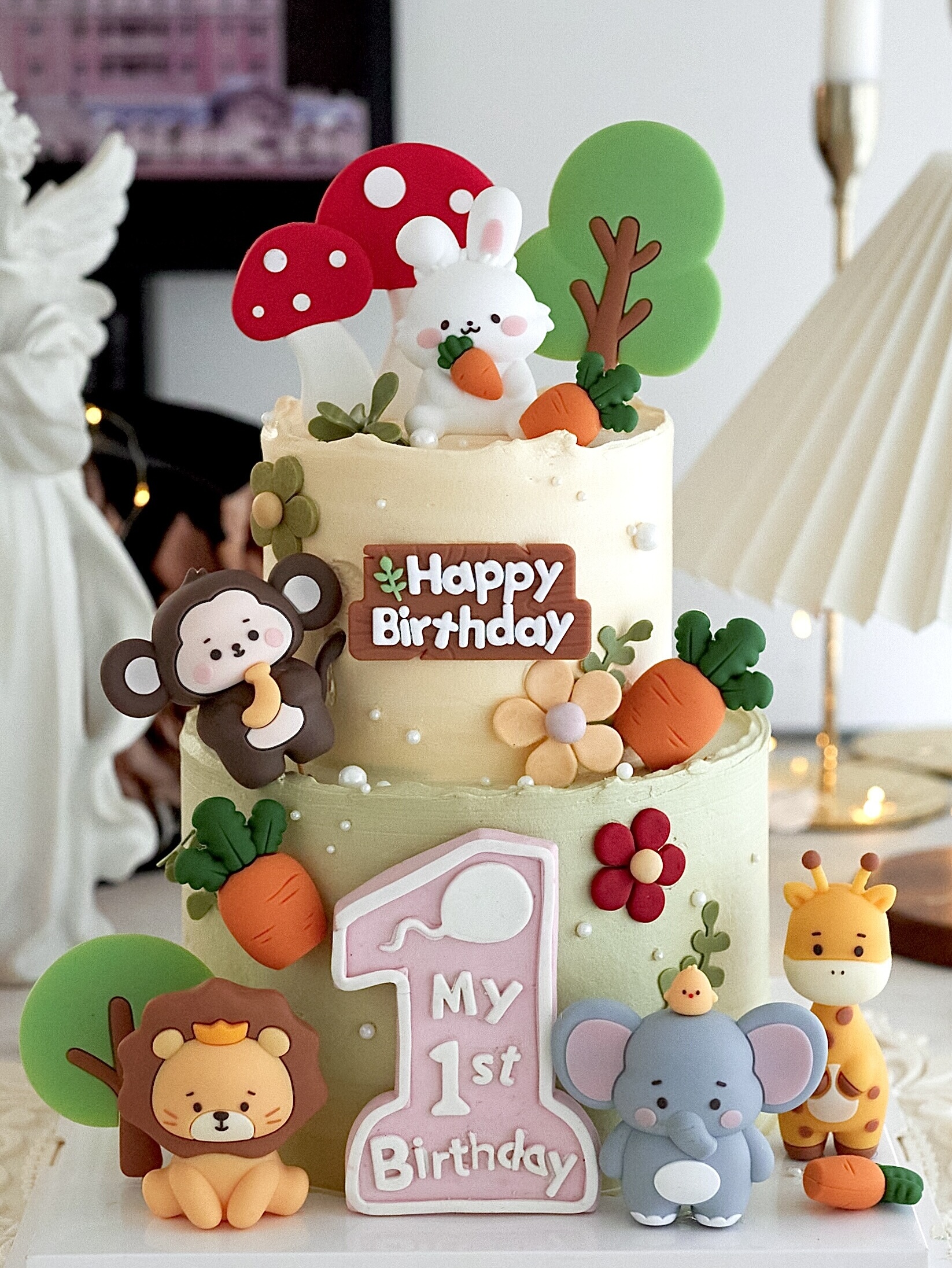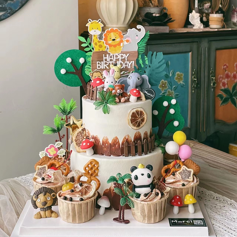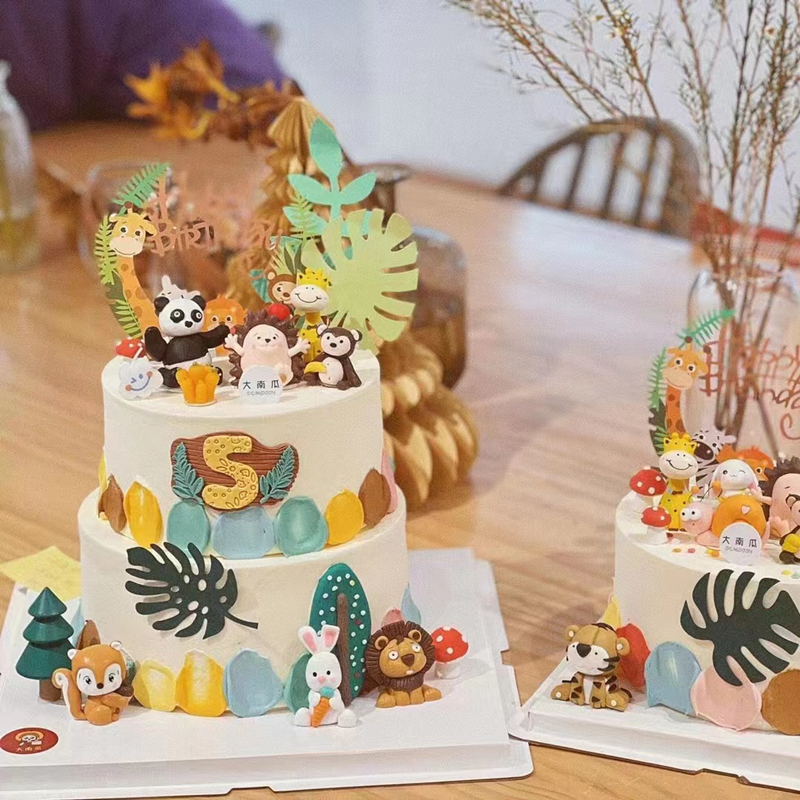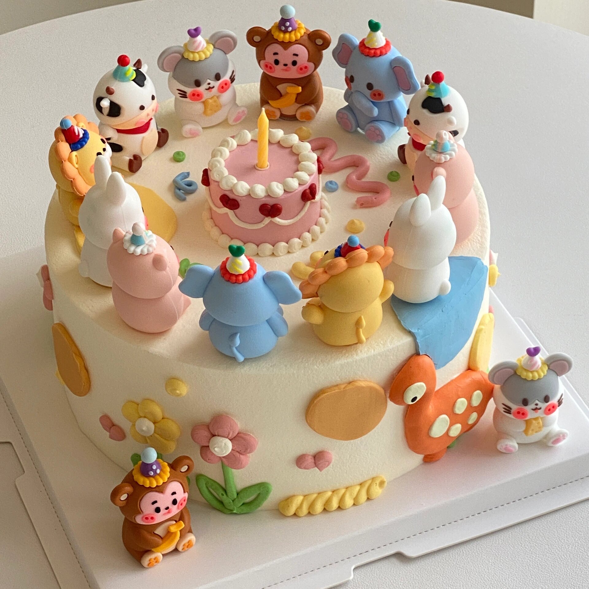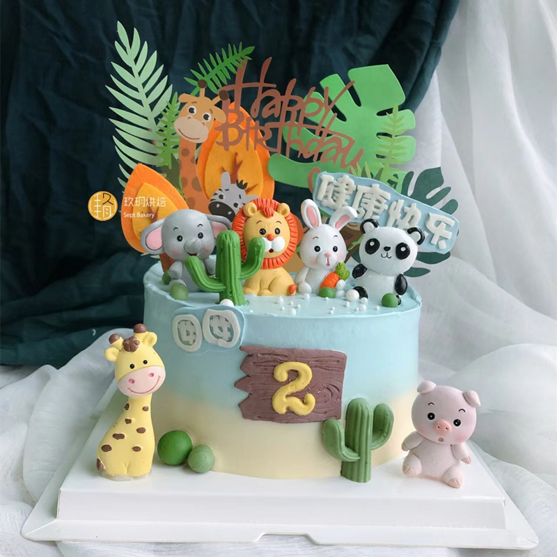 网红可爱卡通生肖小动物宝宝生日周岁百天满月蛋糕装饰甜品台摆件