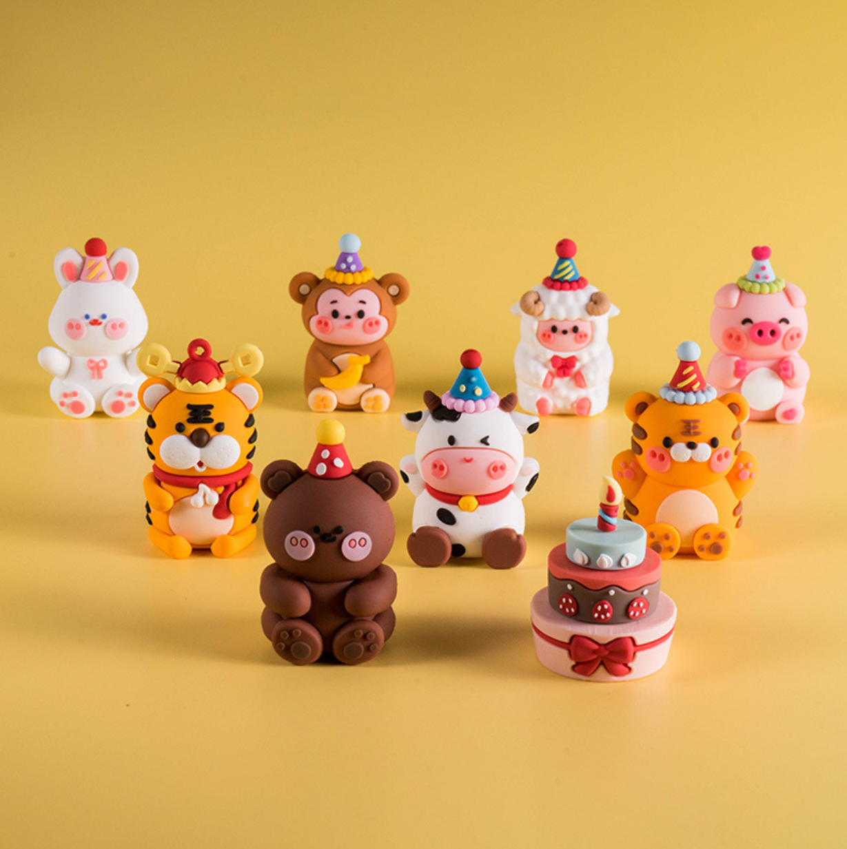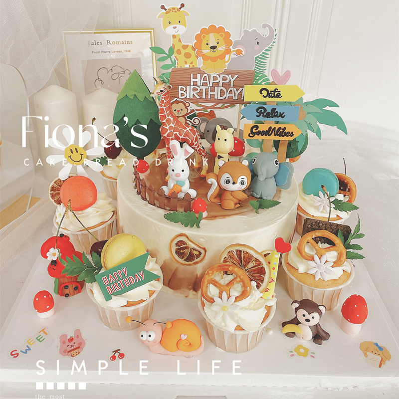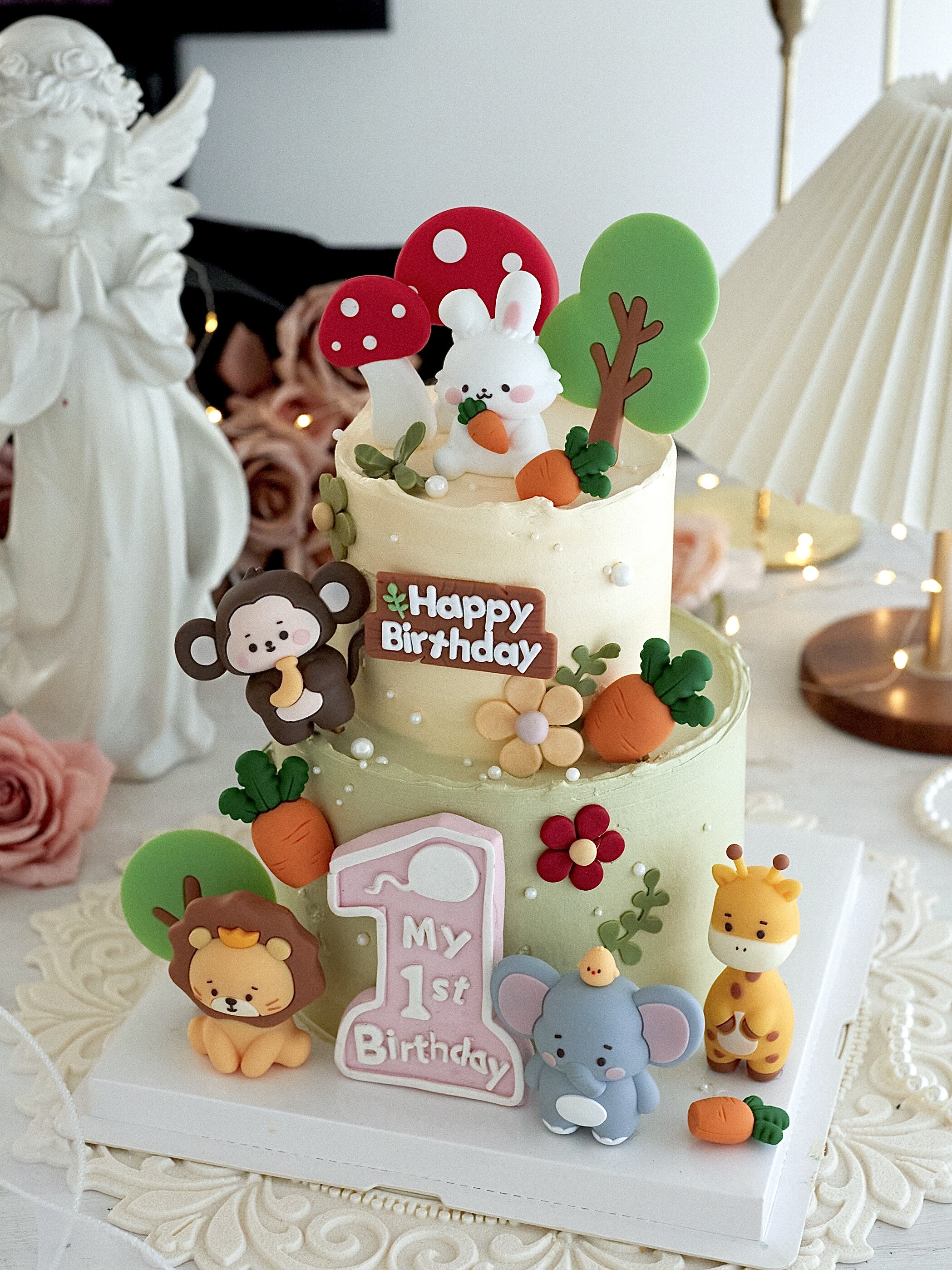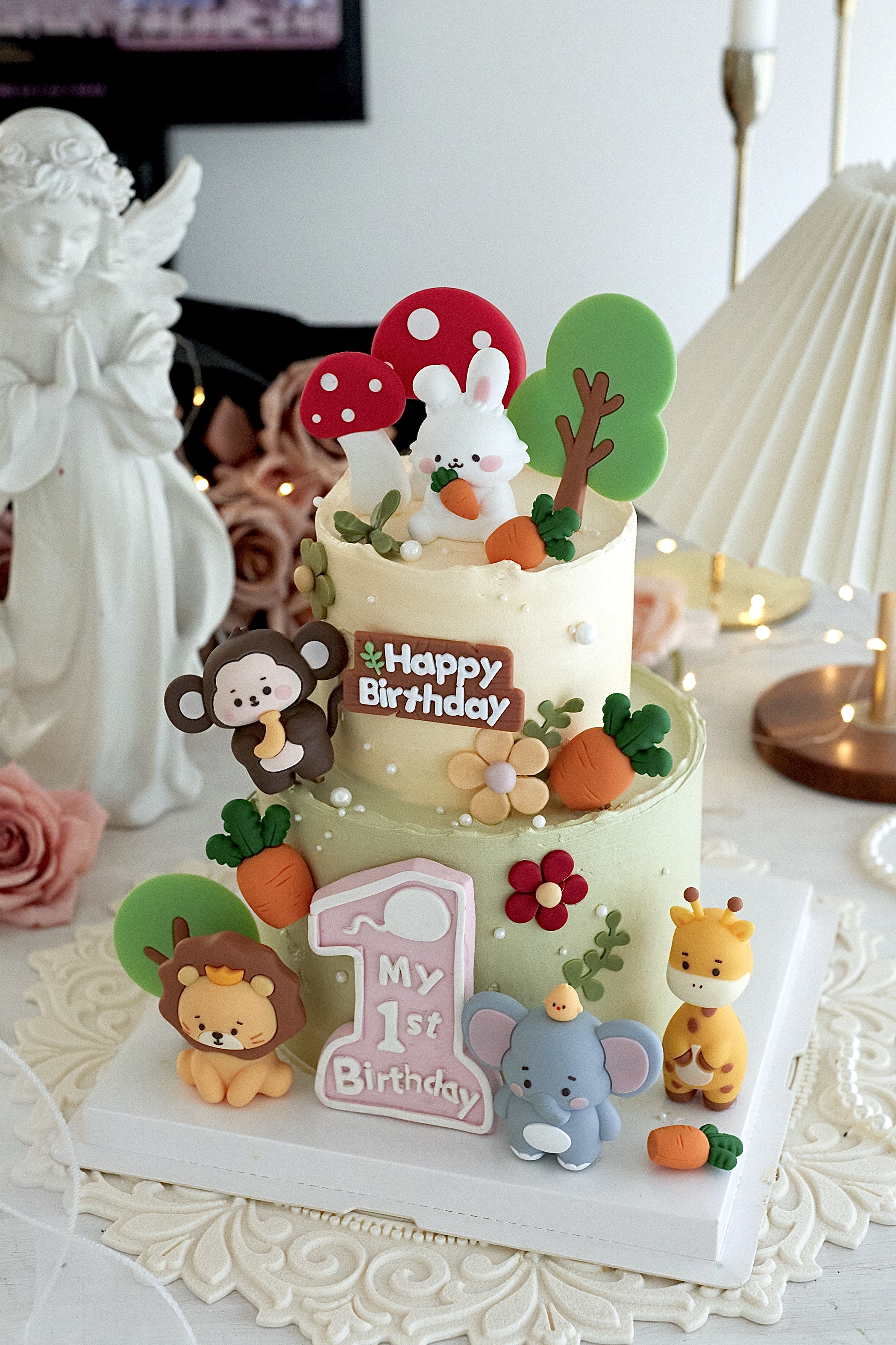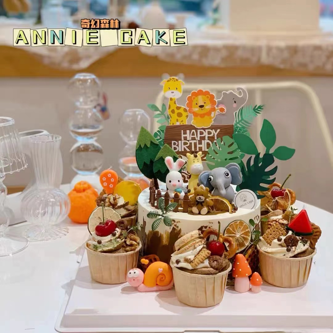 网红可爱卡通生肖小动物宝宝生日周岁百天满月蛋糕装饰甜品台摆件