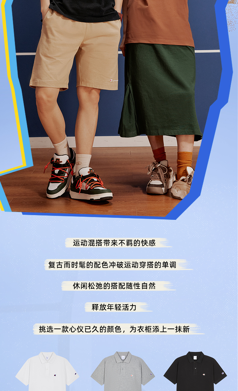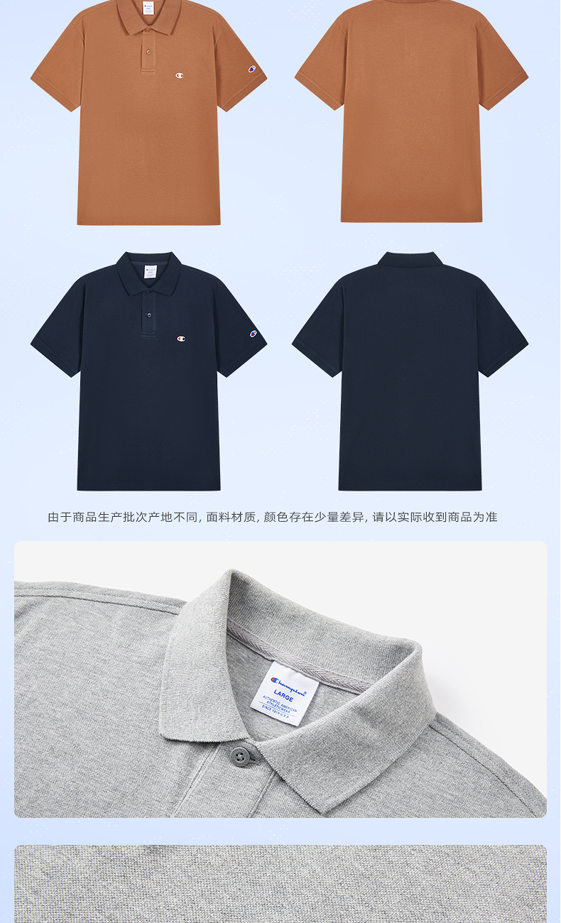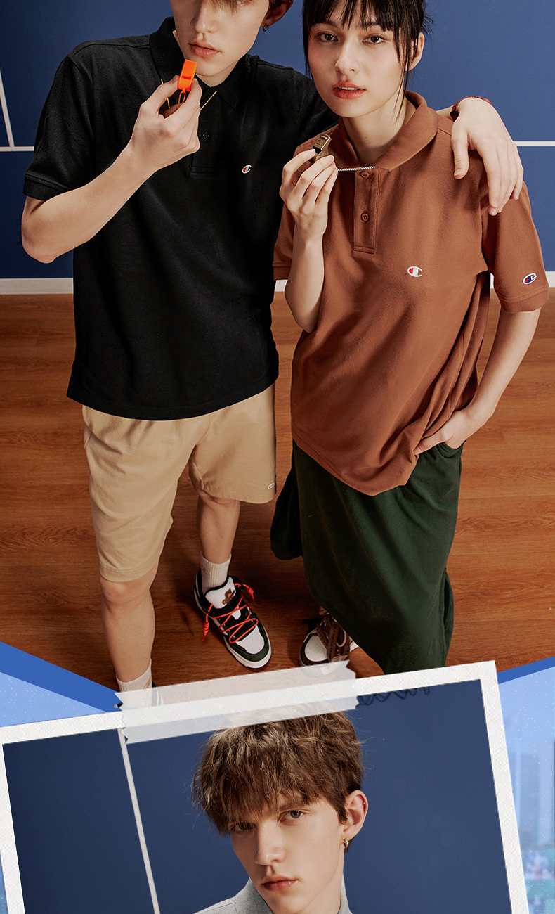 Champion冠军T恤女25夏季新款刺绣纯棉透气情侣POLO衫短袖上衣男