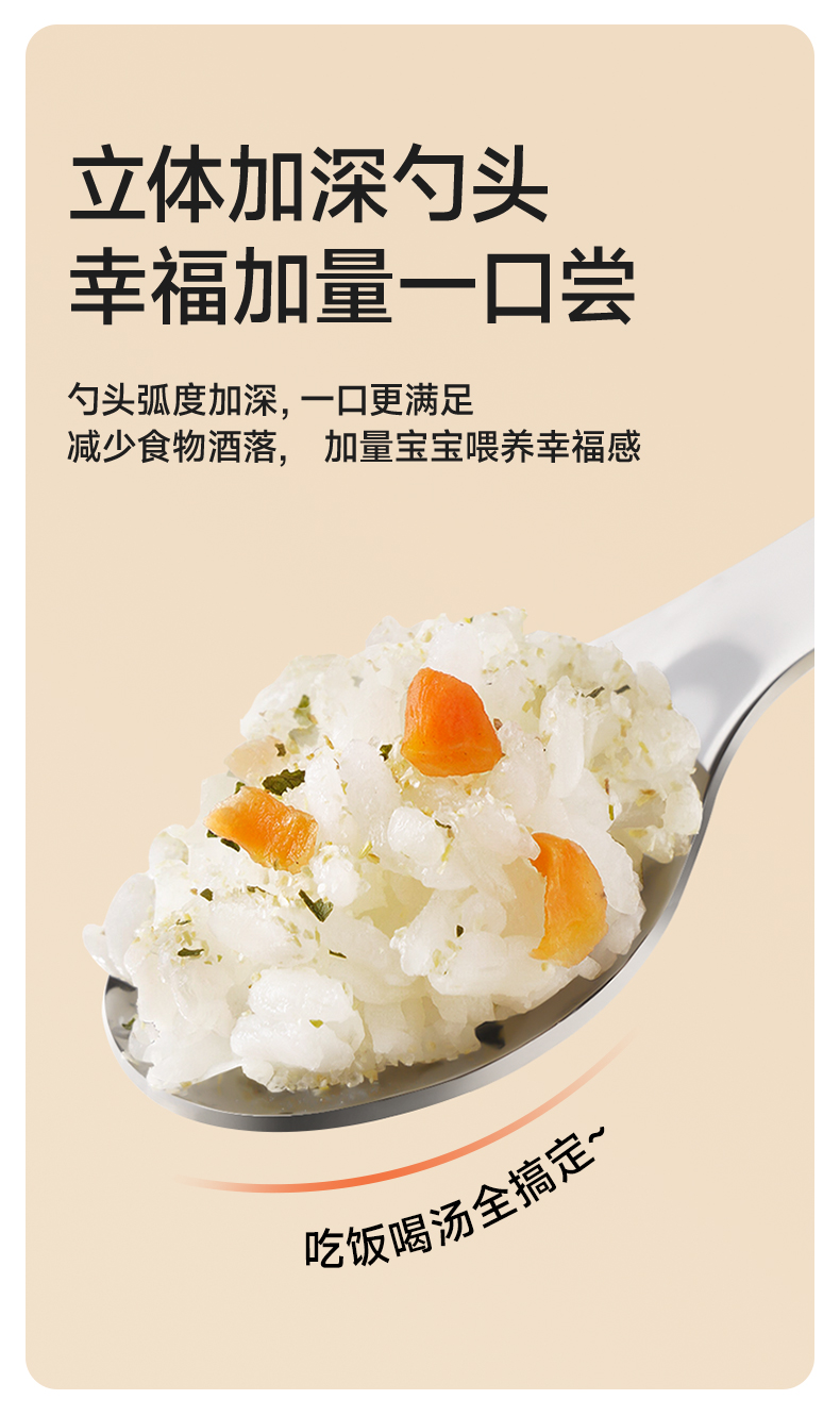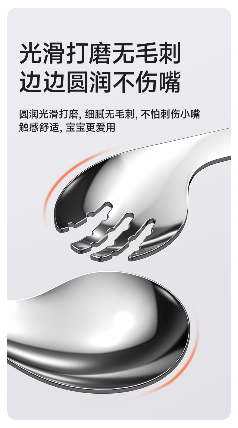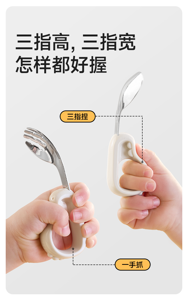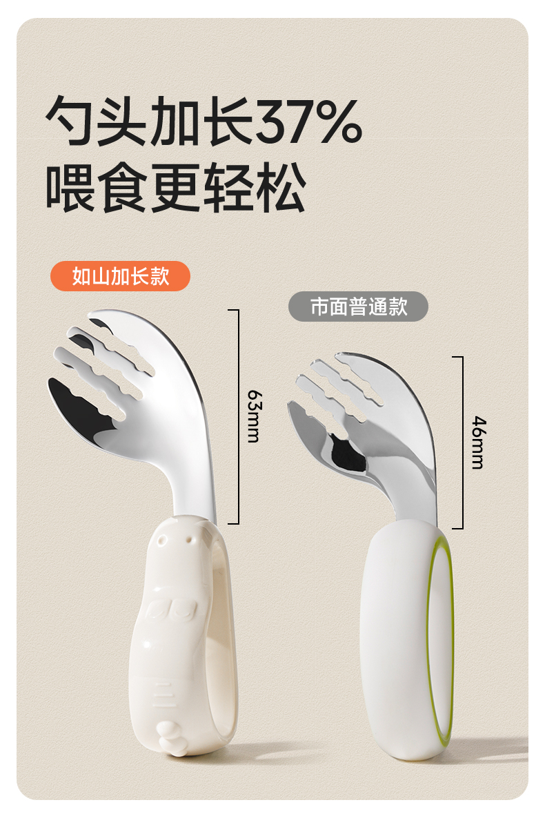 如山宝宝自主进食辅食勺子婴儿学吃饭训练儿童不锈钢餐具元宝叉勺