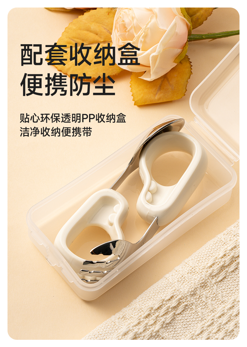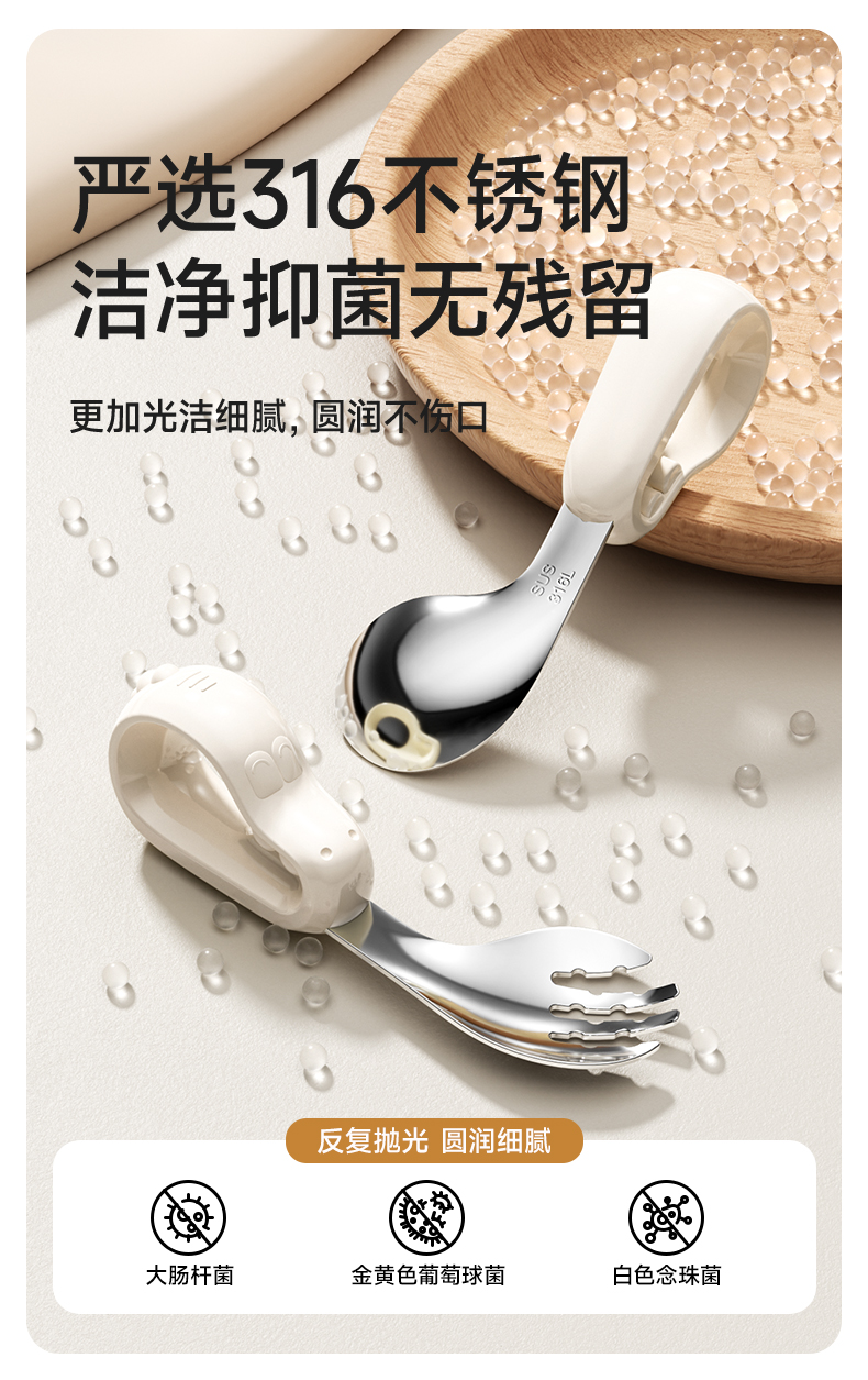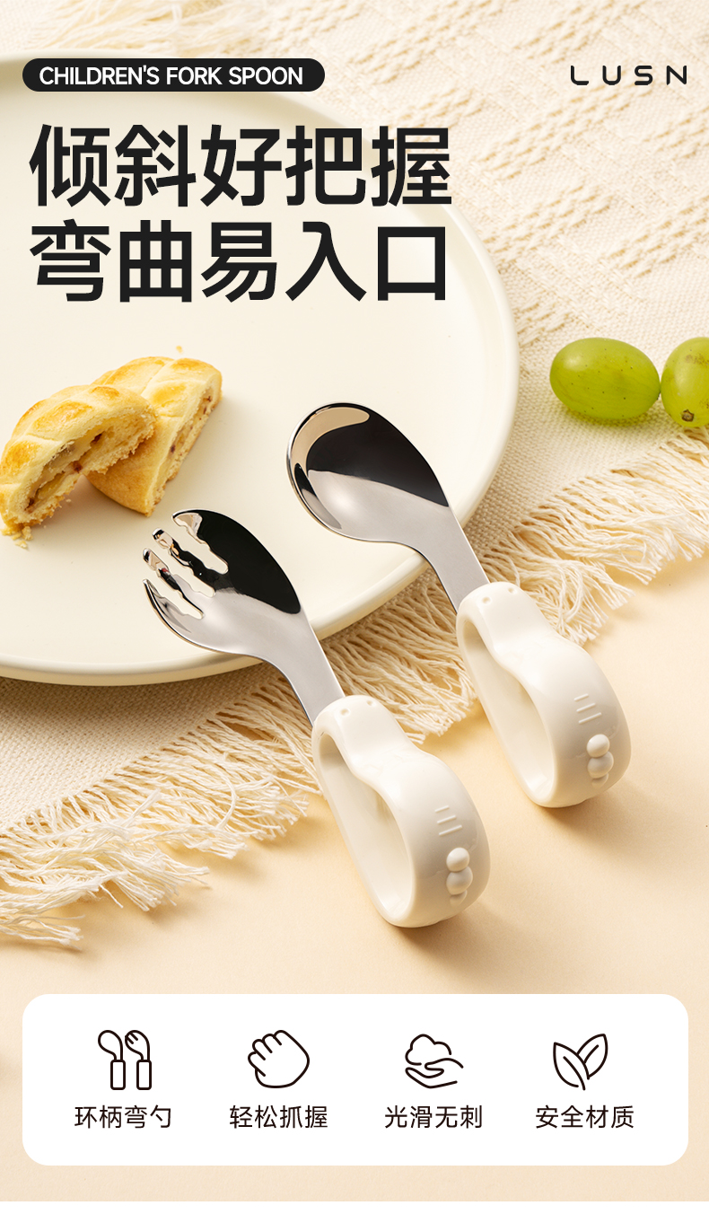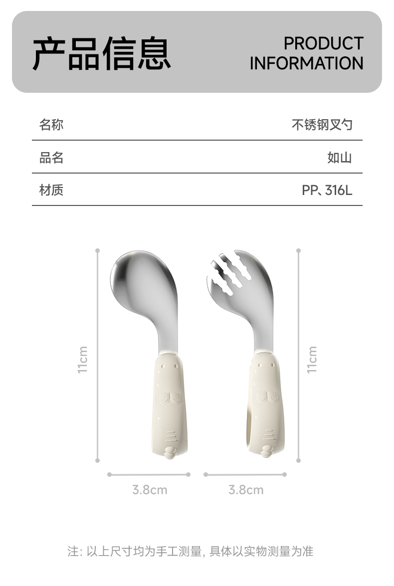 如山宝宝自主进食辅食勺子婴儿学吃饭训练儿童不锈钢餐具元宝叉勺