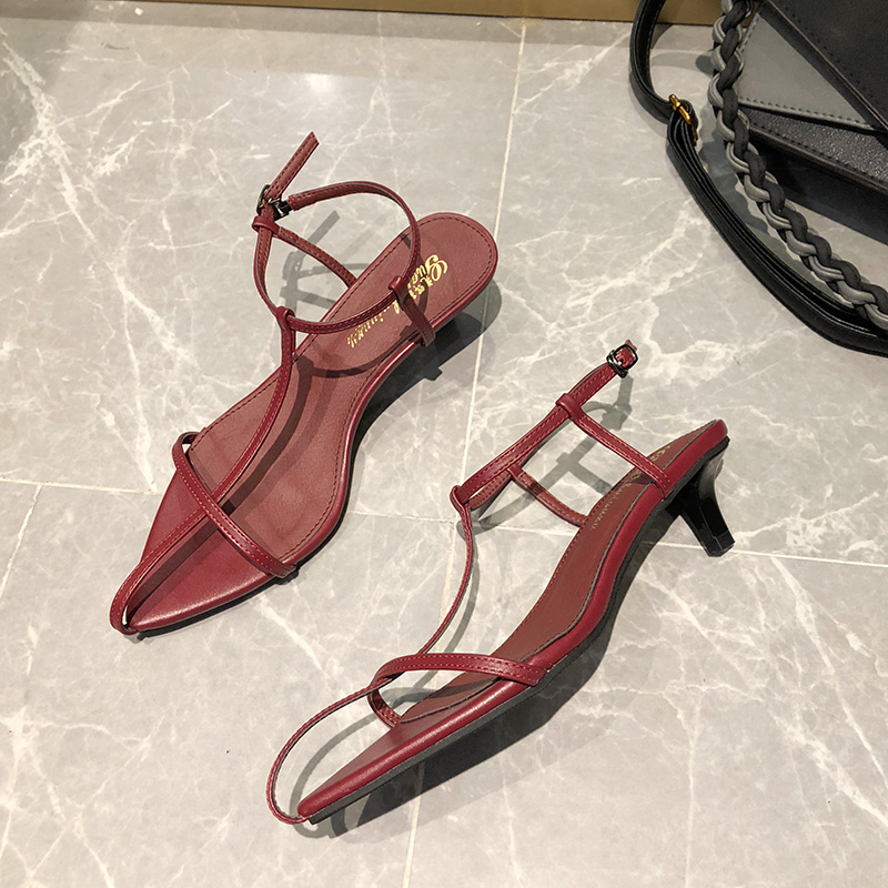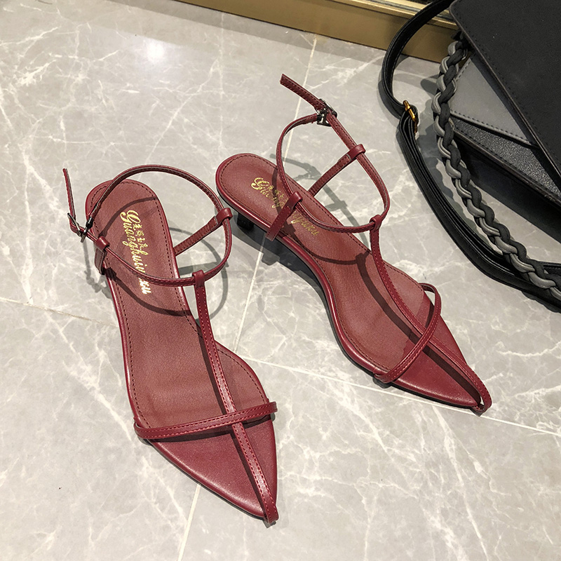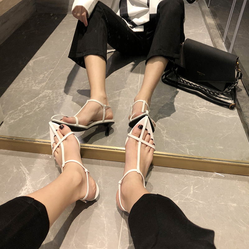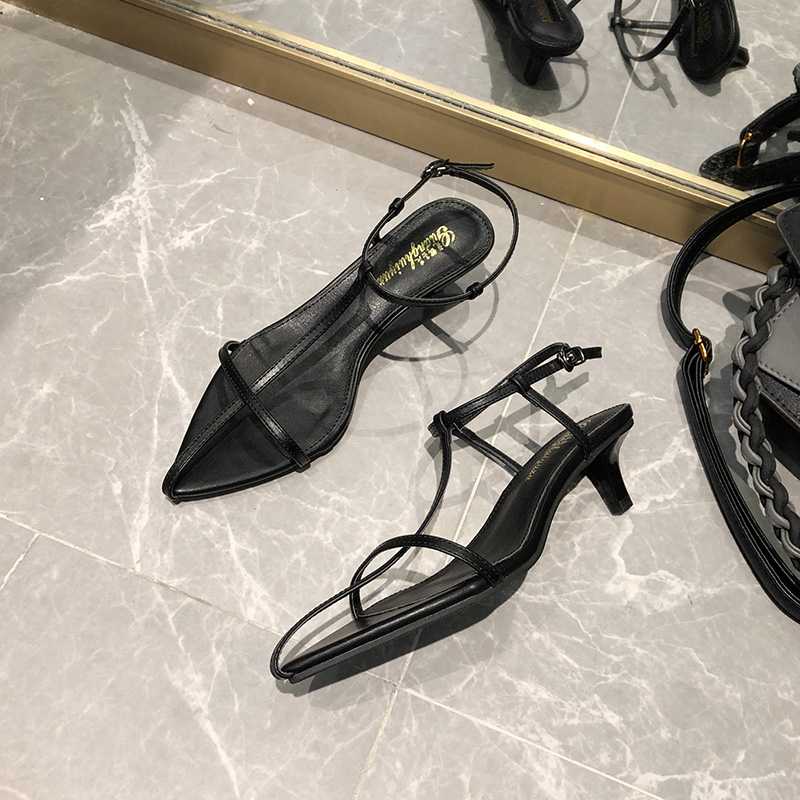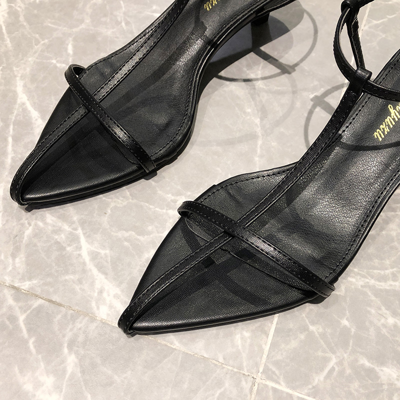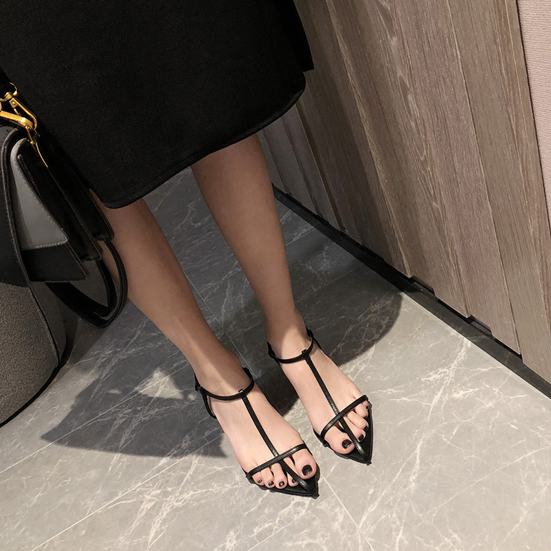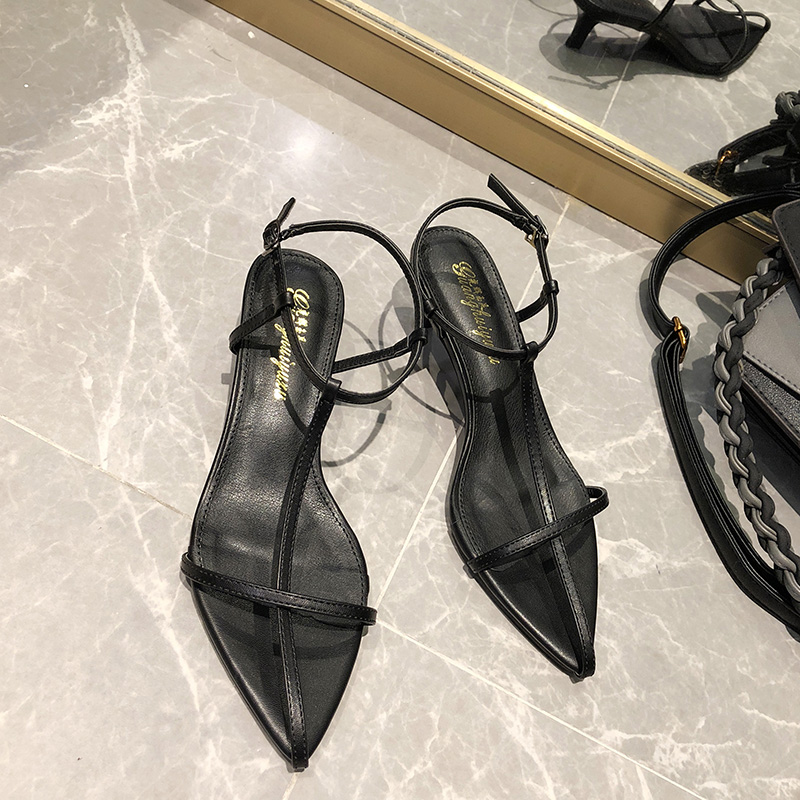 夏季凉鞋女仙女风2025年细带低跟高跟鞋细跟尖头网红百搭罗马女鞋