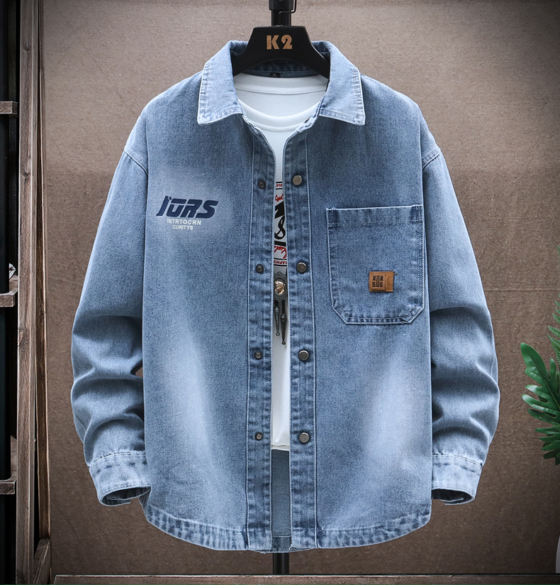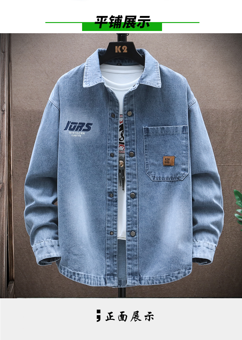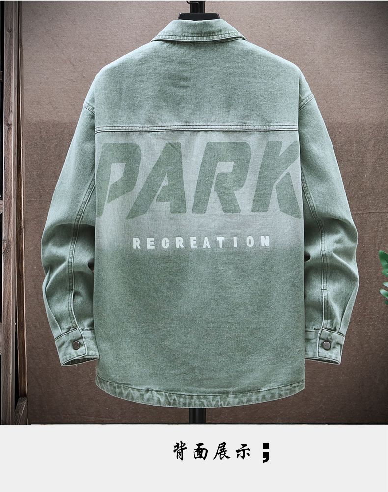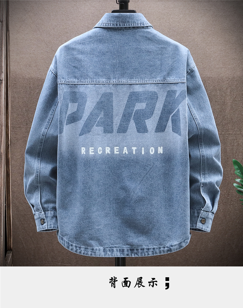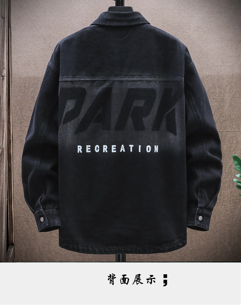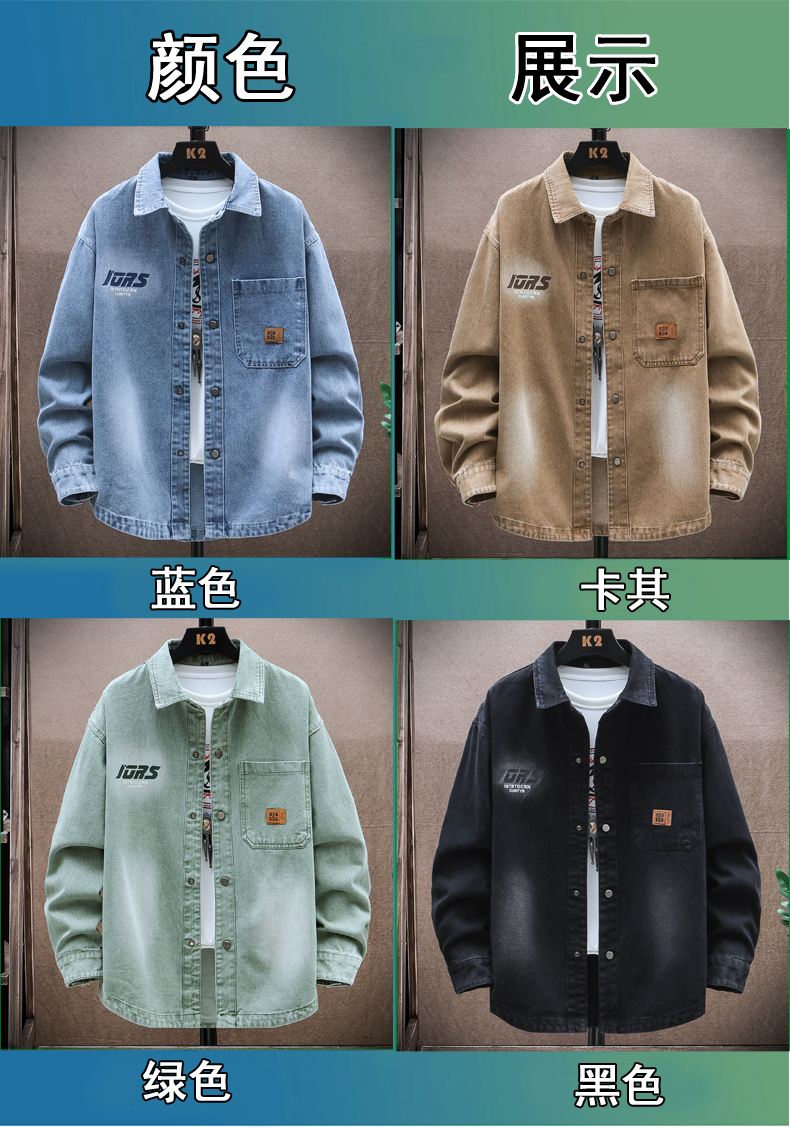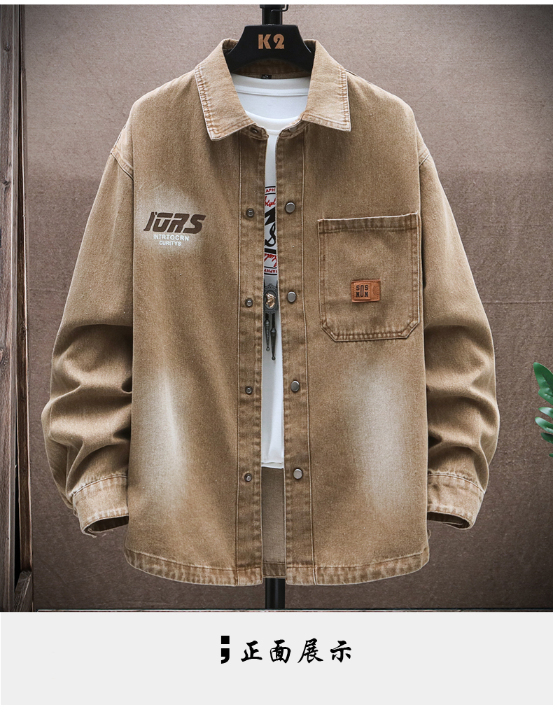 渐变牛仔外套男春秋季潮牌青少年学生宽松休闲翻领工装夹克上衣服