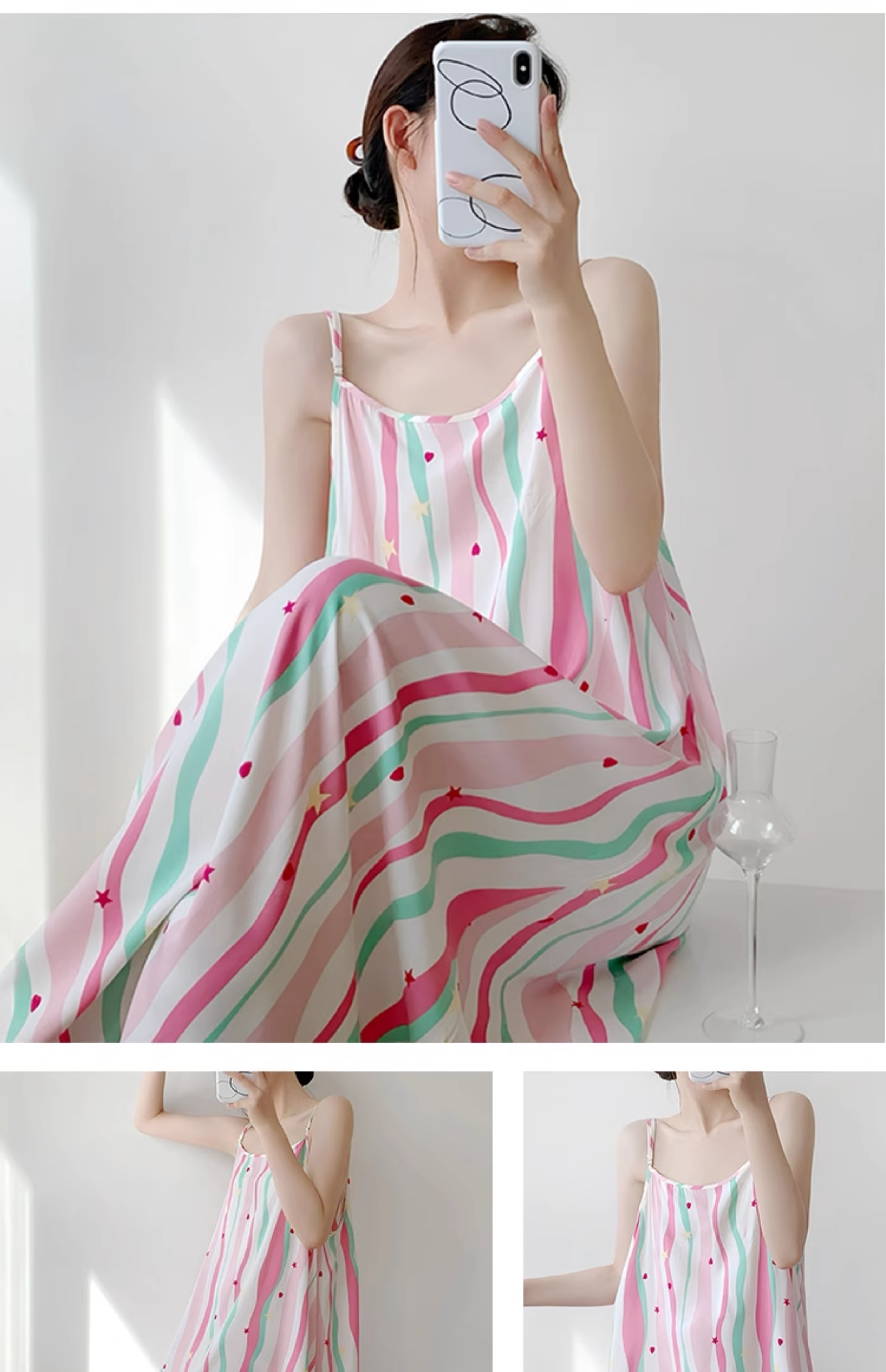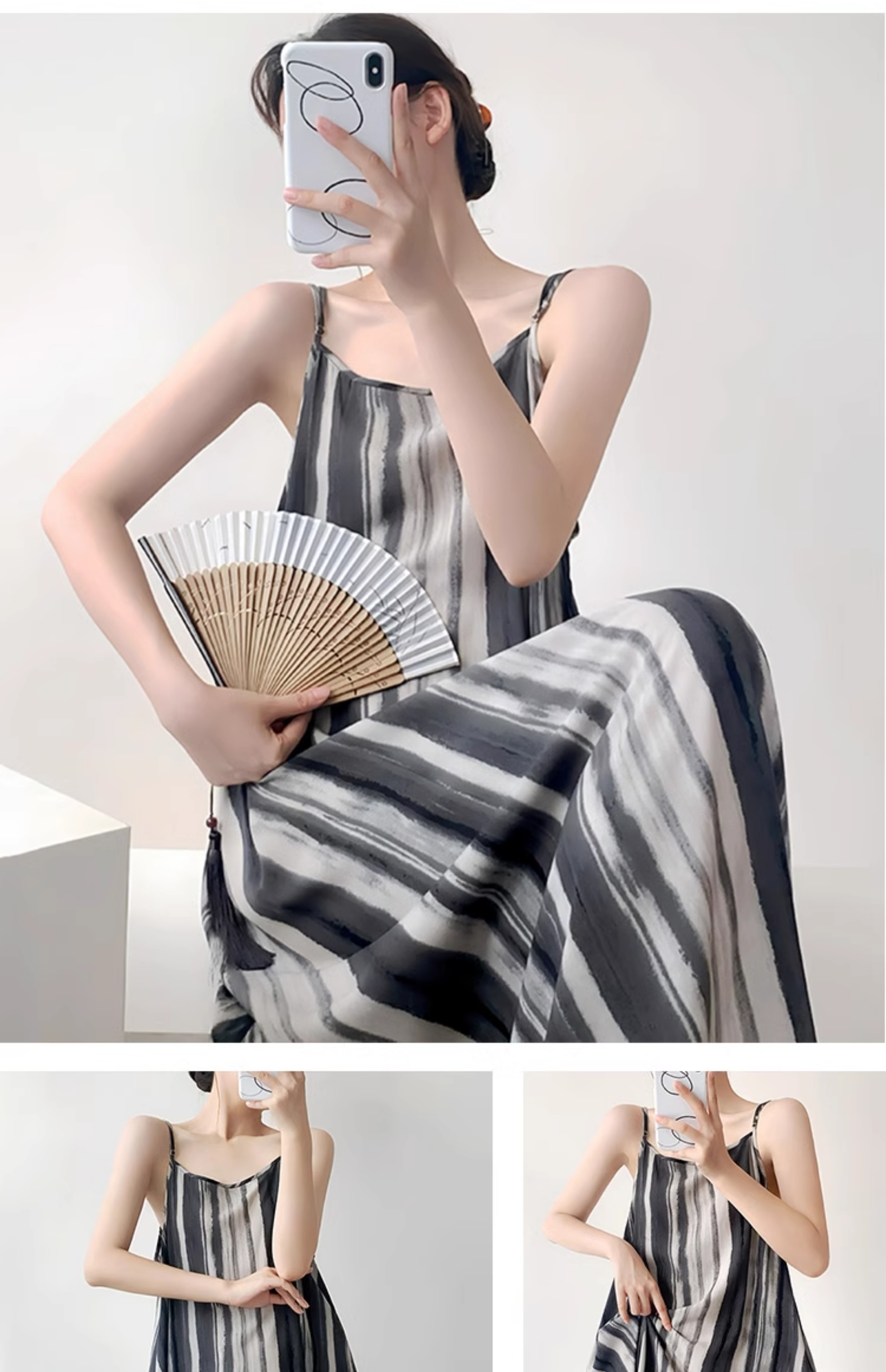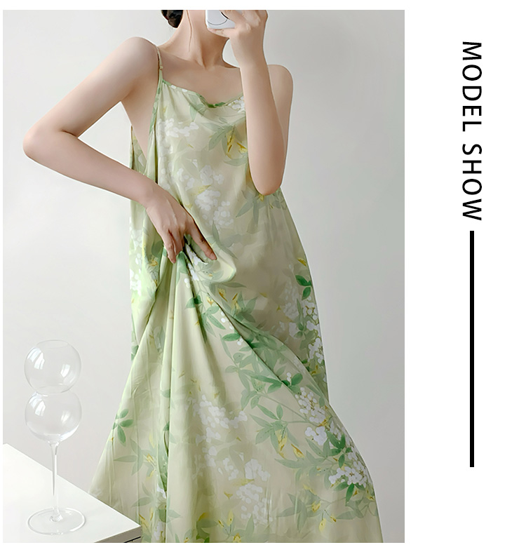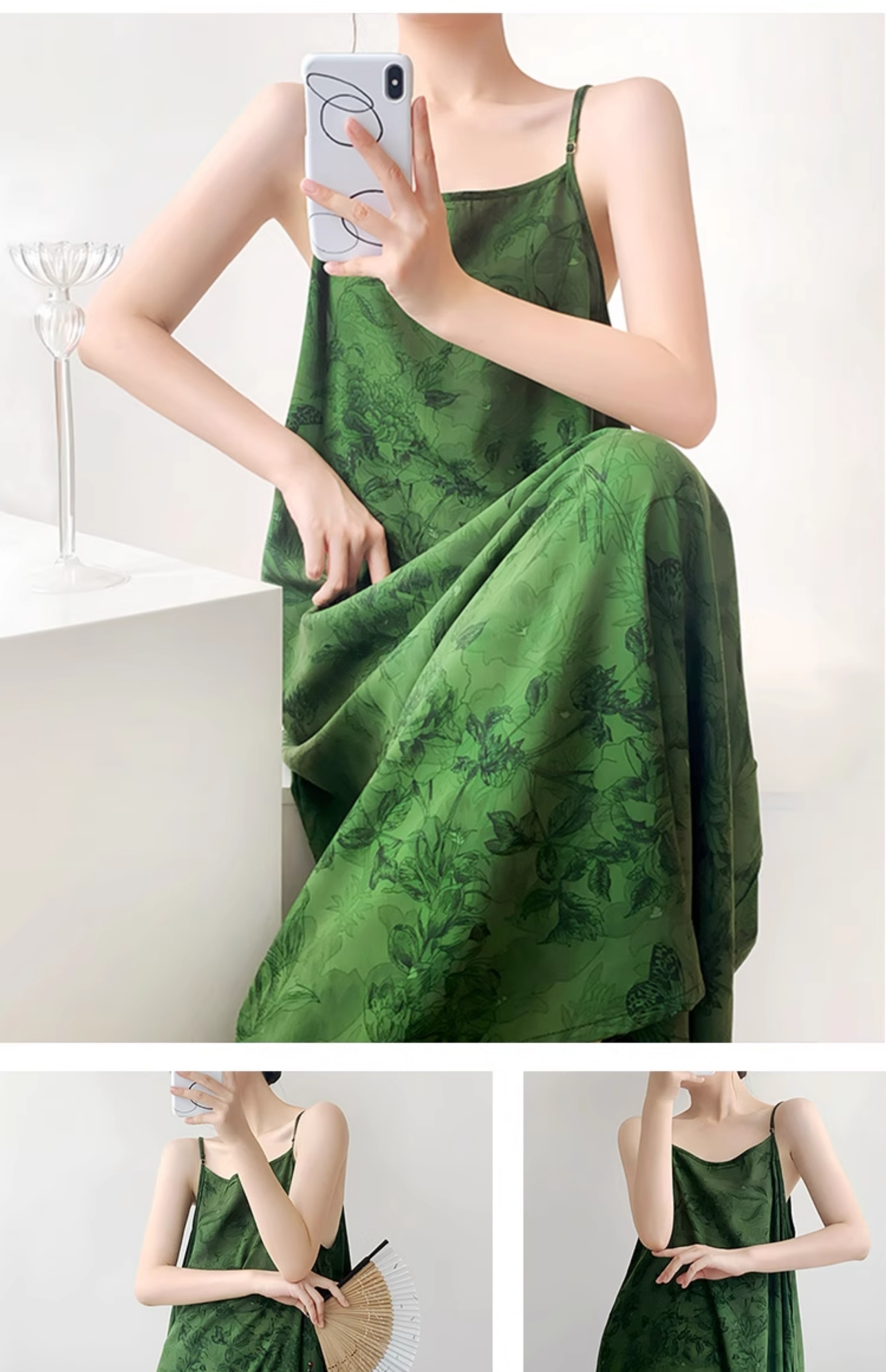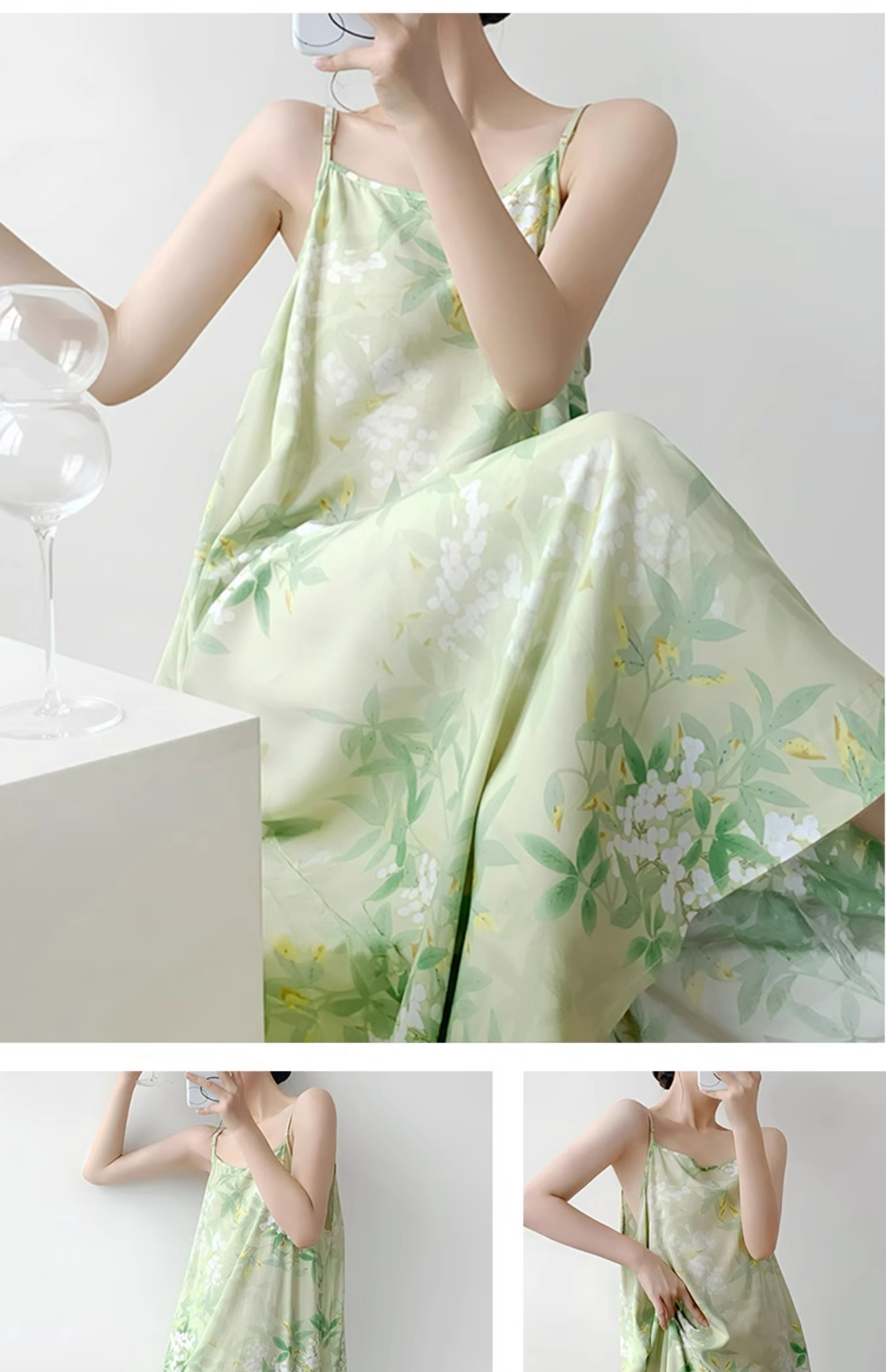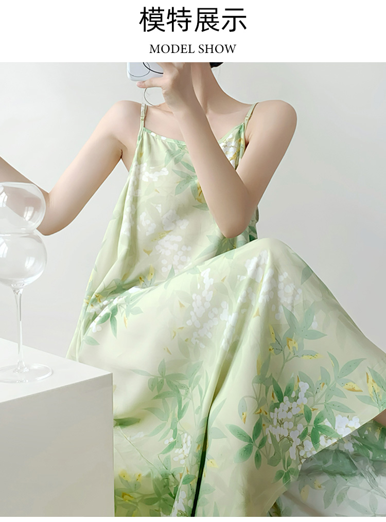 睡裙女夏清冷感禅意风仙女吊带拖地裙人造棉绸高级感连衣裙子显瘦