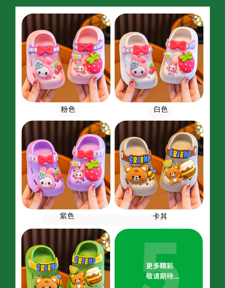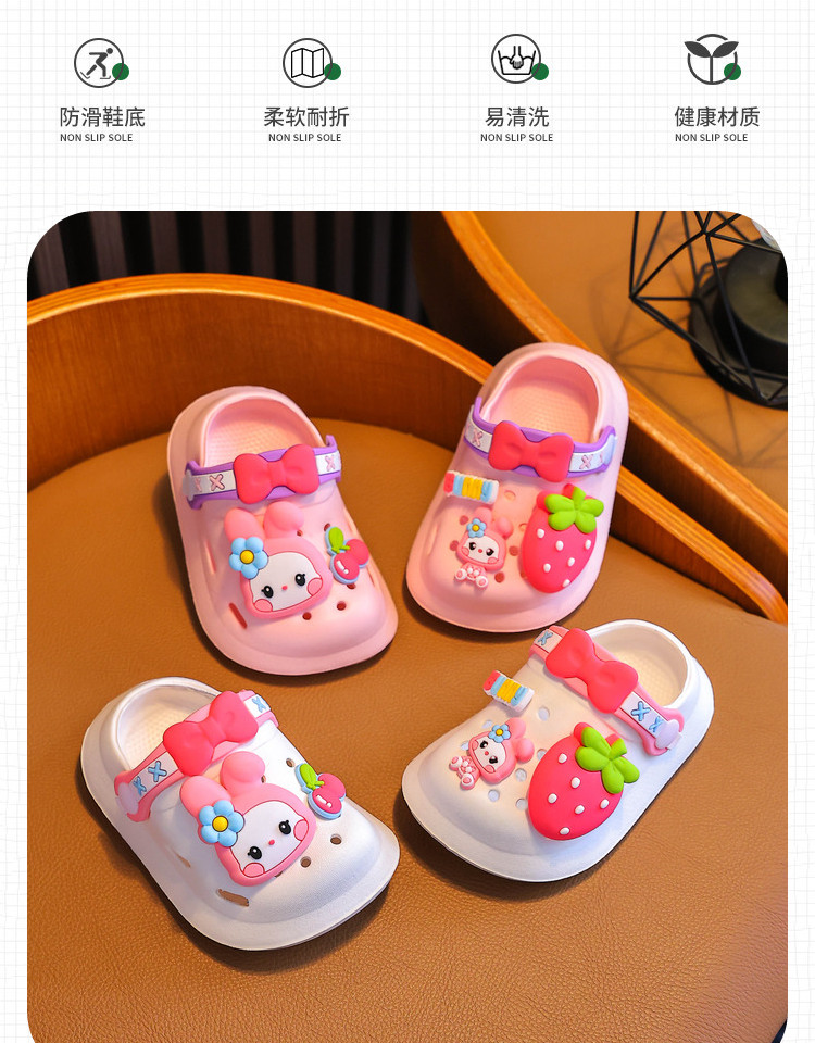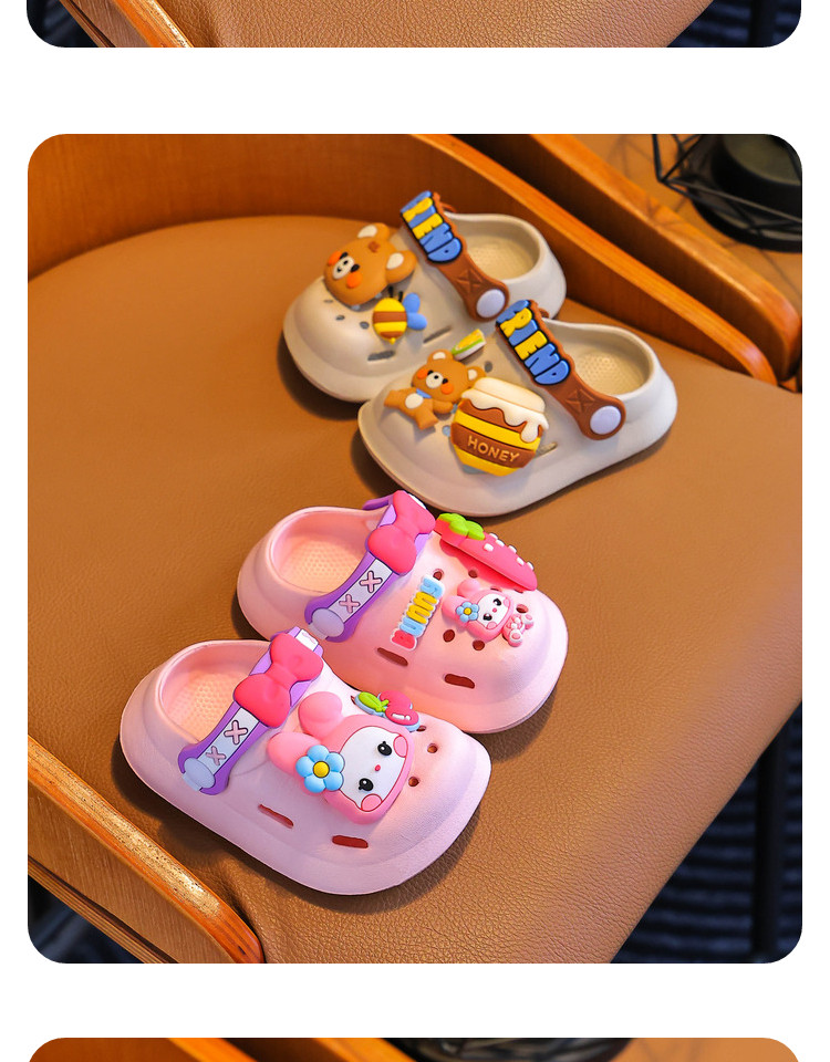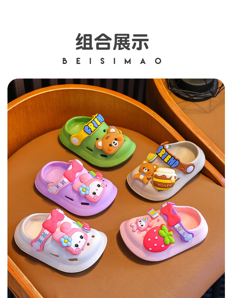 儿童洞洞鞋夏季男童卡通软底小熊包头防滑居家小孩洗澡宝宝凉拖鞋