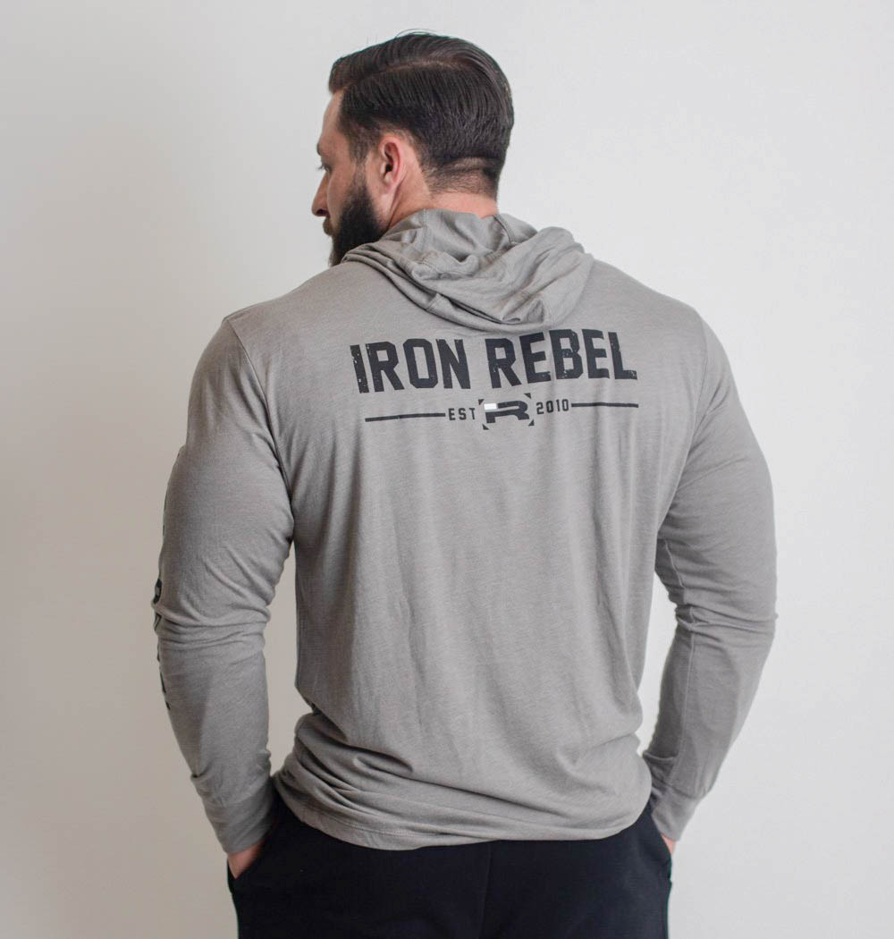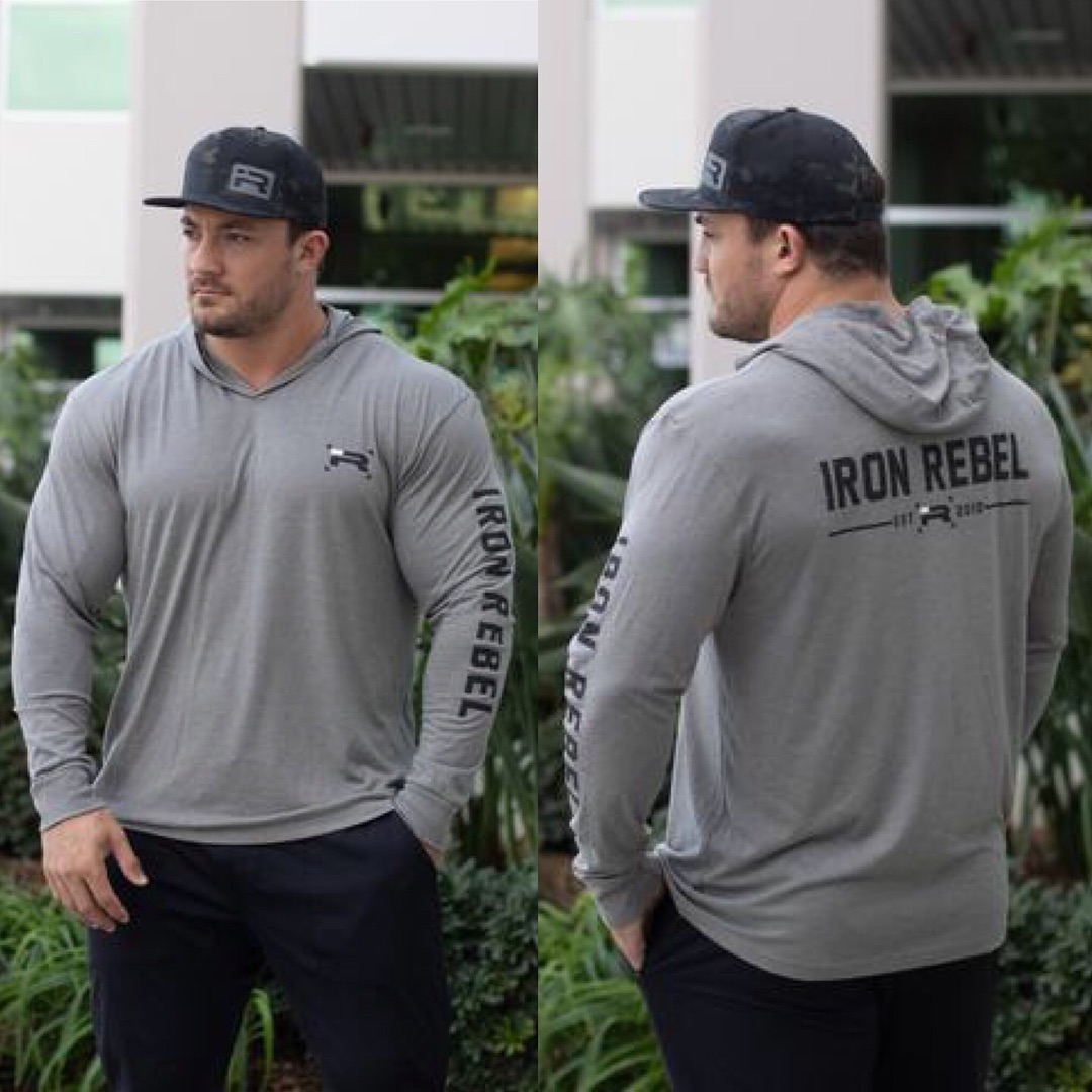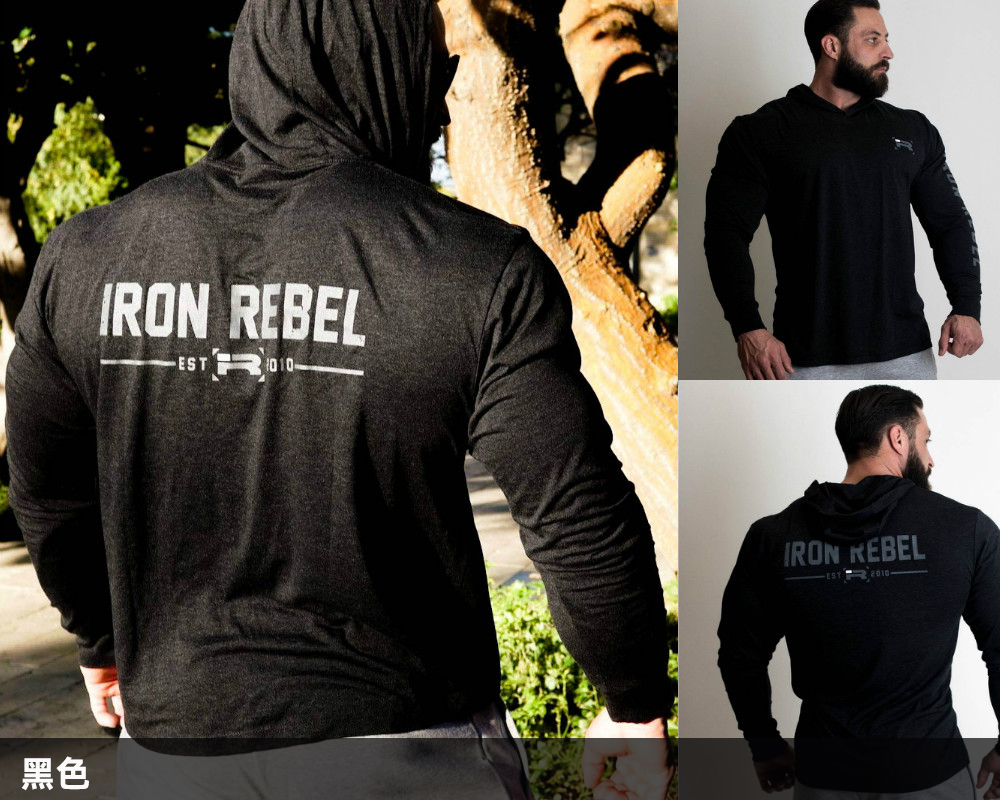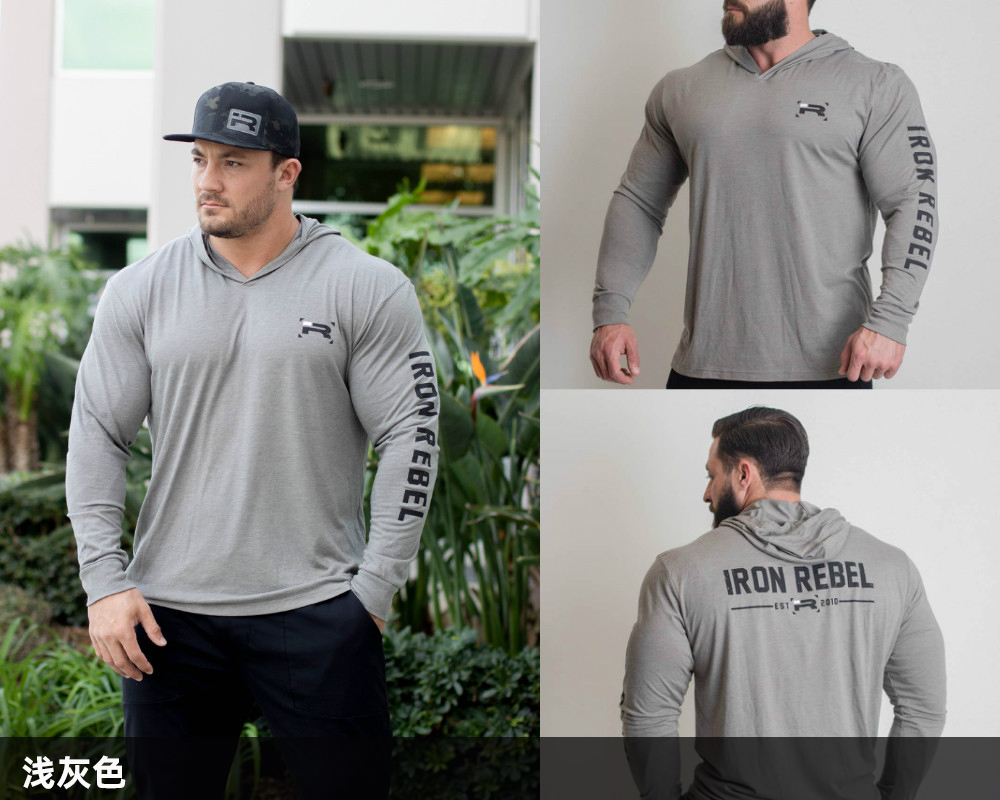 IR连帽训练套头衫男健身大码宽松薄款健美力量举重弹力棉长袖卫衣