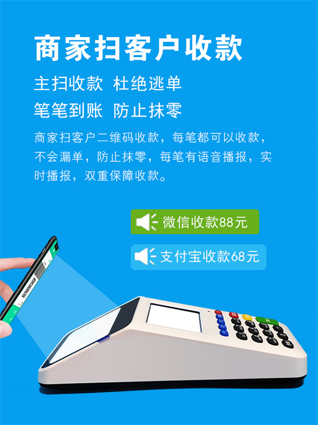 新款收款机微信支付宝收款扫码支付盒子扫码收钱器手持收钱扫码机收银扫码器收款盒子收银机收付款扫码一体机