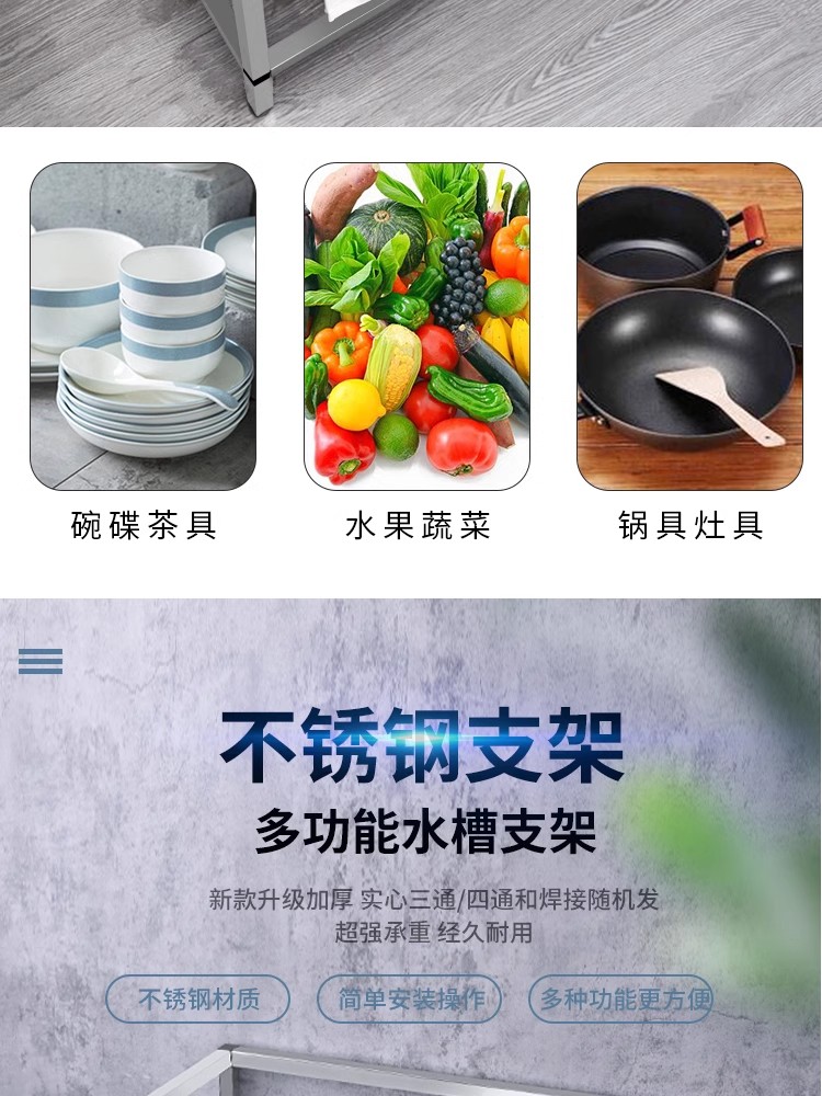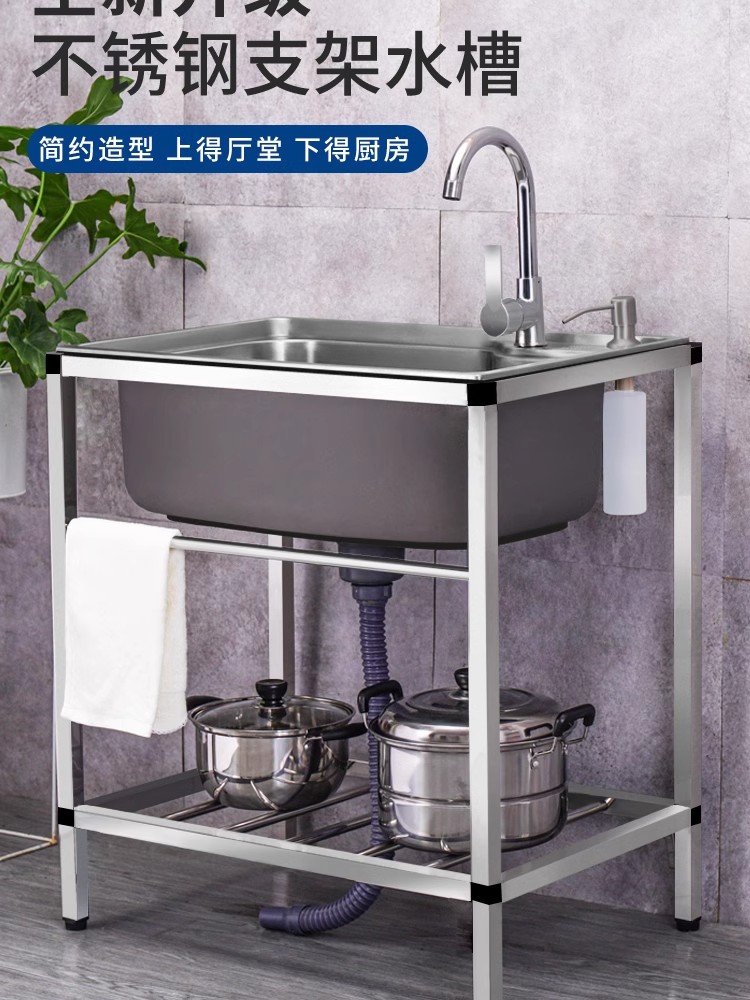 蒲梵304不锈钢洗菜盆大单槽家用厨房水槽洗碗槽一体洗手盆水池