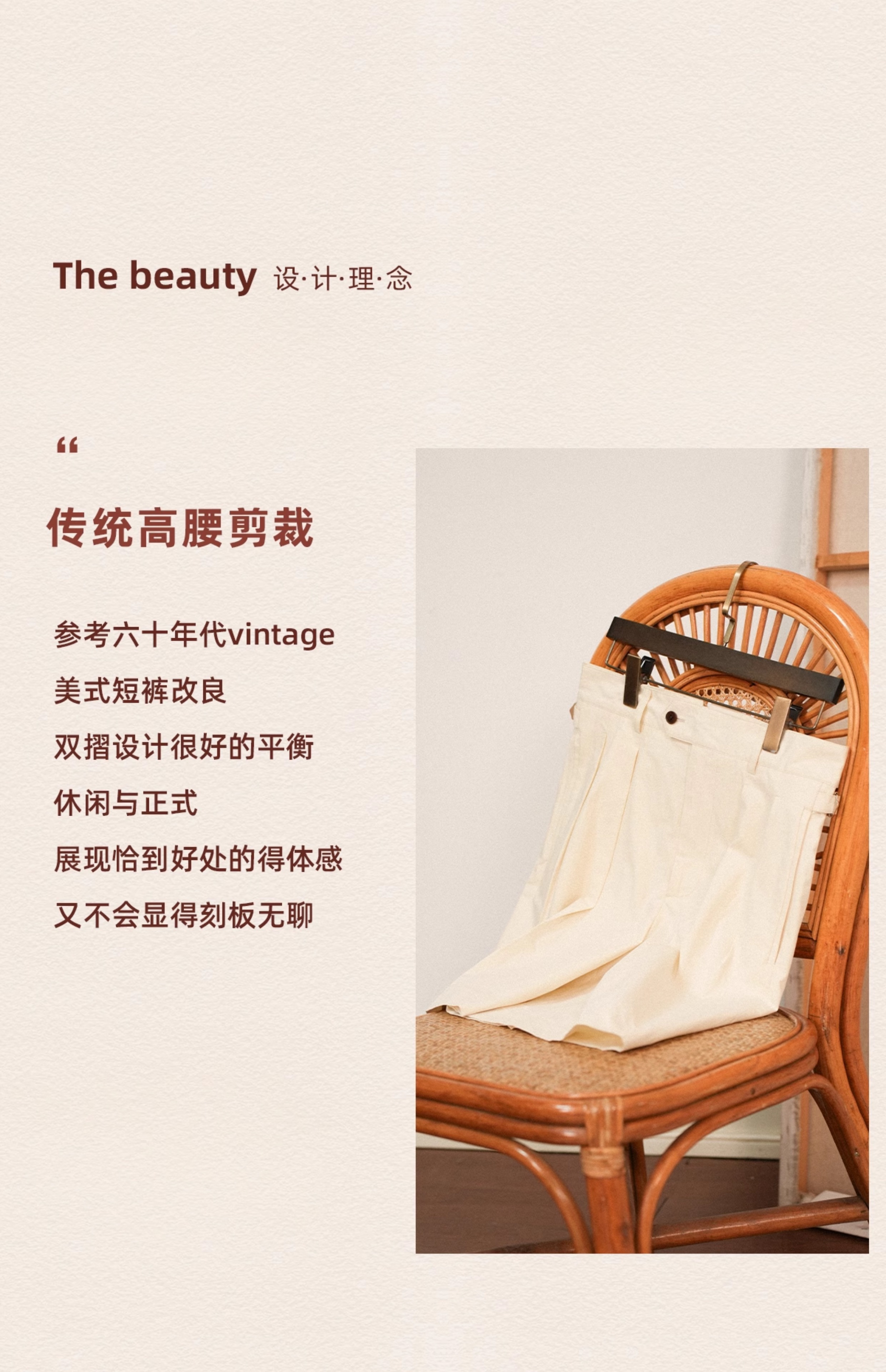 CULTUM高腰双褶复古百慕大短裤男休闲ivy风五分裤子