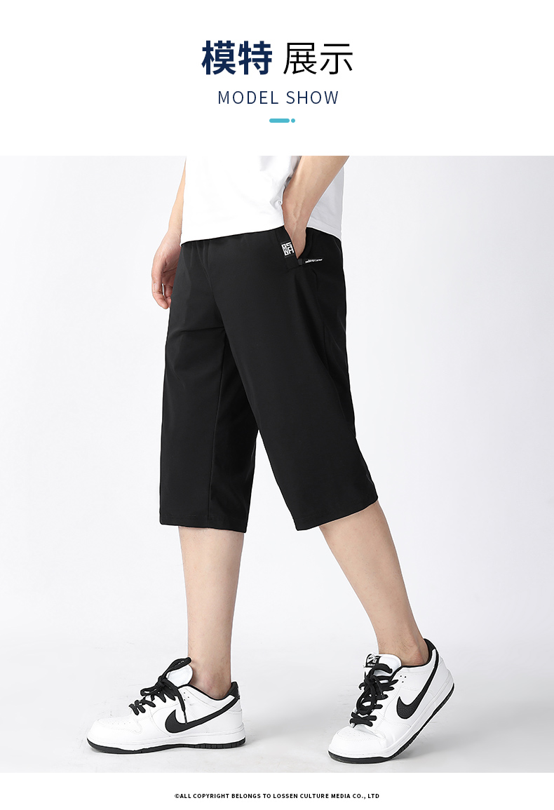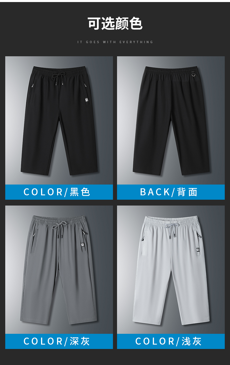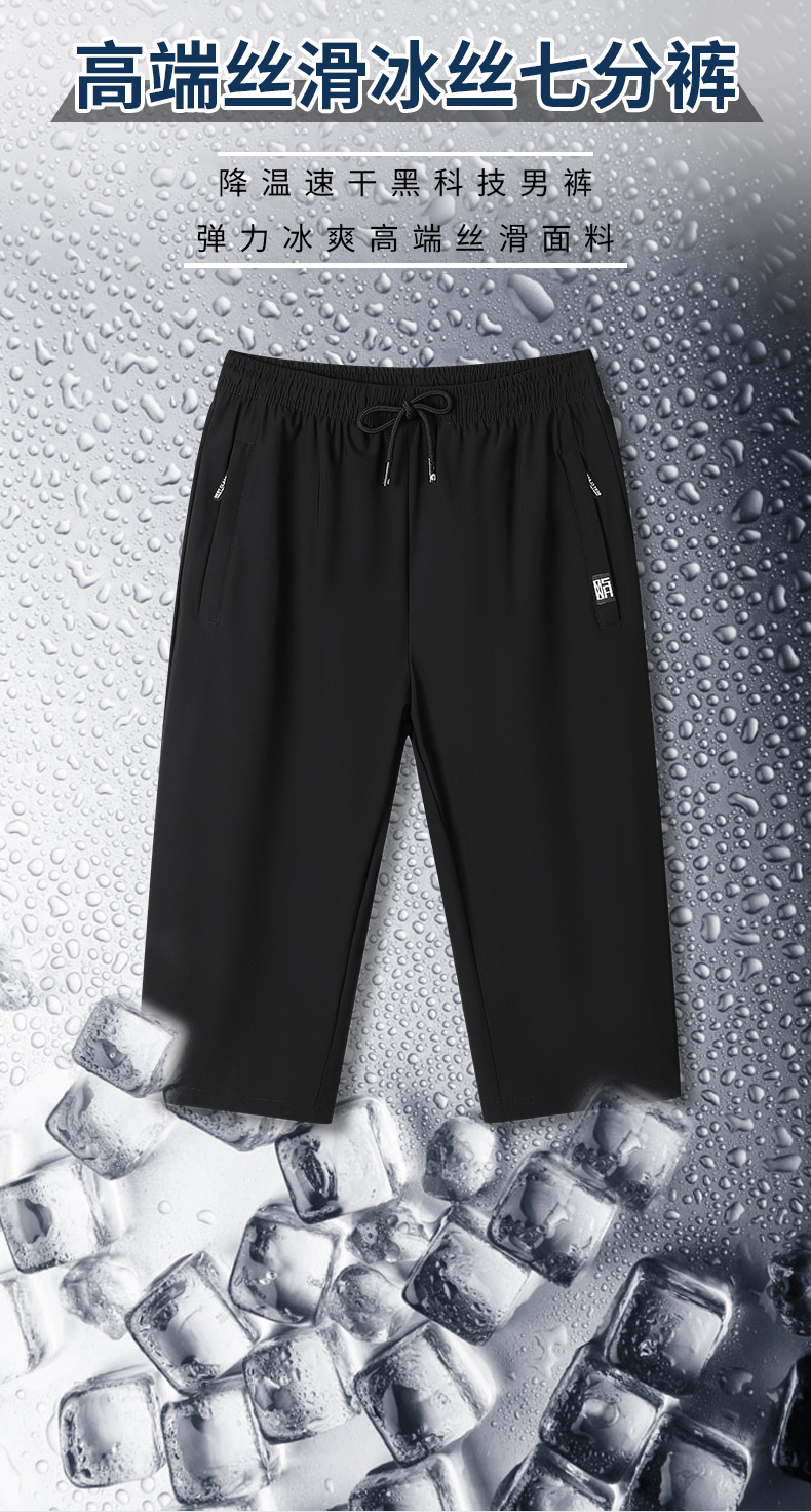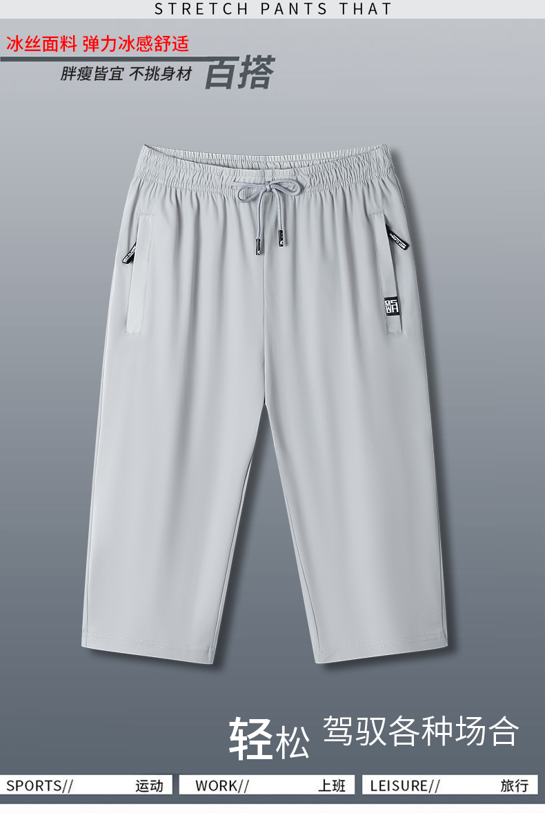运动七分裤男夏季薄款透气休闲宽松大码中裤男士高弹冰丝速干短裤