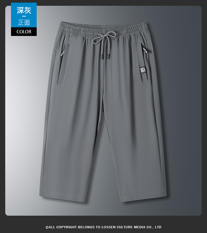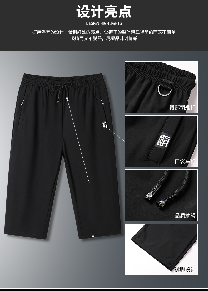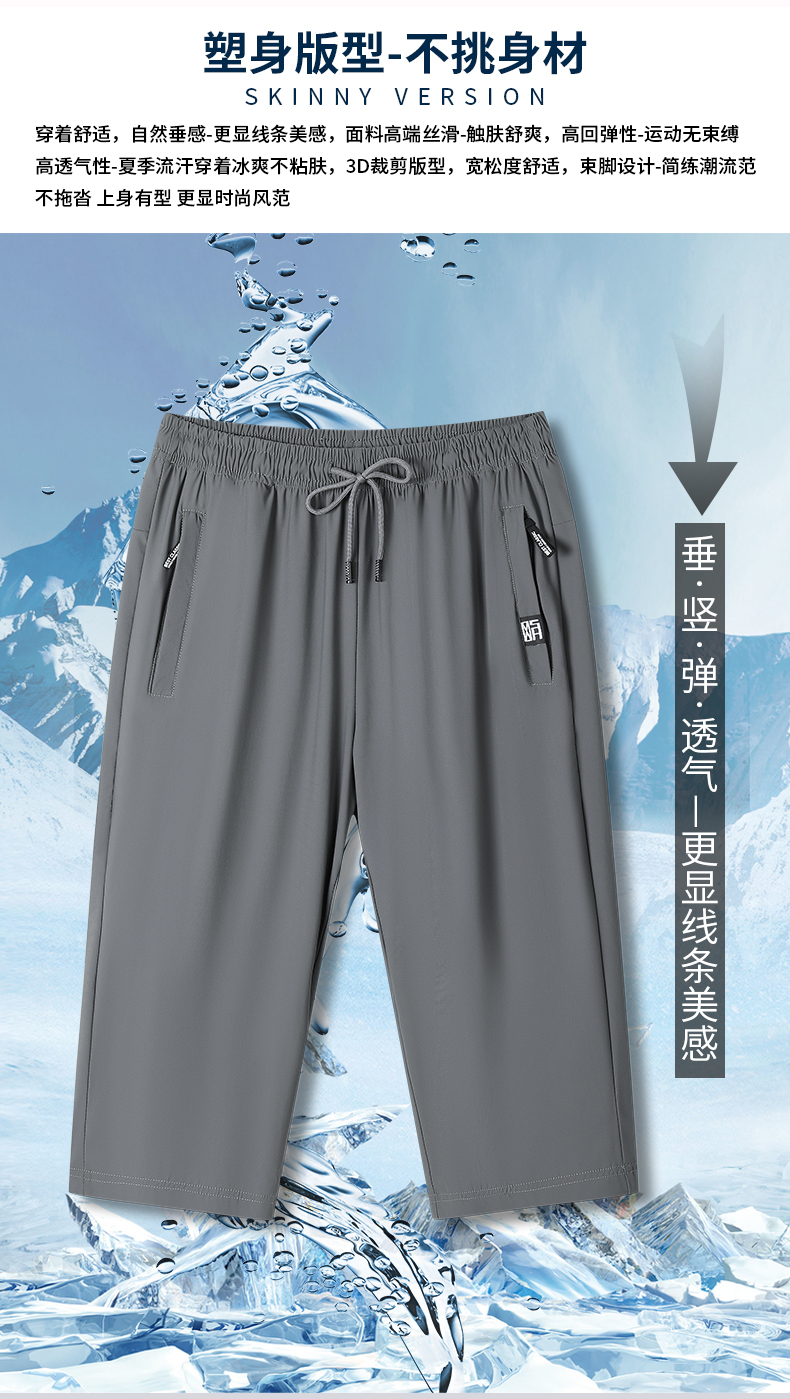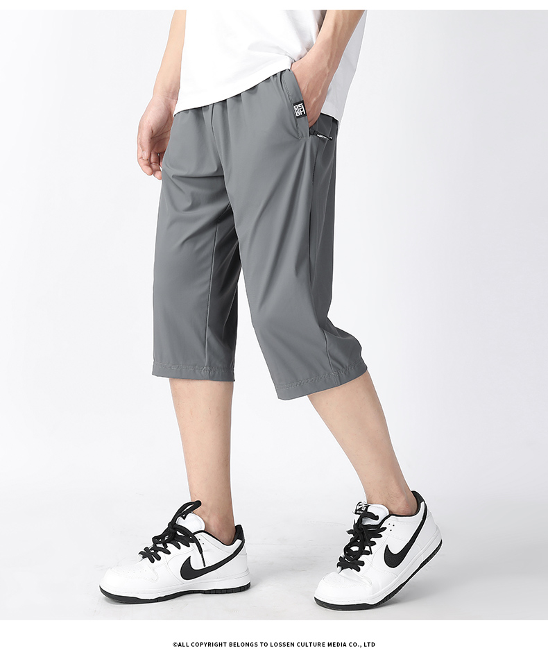 运动七分裤男夏季薄款透气休闲宽松大码中裤男士高弹冰丝速干短裤