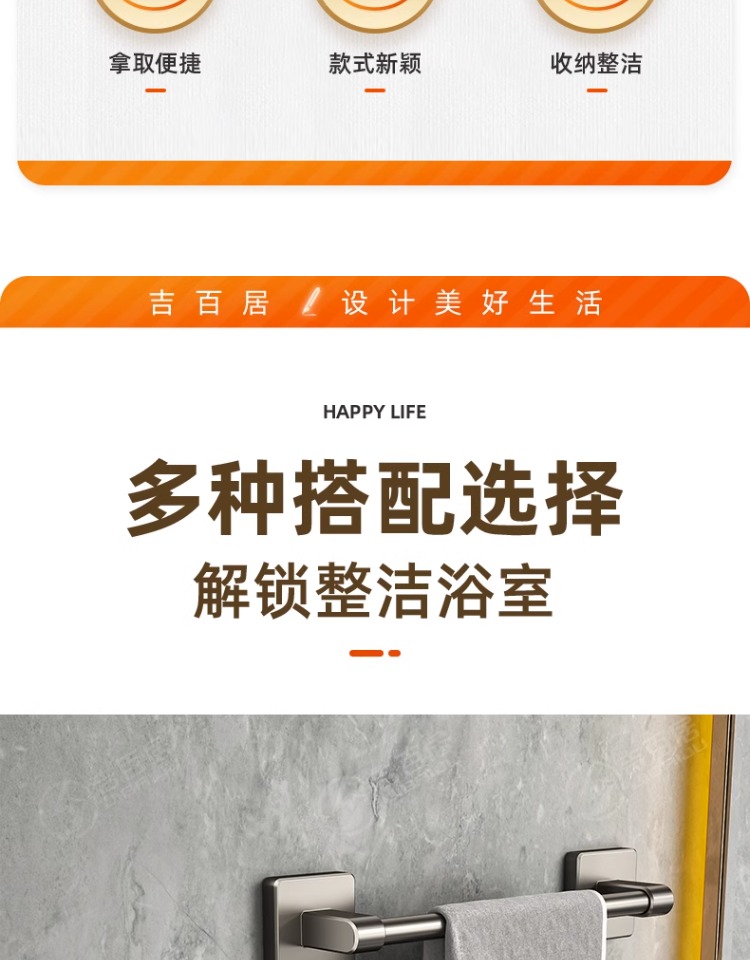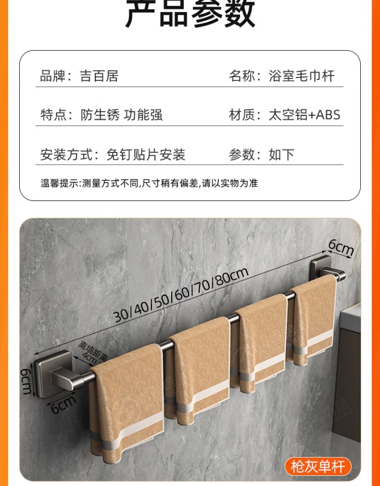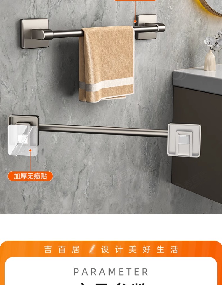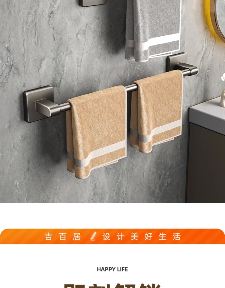 毛巾架子卫生间免打孔壁挂置物架浴室毛巾单杆厕所洗手间收纳挂架