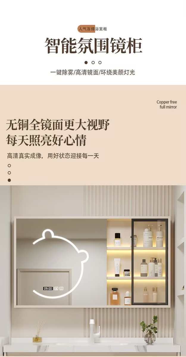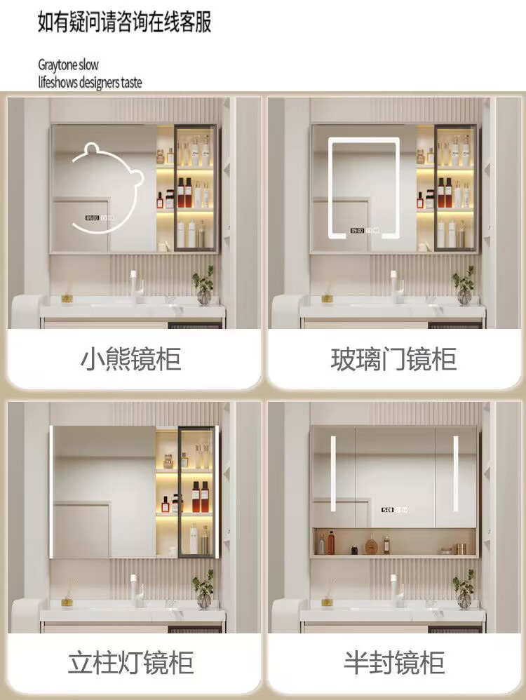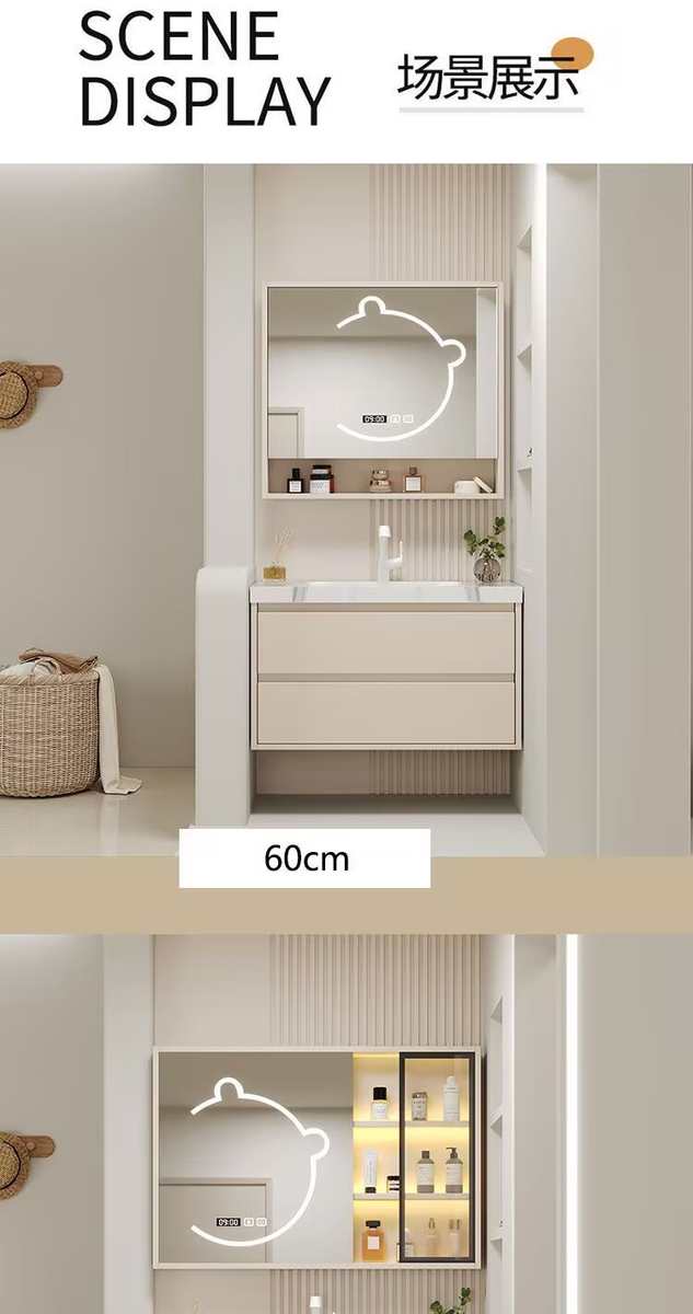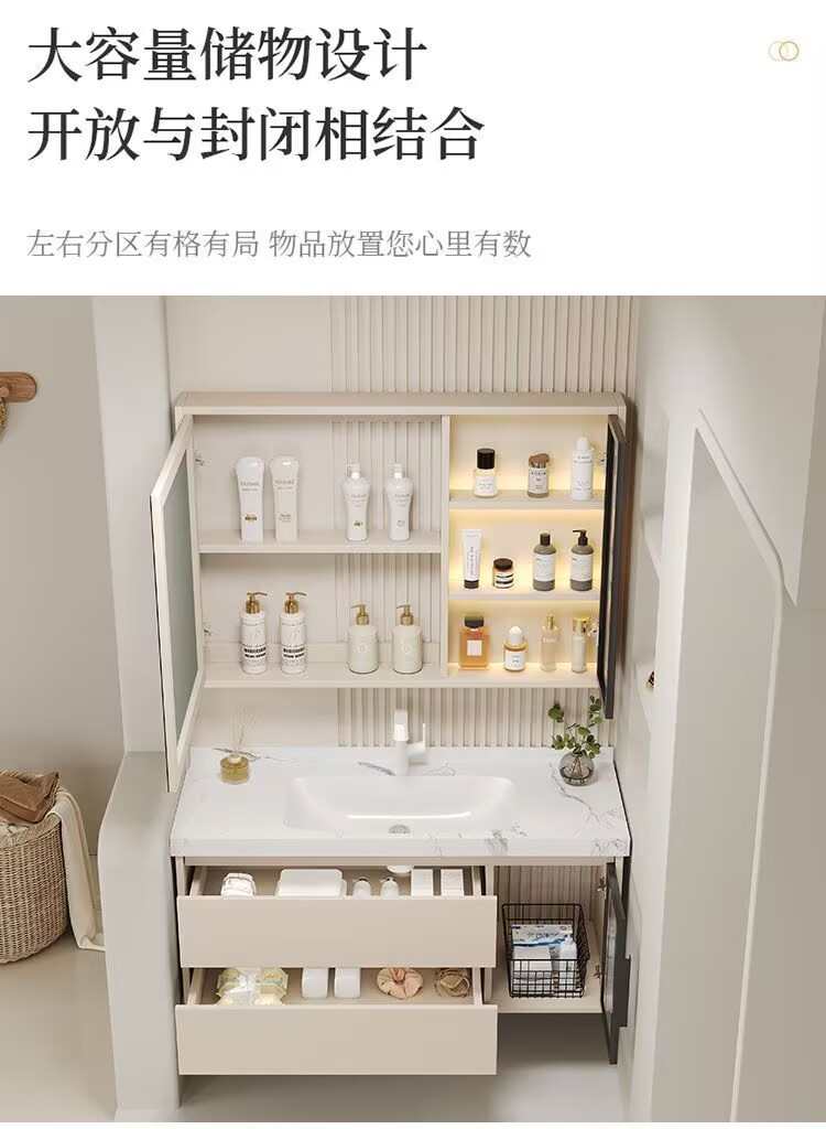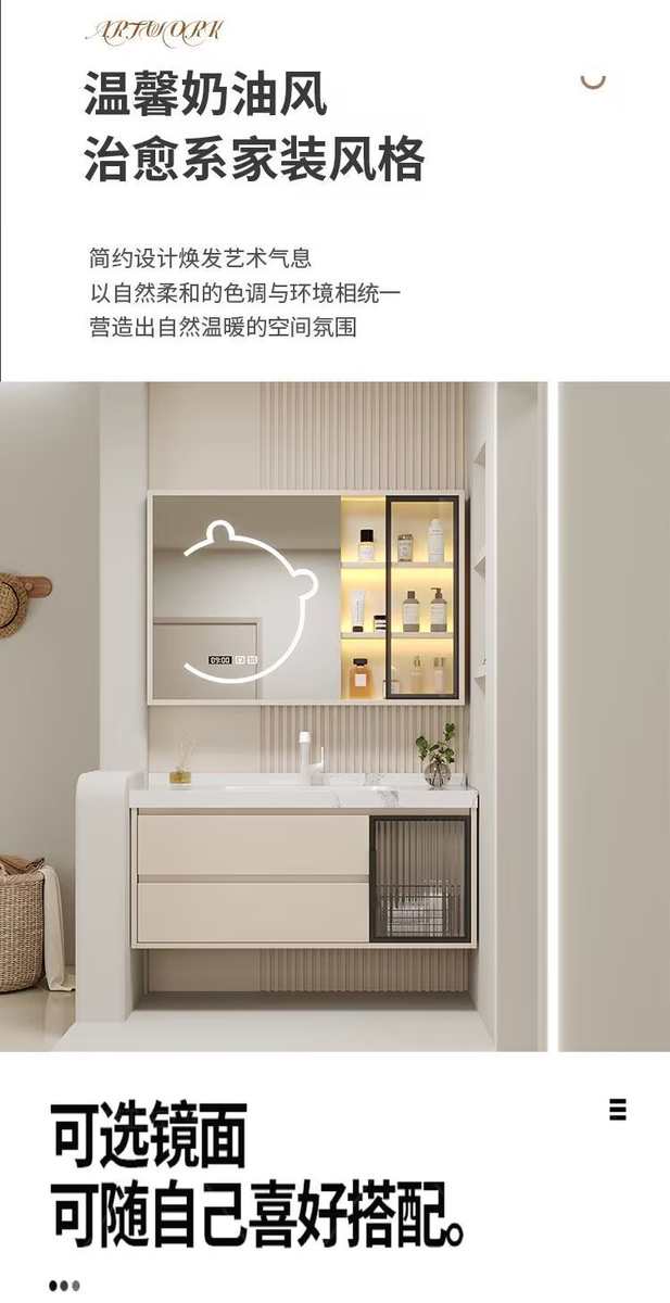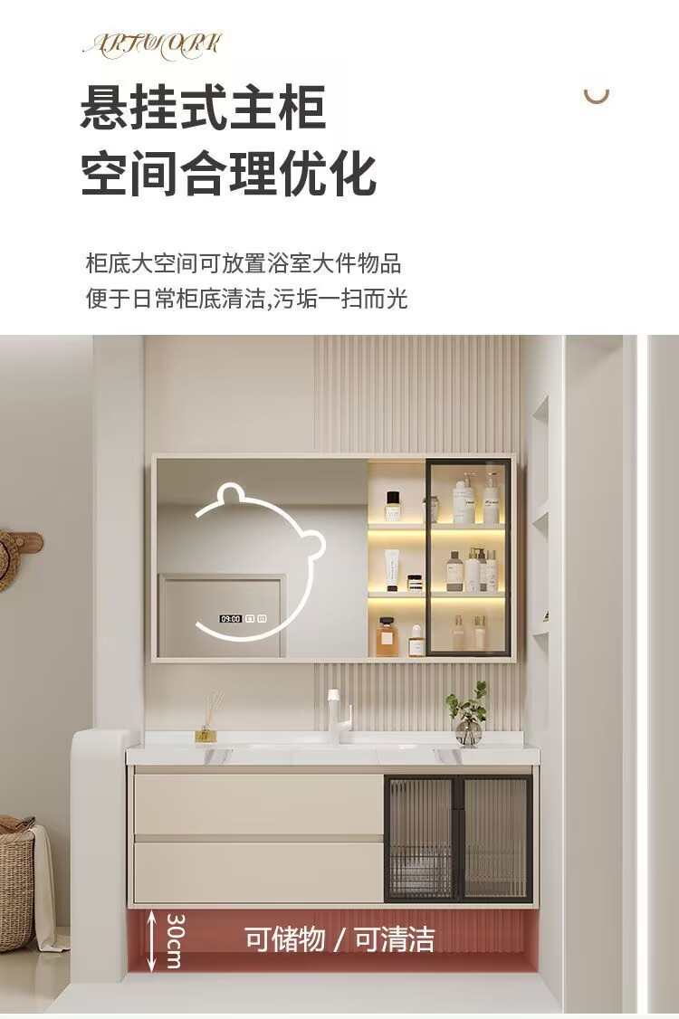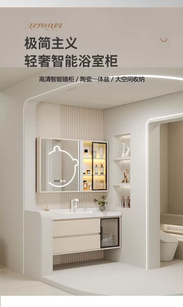 JONIMW实木浴室柜45cm宽智能岩板陶瓷无缝盆洗手洗脸盆柜组合洗漱