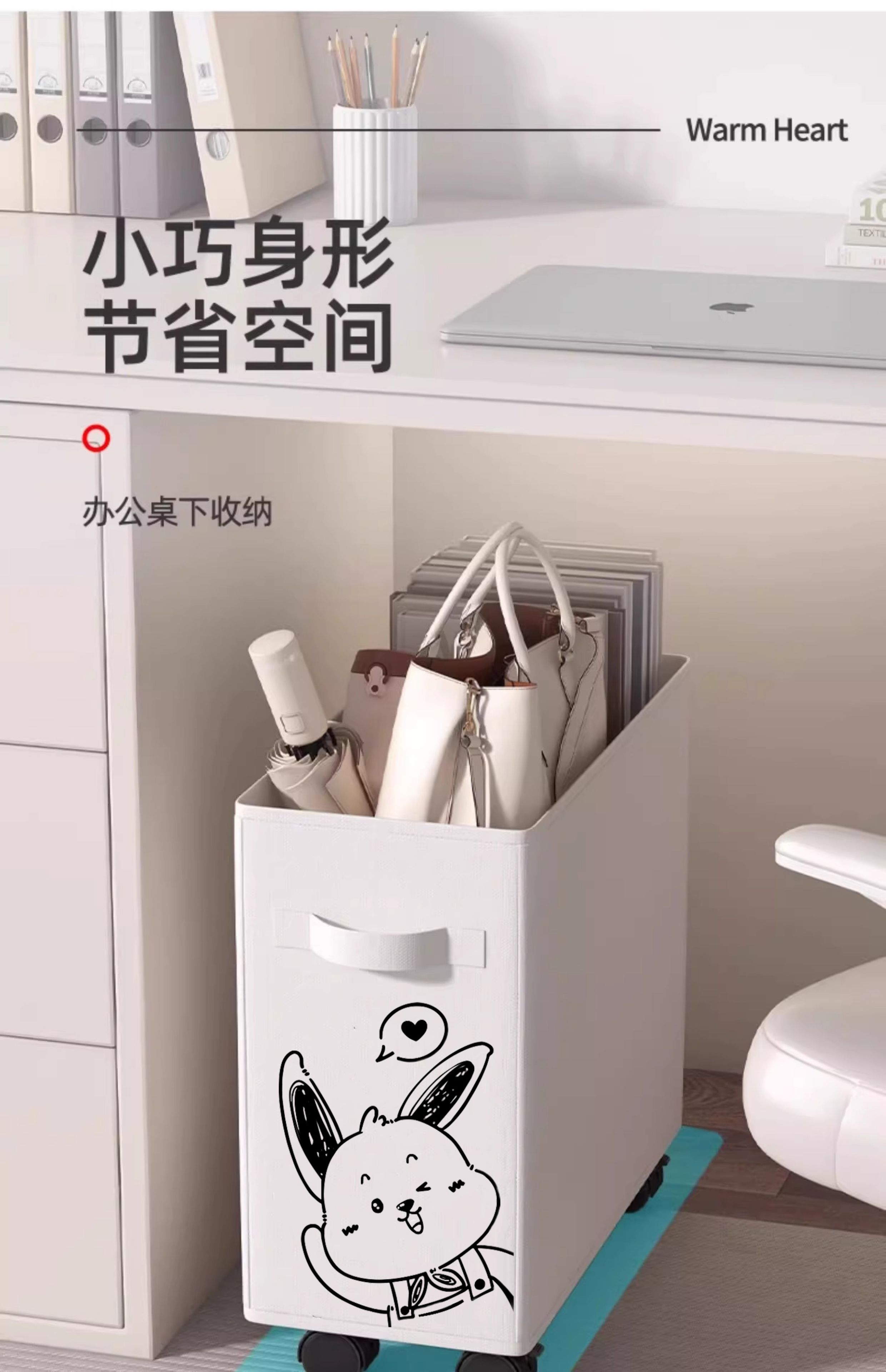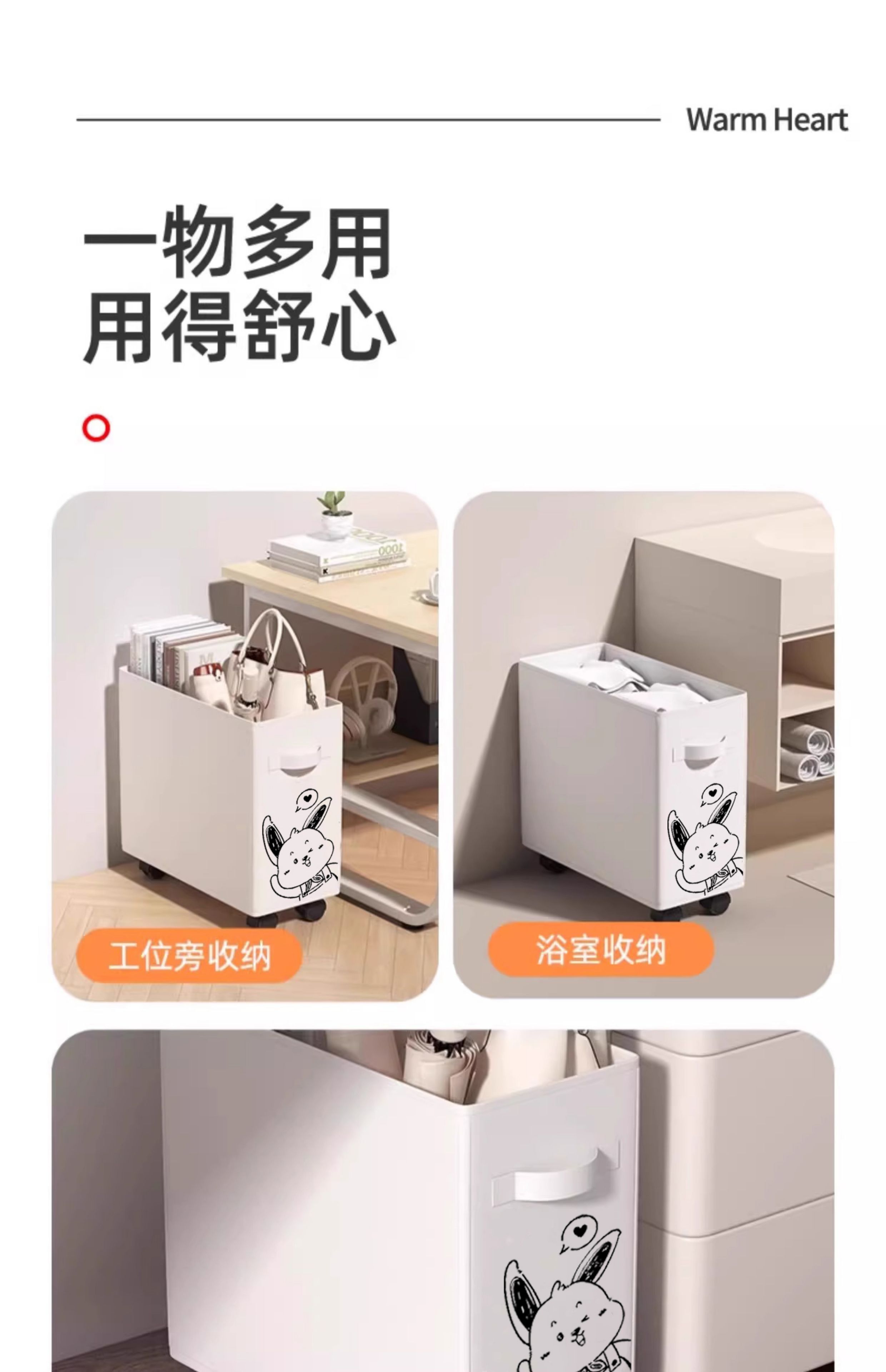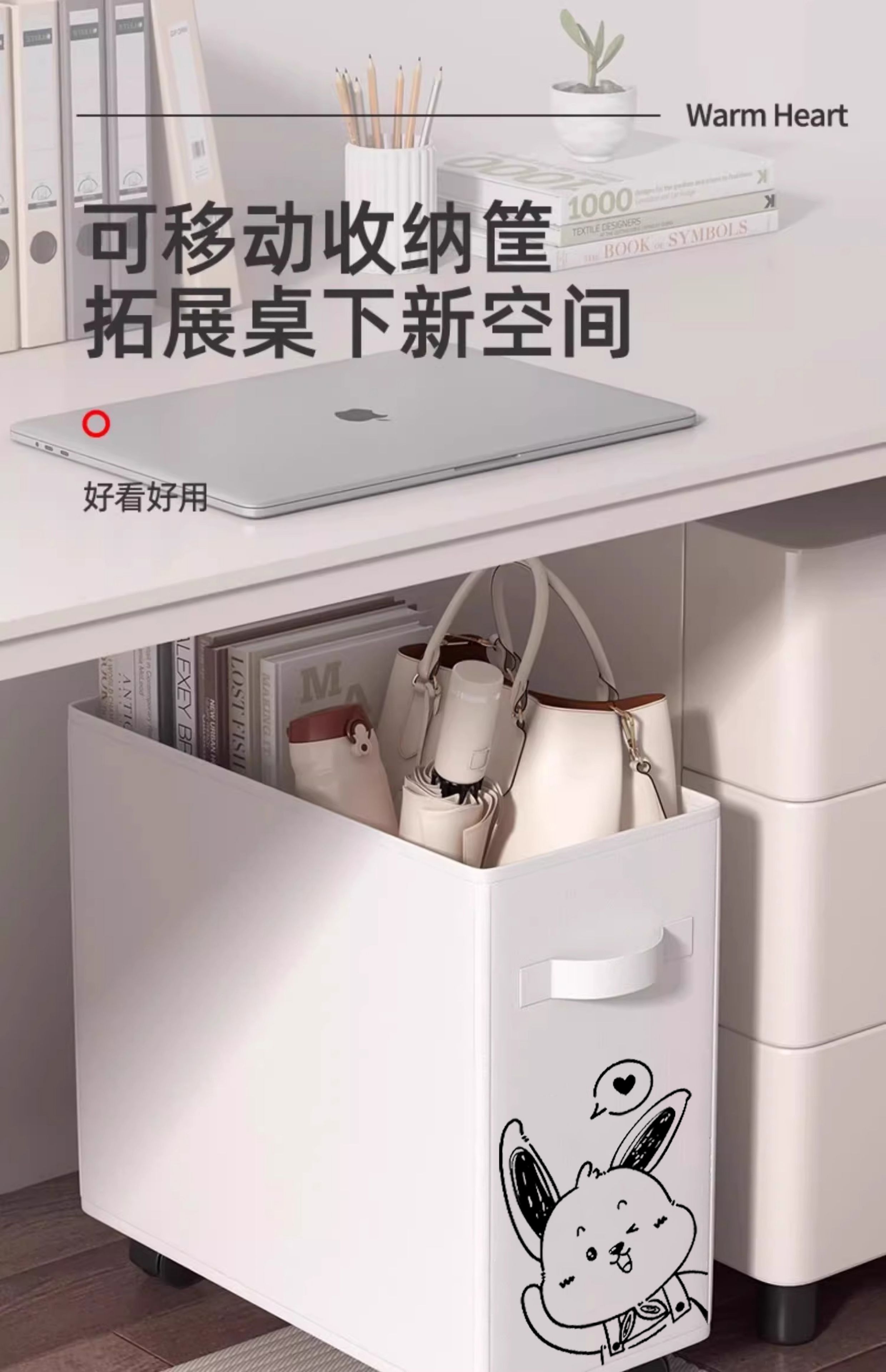 办公室桌下置物架工位改造好物神器桌底面可移动带轮小推车收纳筐