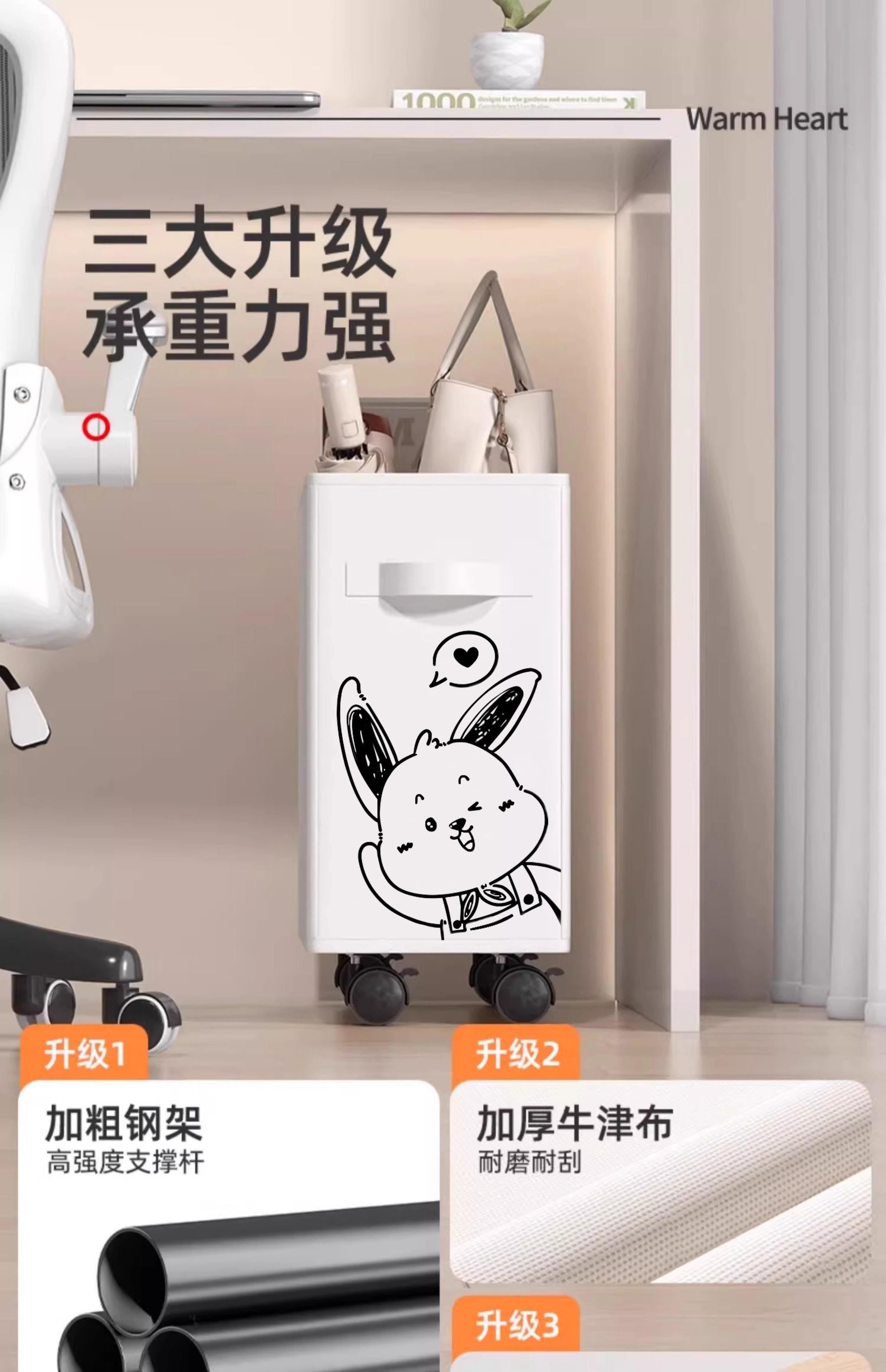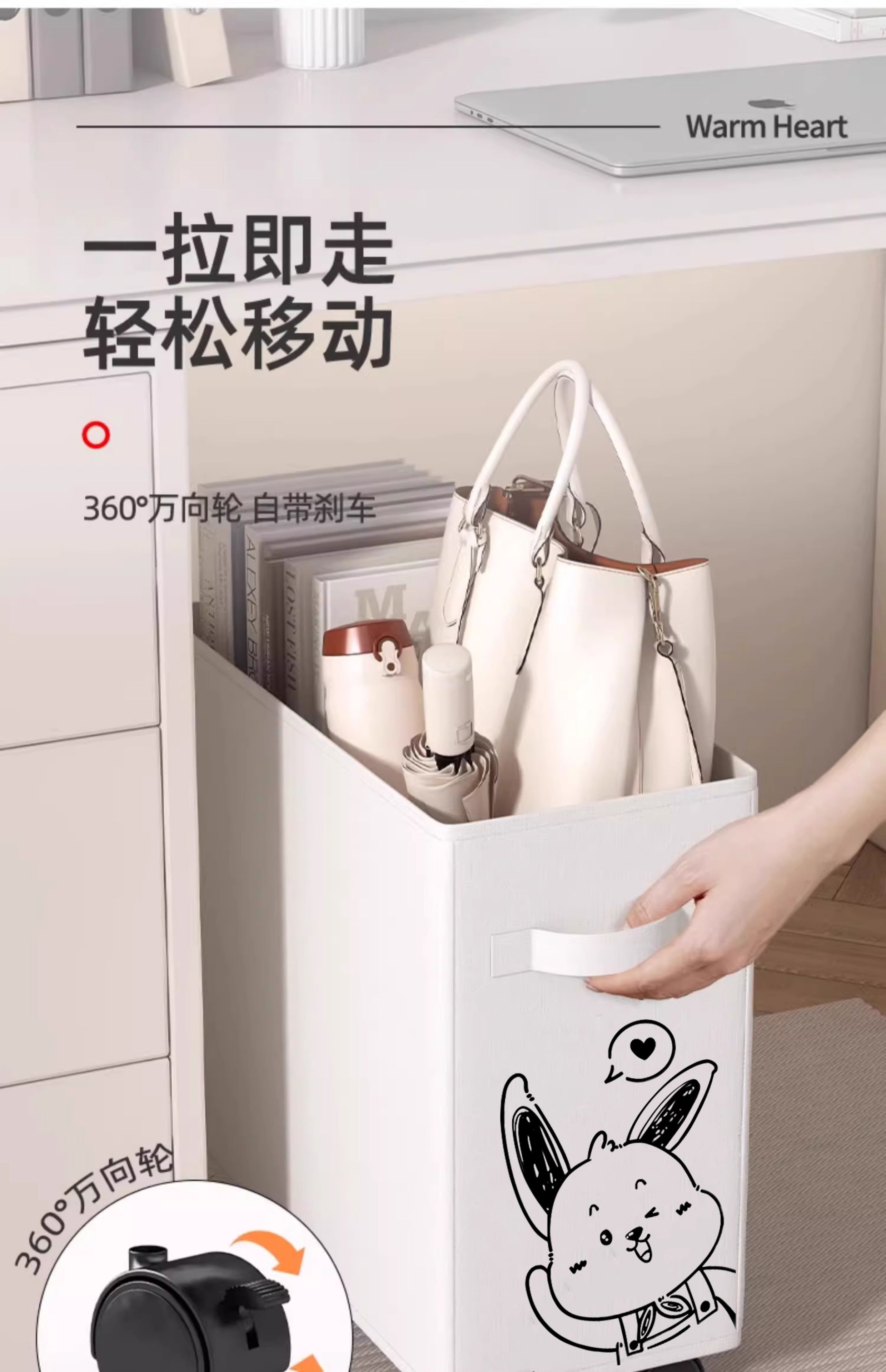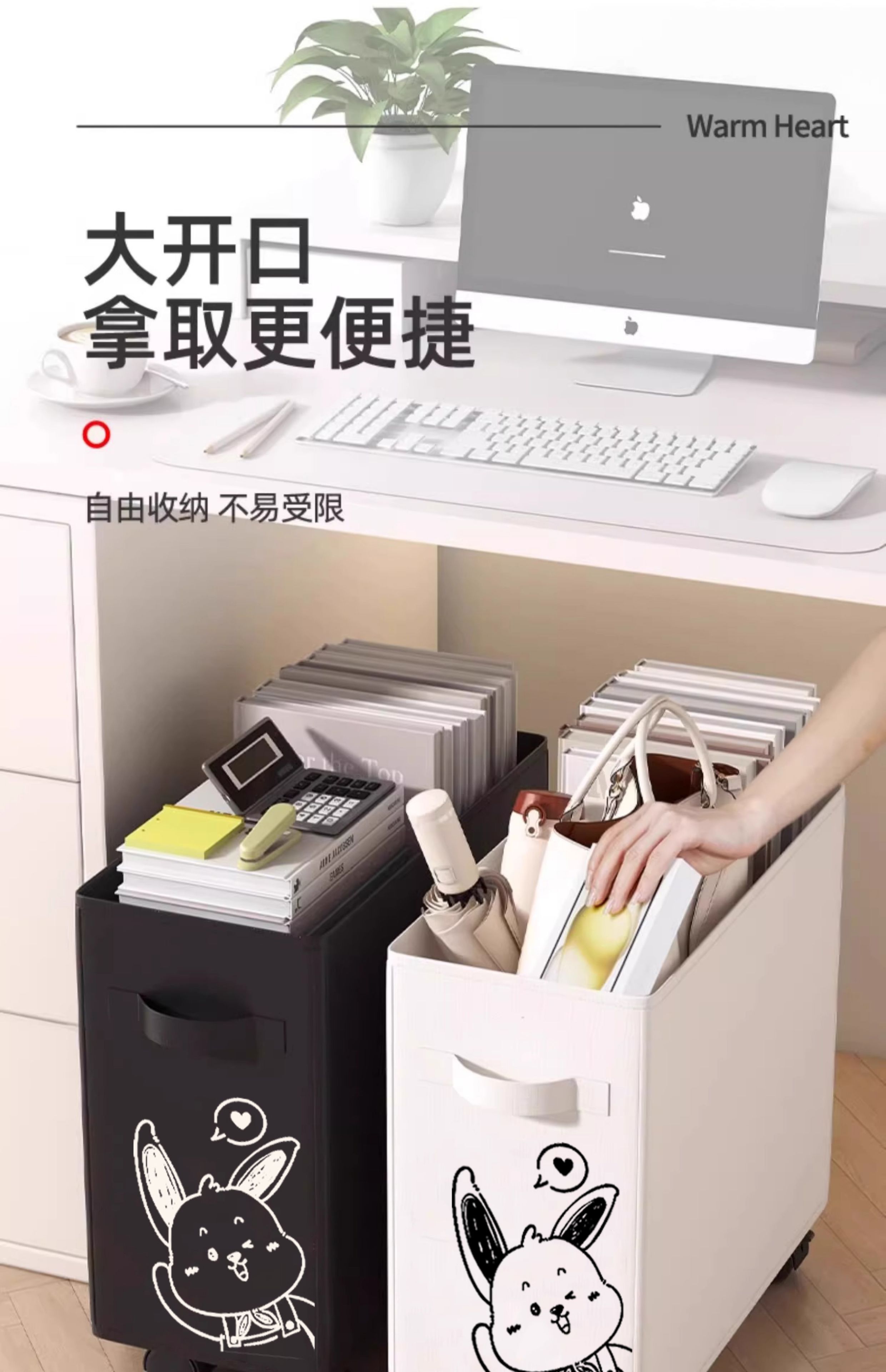 办公室桌下置物架工位改造好物神器桌底面可移动带轮小推车收纳筐