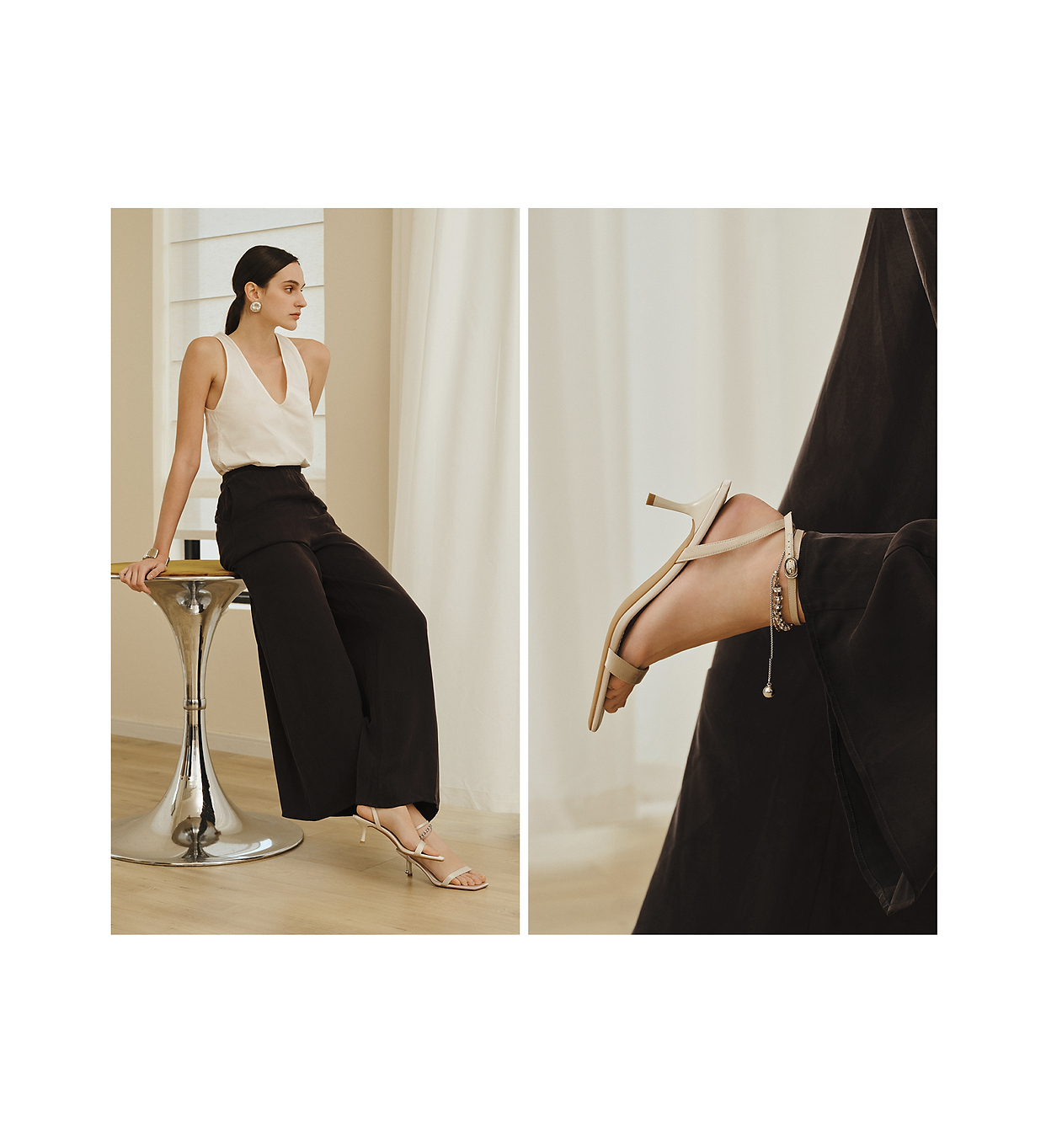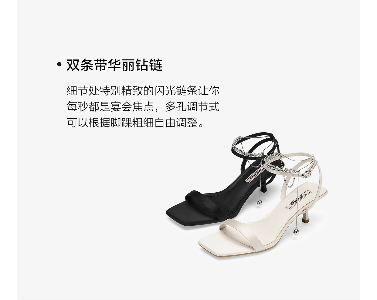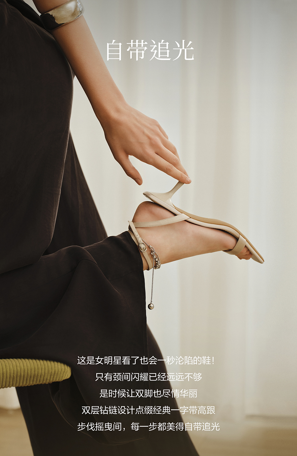 73hours女鞋自带追光2025夏季新款一字带细跟高跟鞋不累脚凉鞋