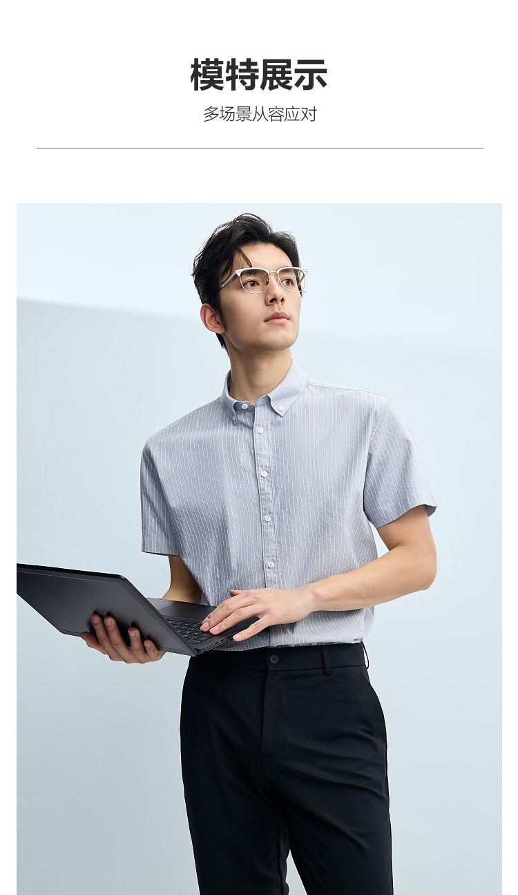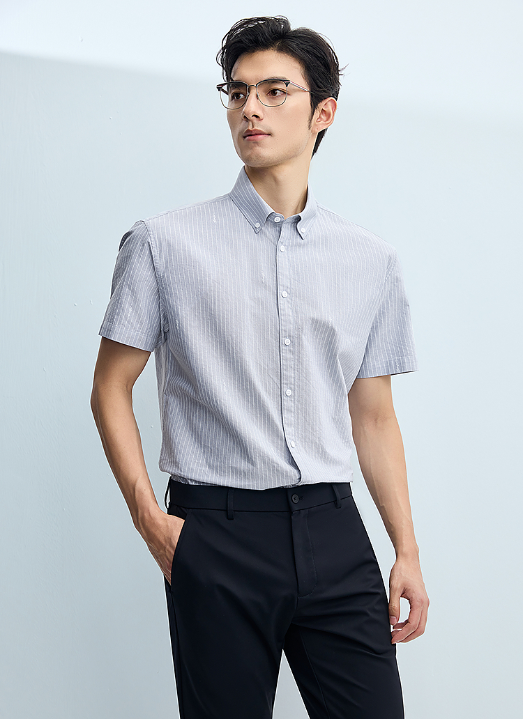 HLA/海澜之家纯棉休闲短袖衬衫25夏新时尚上衣男装