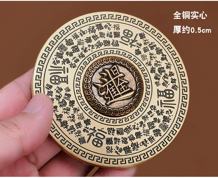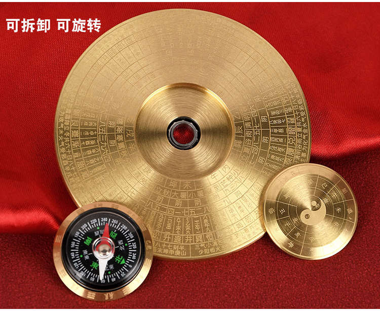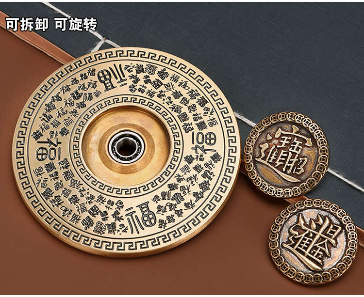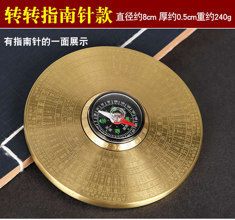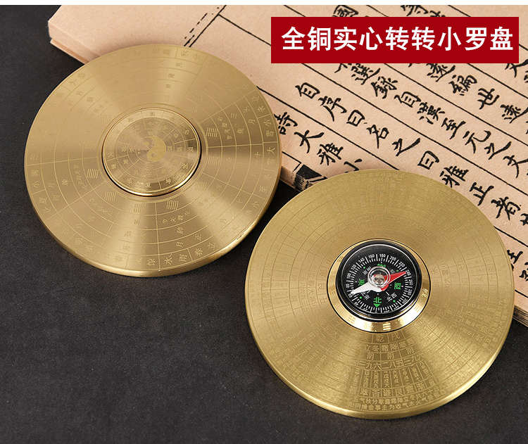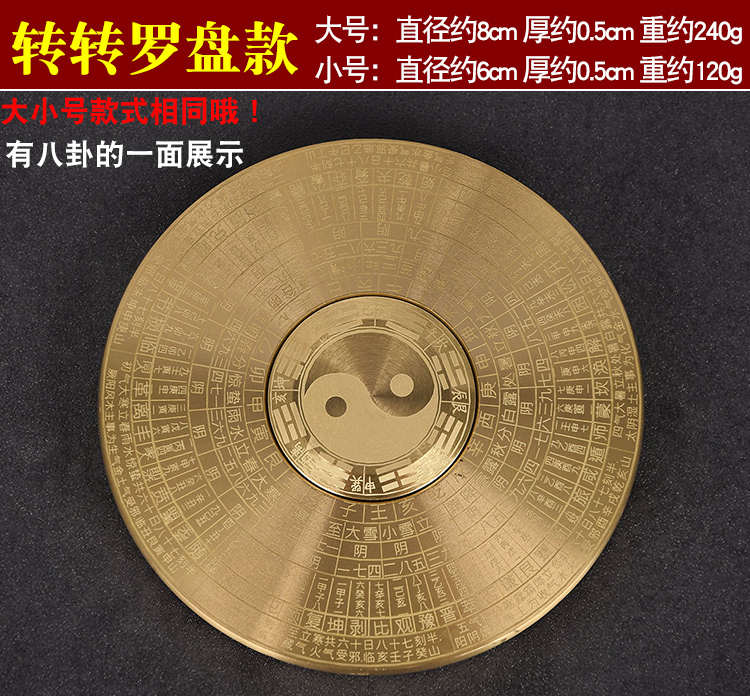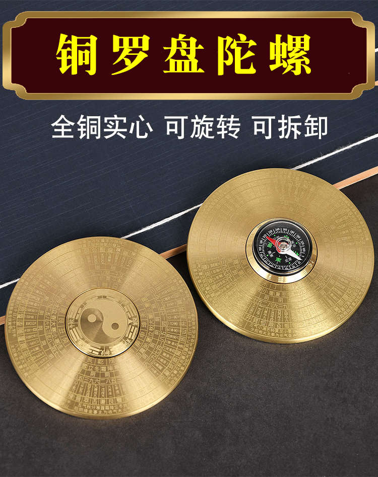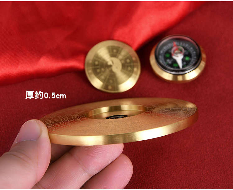 铜罗盘指尖陀螺旋转太极八卦小黄铜实心转转手指陀螺八卦阵指南针