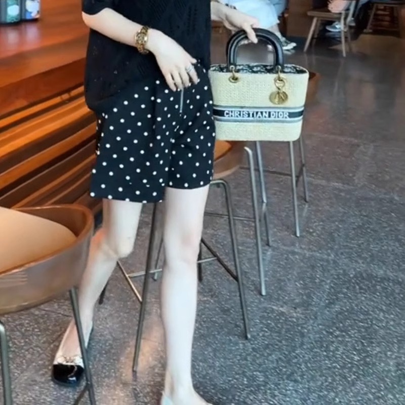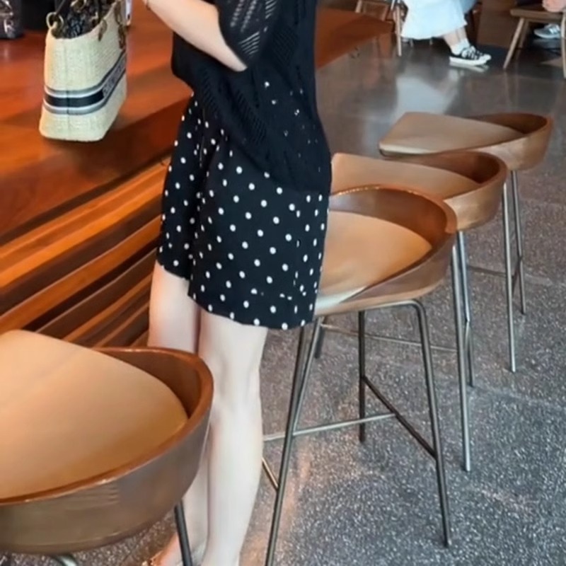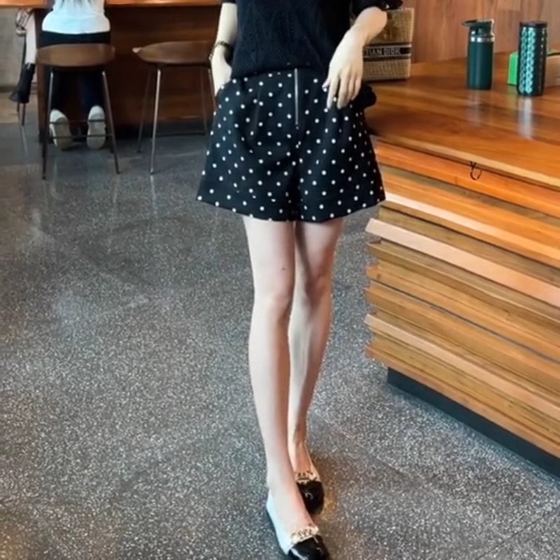 2025夏季新款韩版时尚百搭休闲高级设计感高腰显瘦波点阔腿短裤女