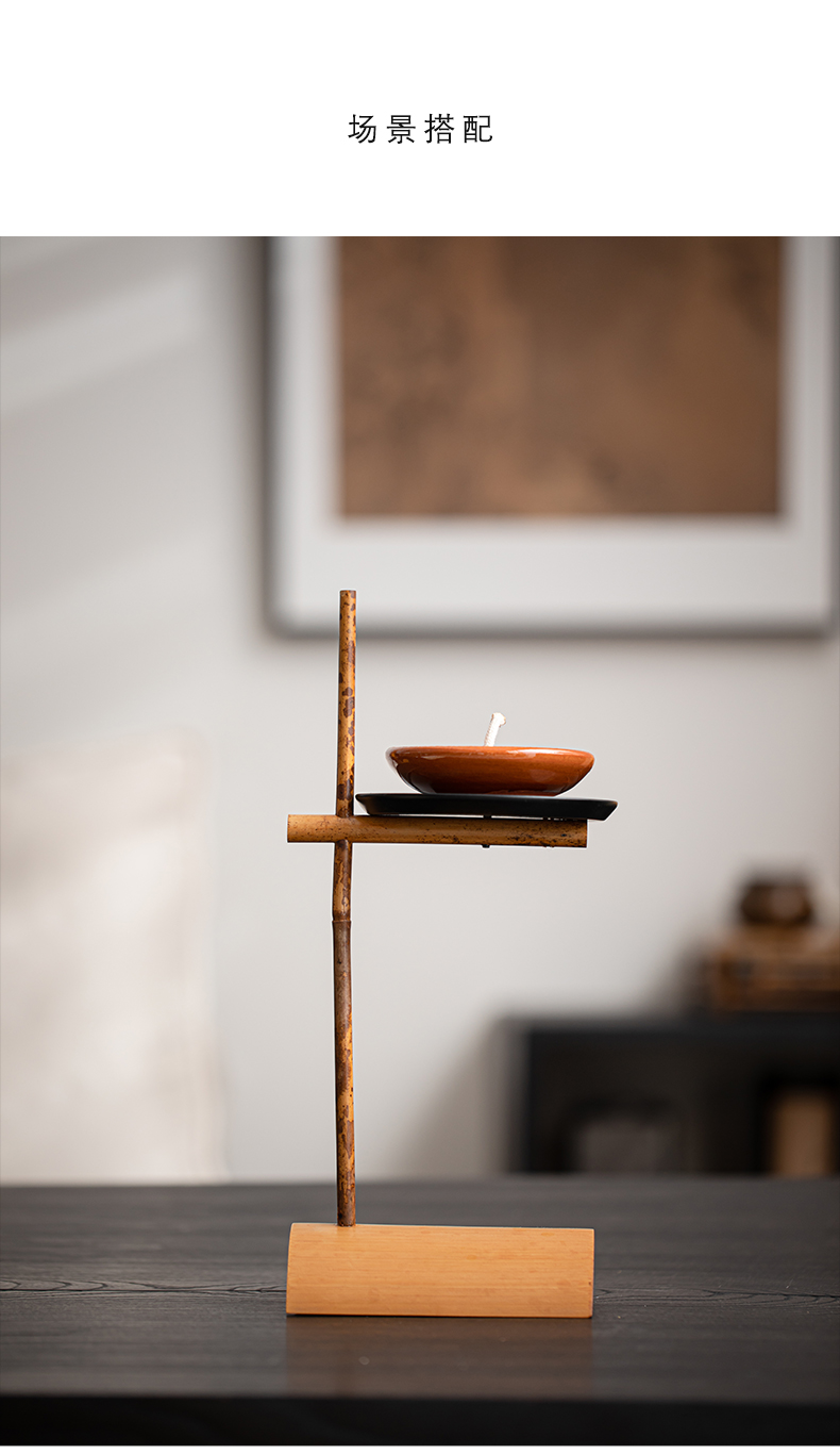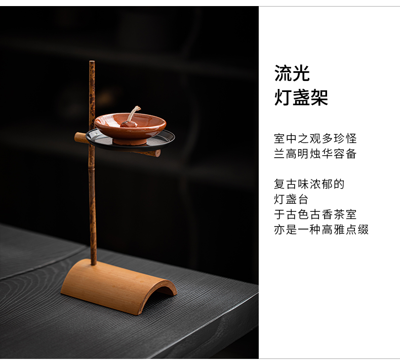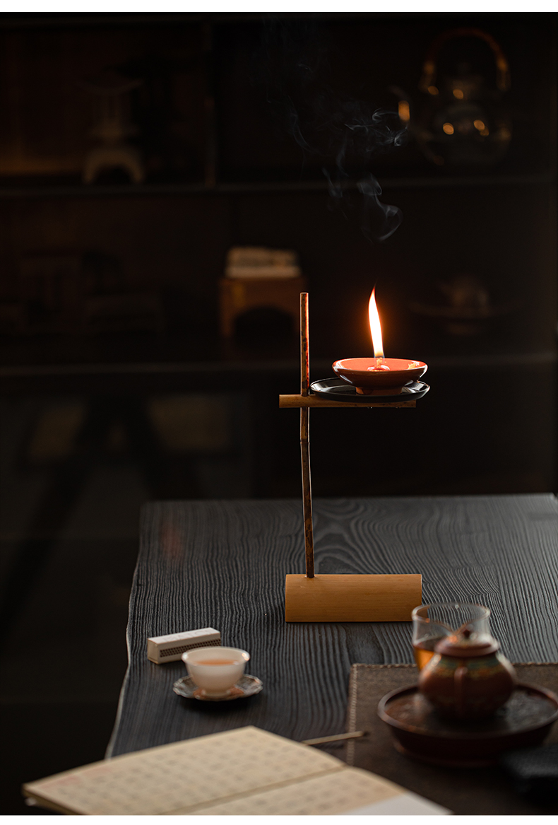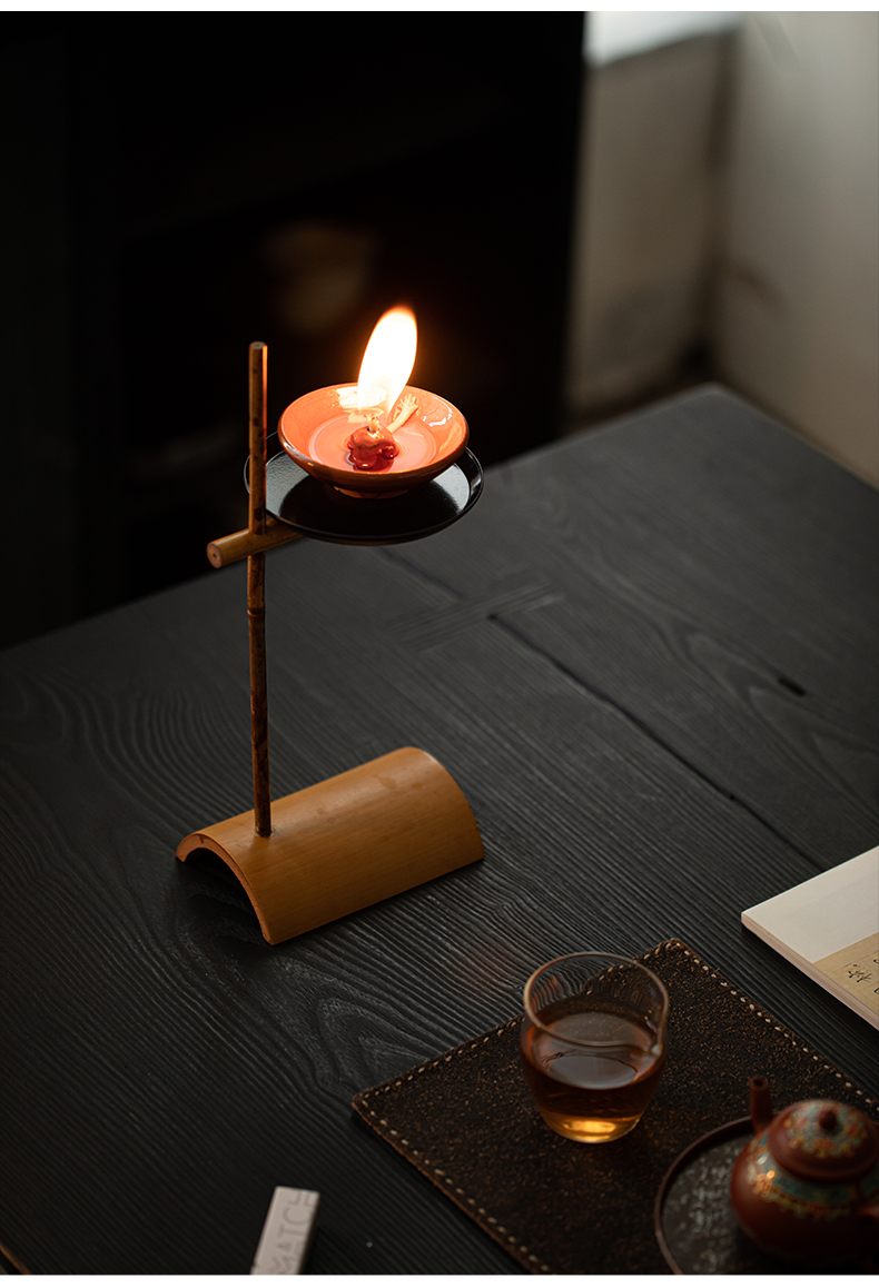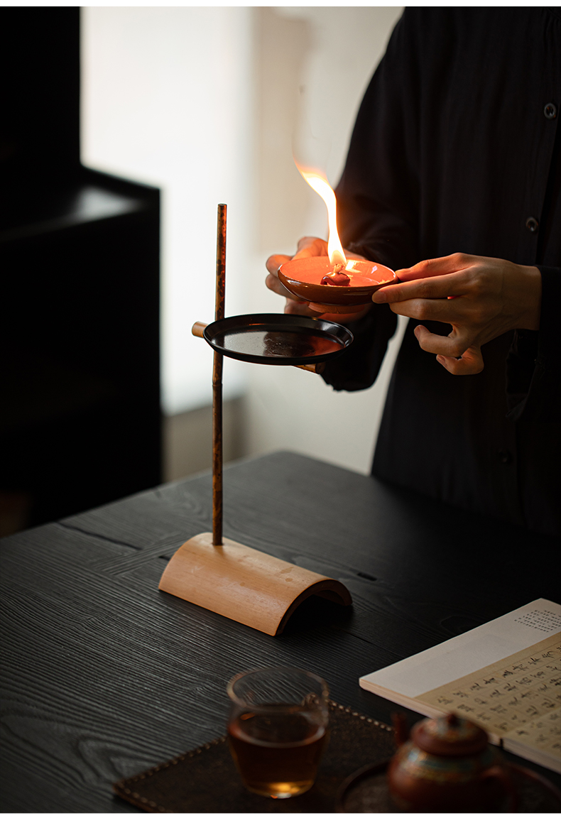 圭隐堂手工竹制蜡烛台家用复古禅意酥油灯盏茶室氛围感茶道摆件