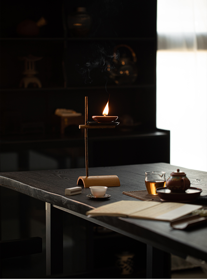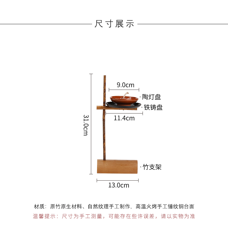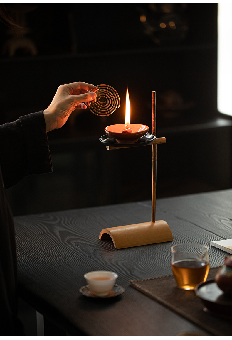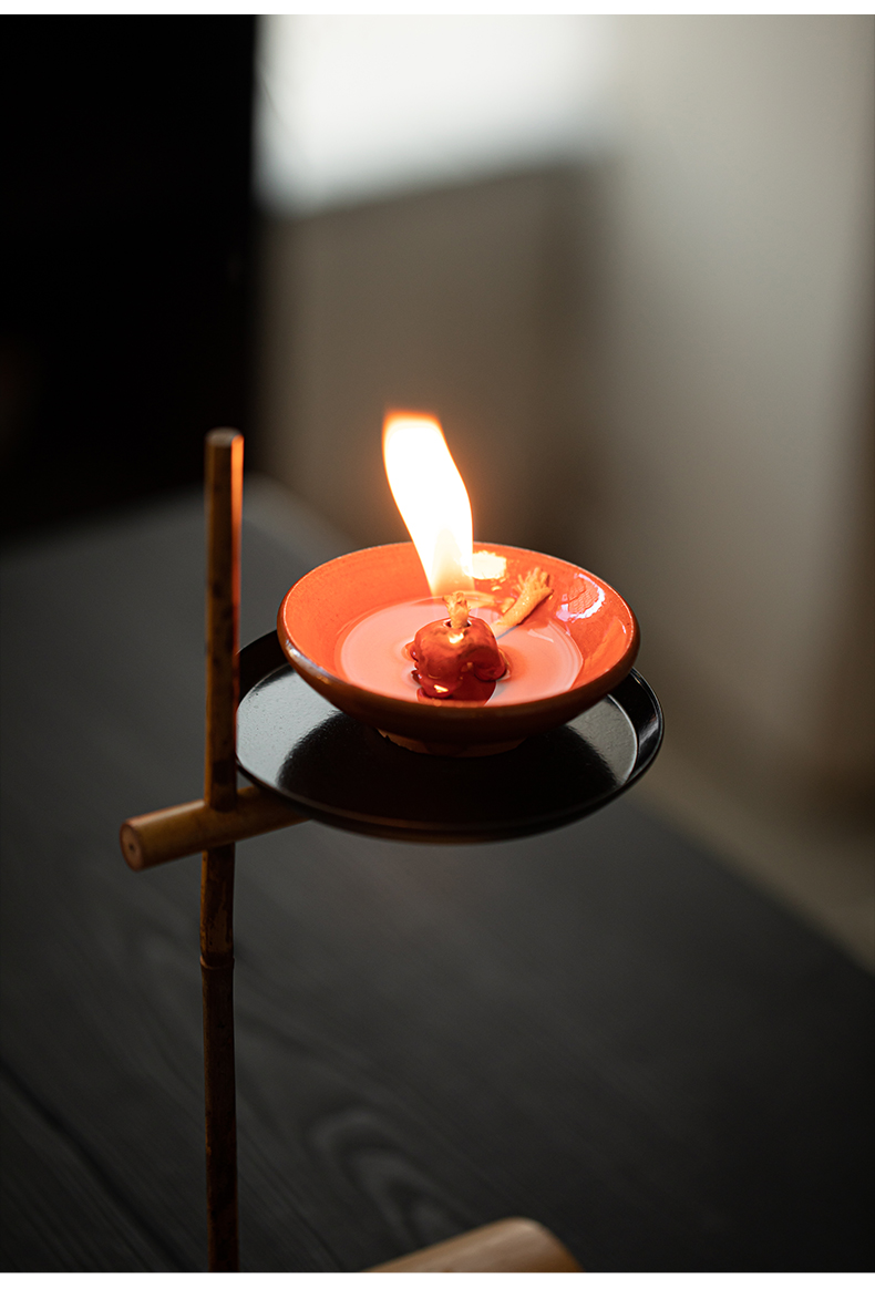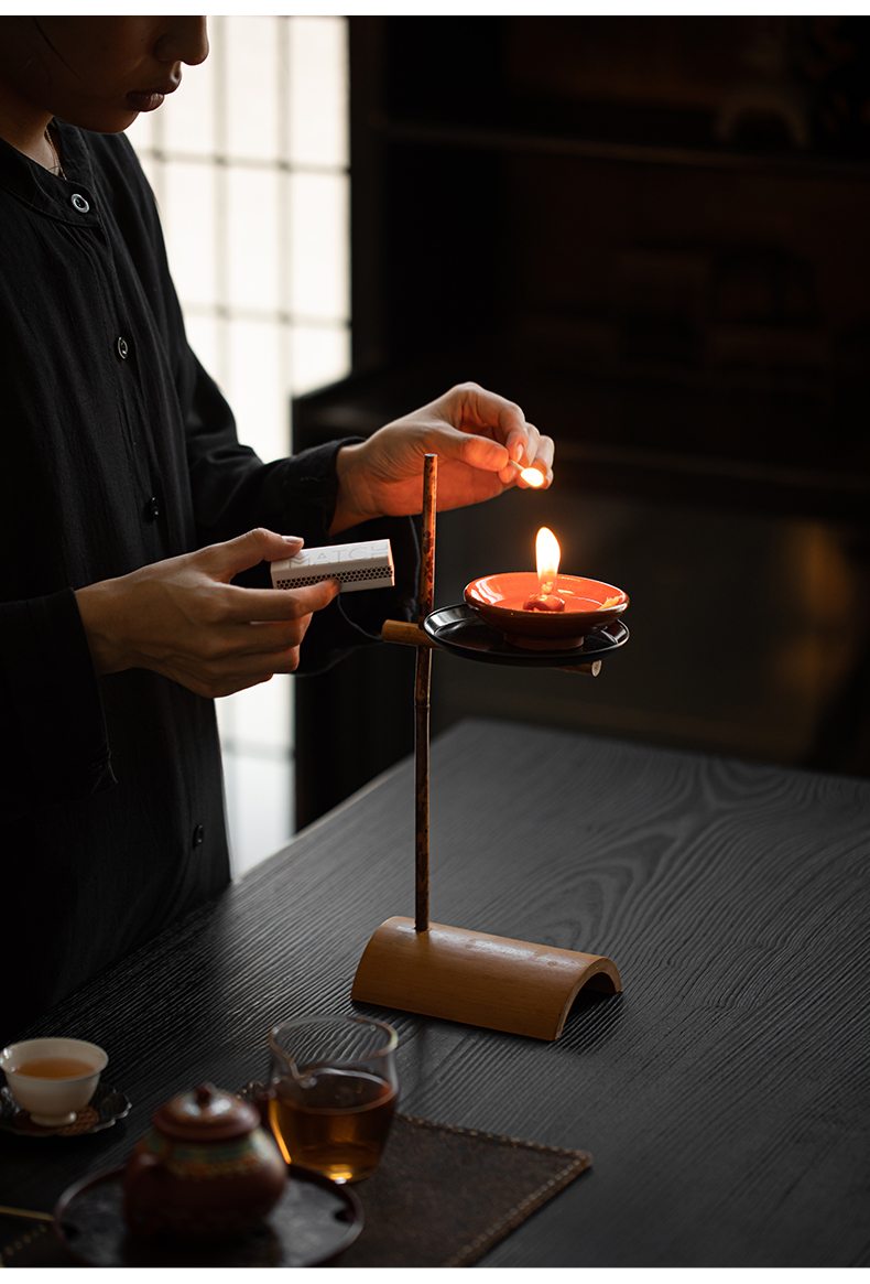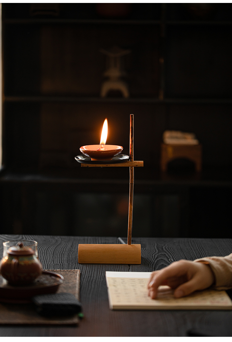 圭隐堂手工竹制蜡烛台家用复古禅意酥油灯盏茶室氛围感茶道摆件